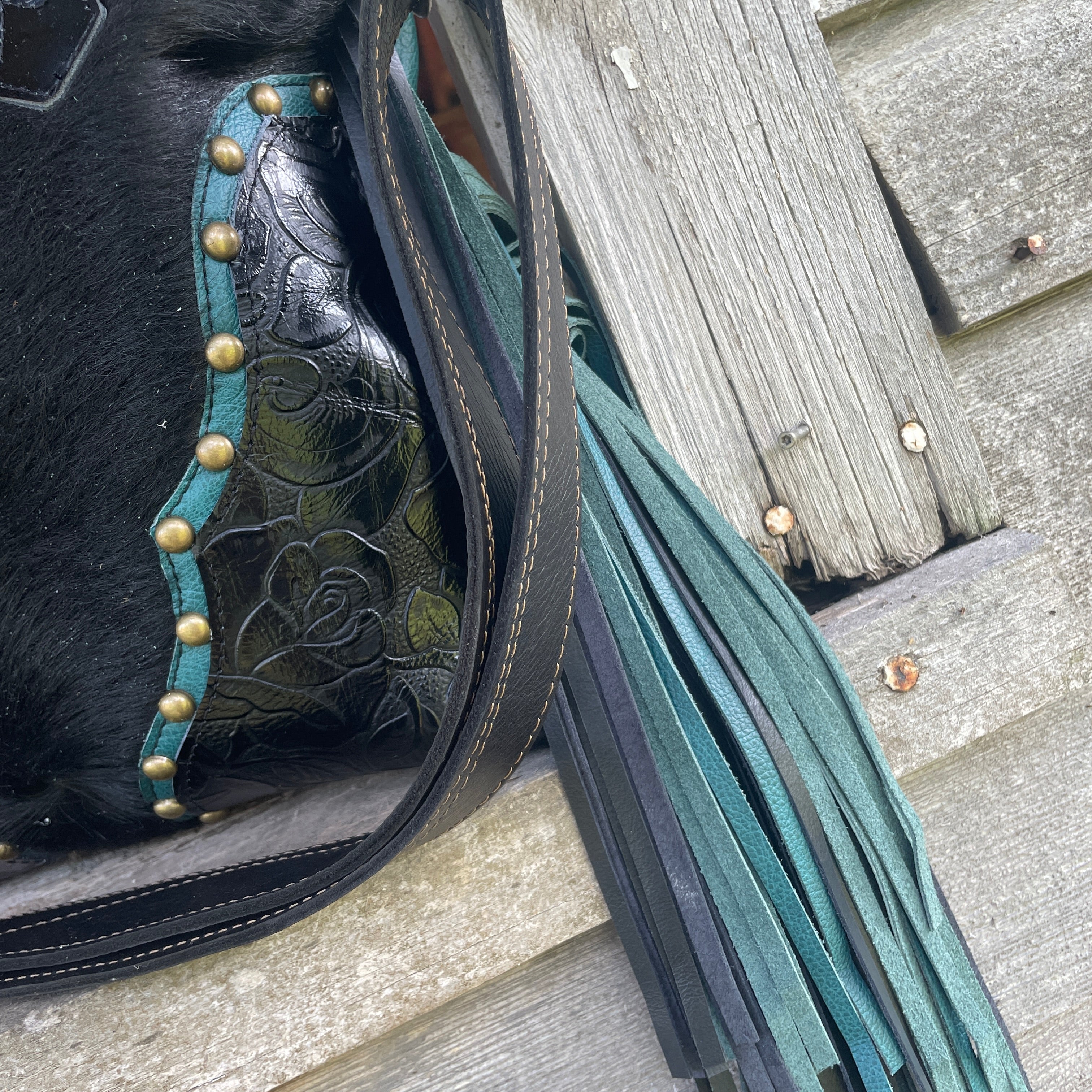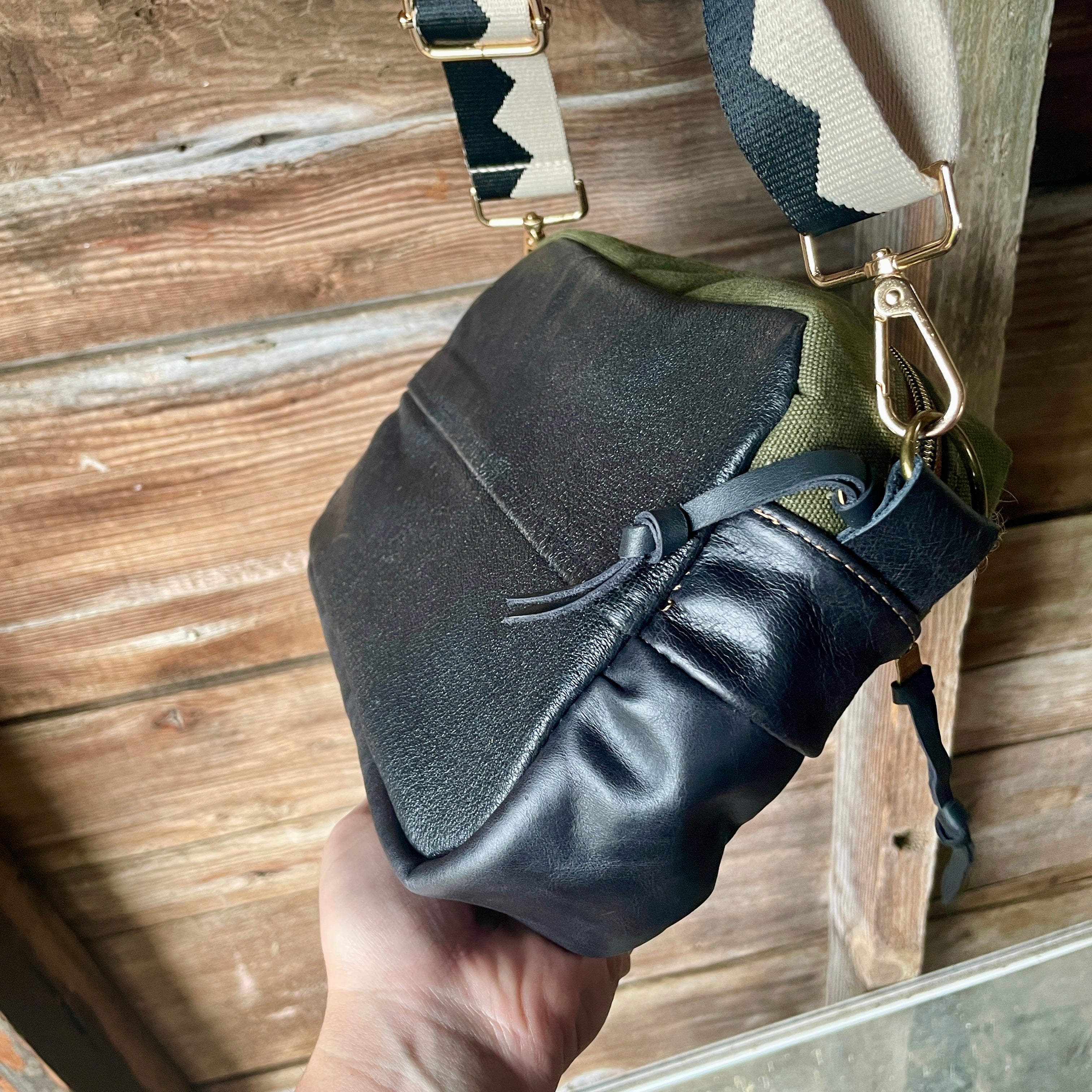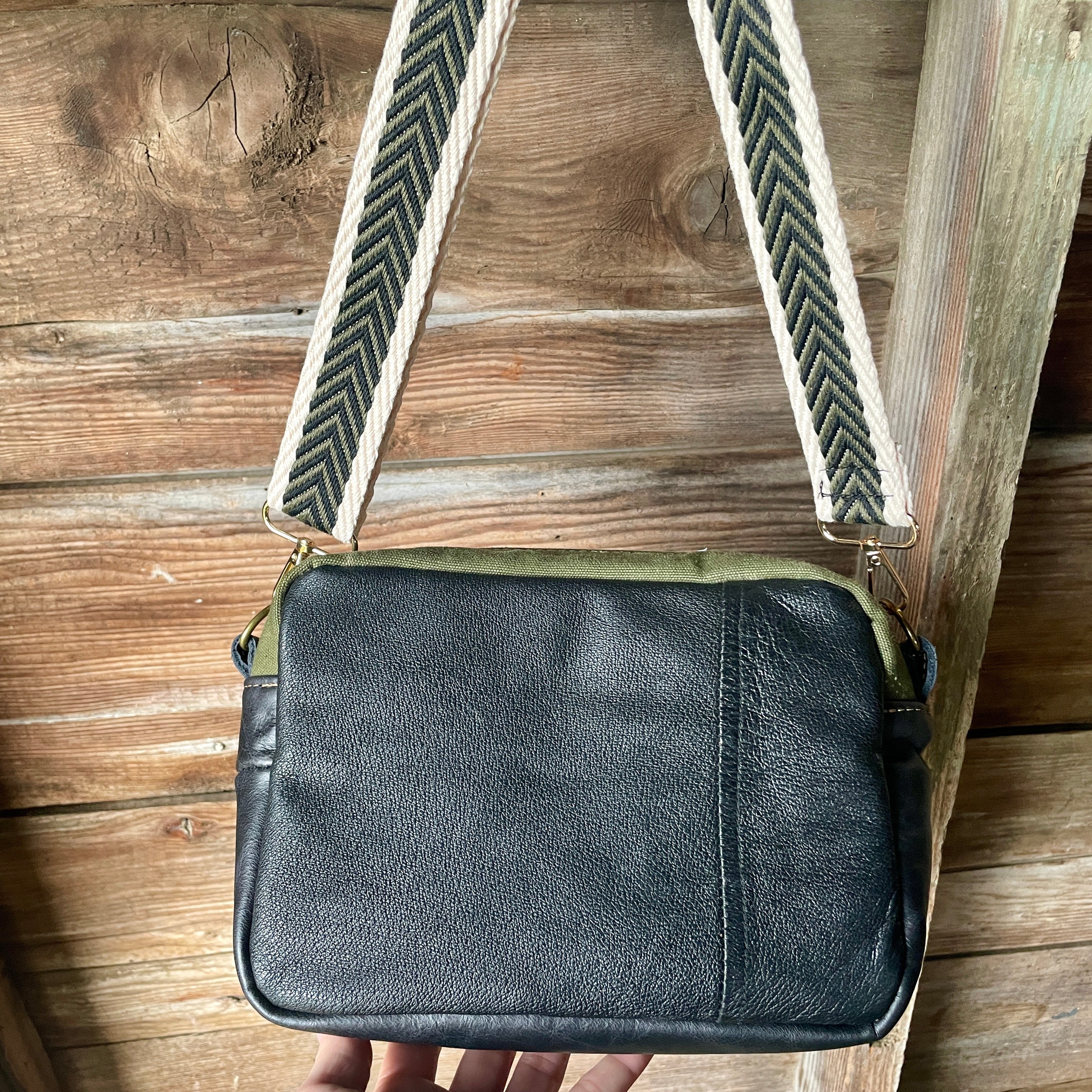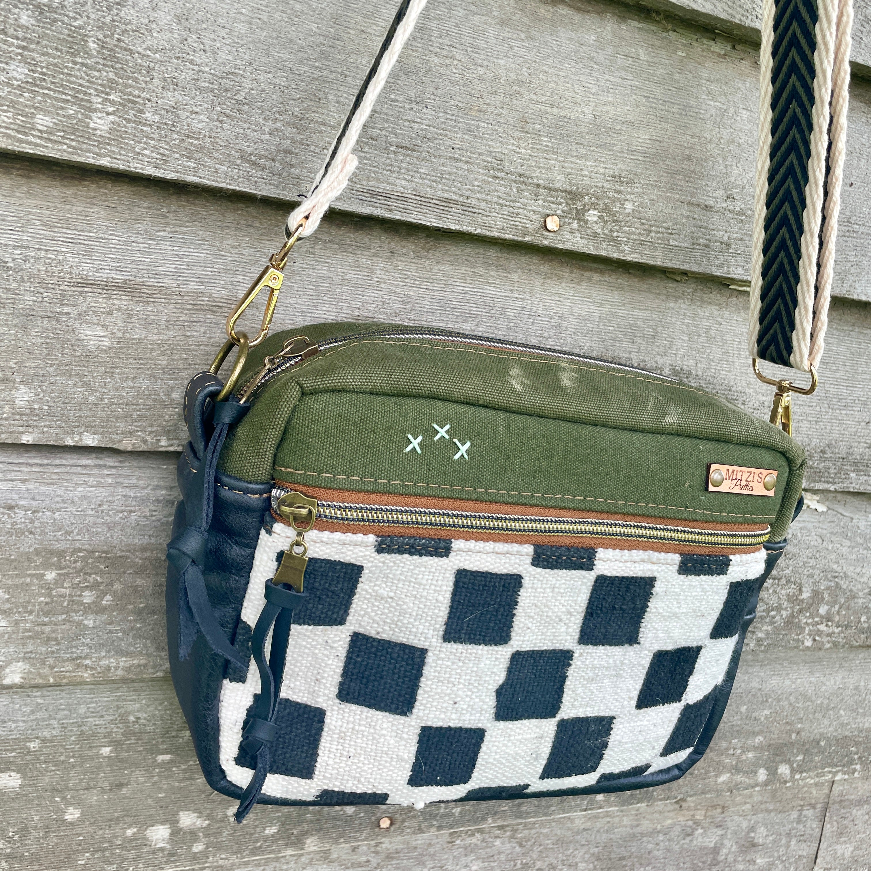 This bag!! Made with the prettiest antique quilt and genuine bomber jacket leather. The quilt was 100% hand stitched!