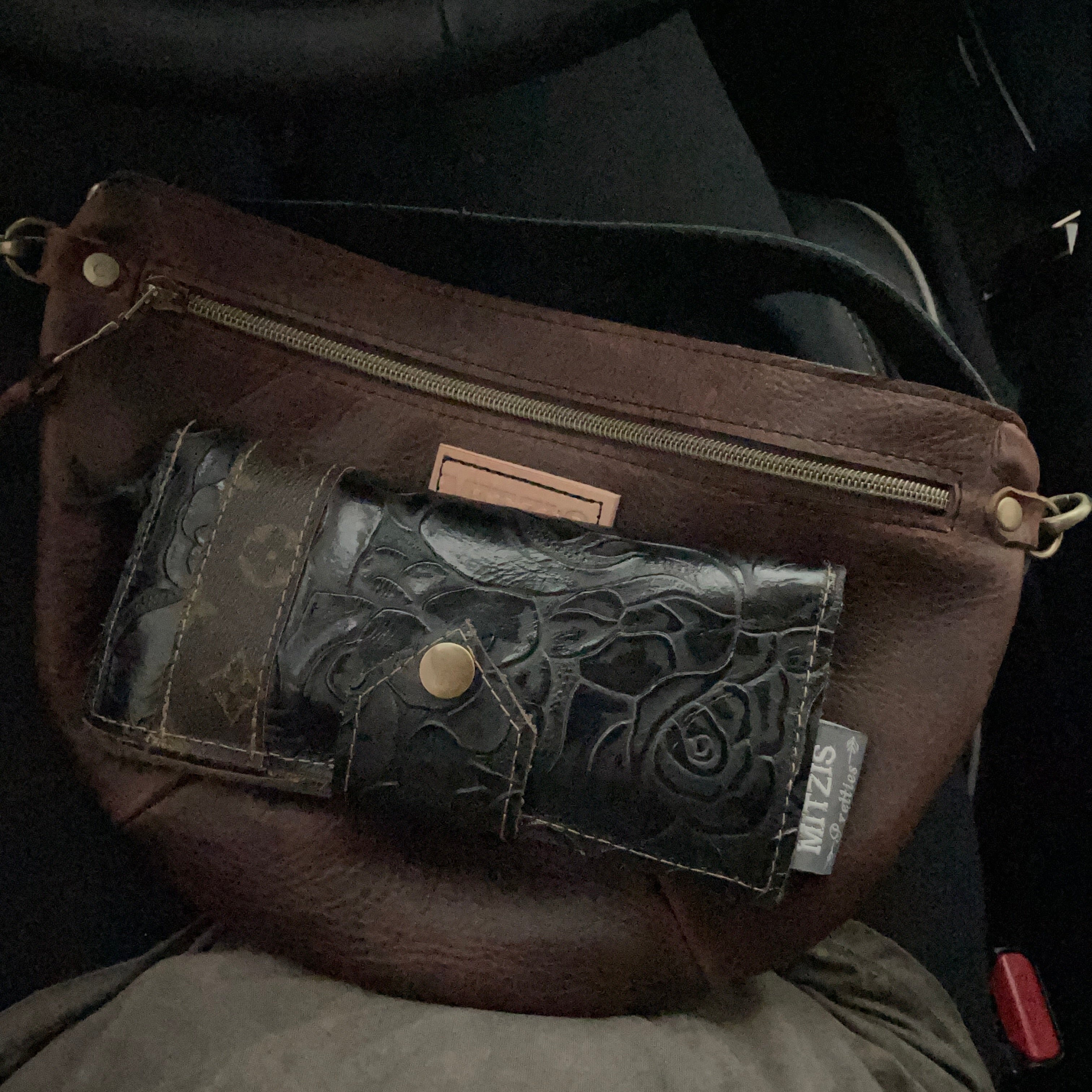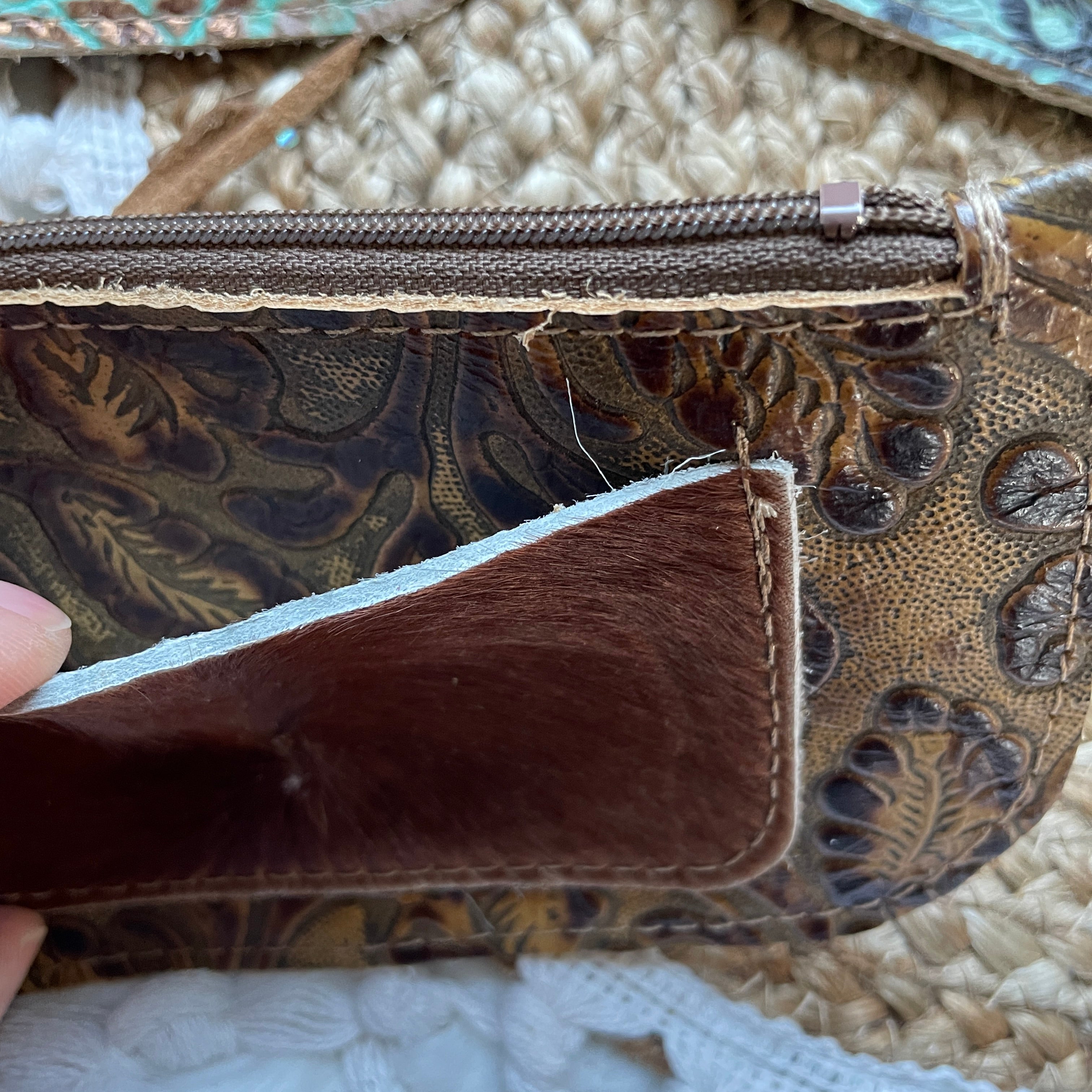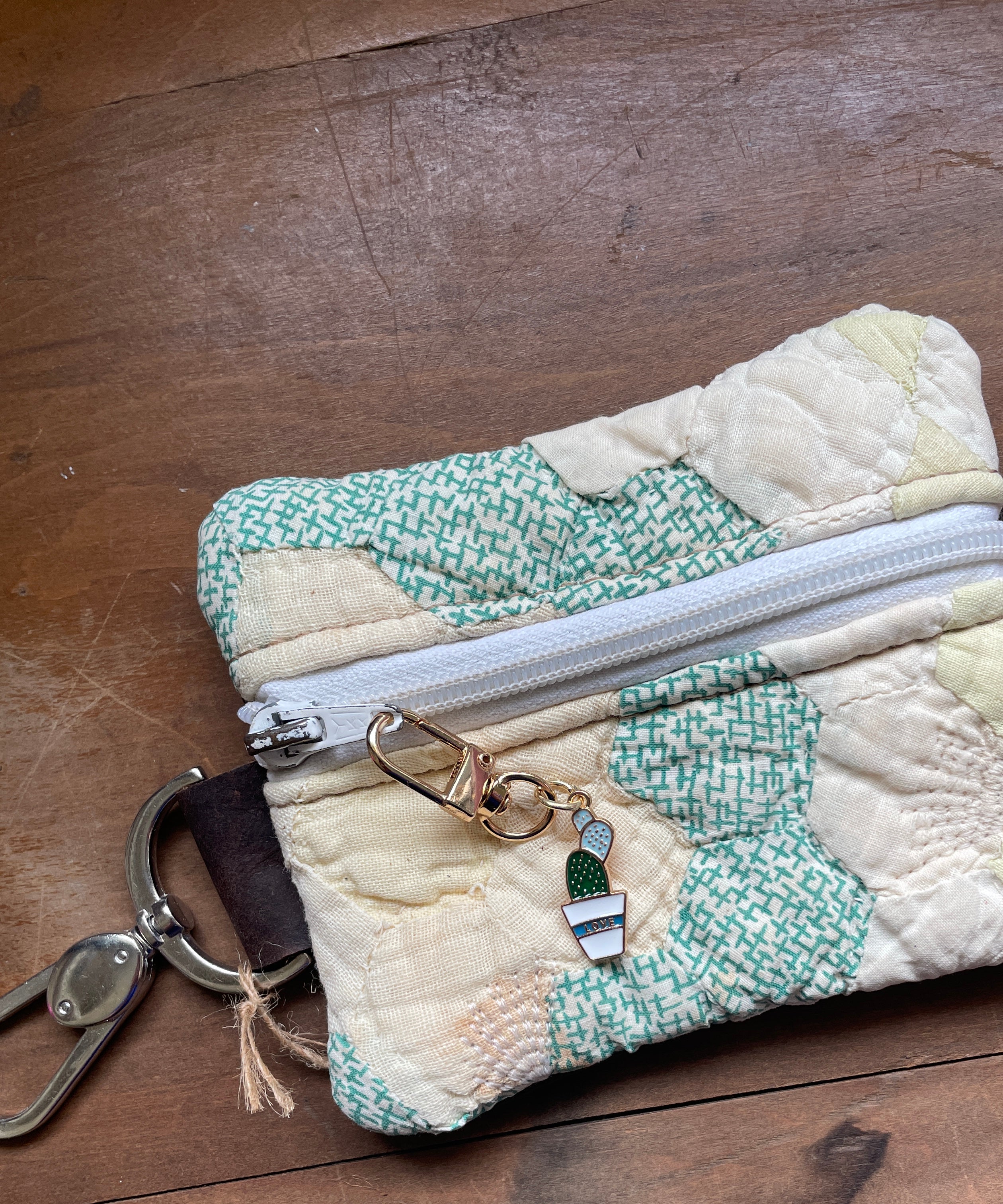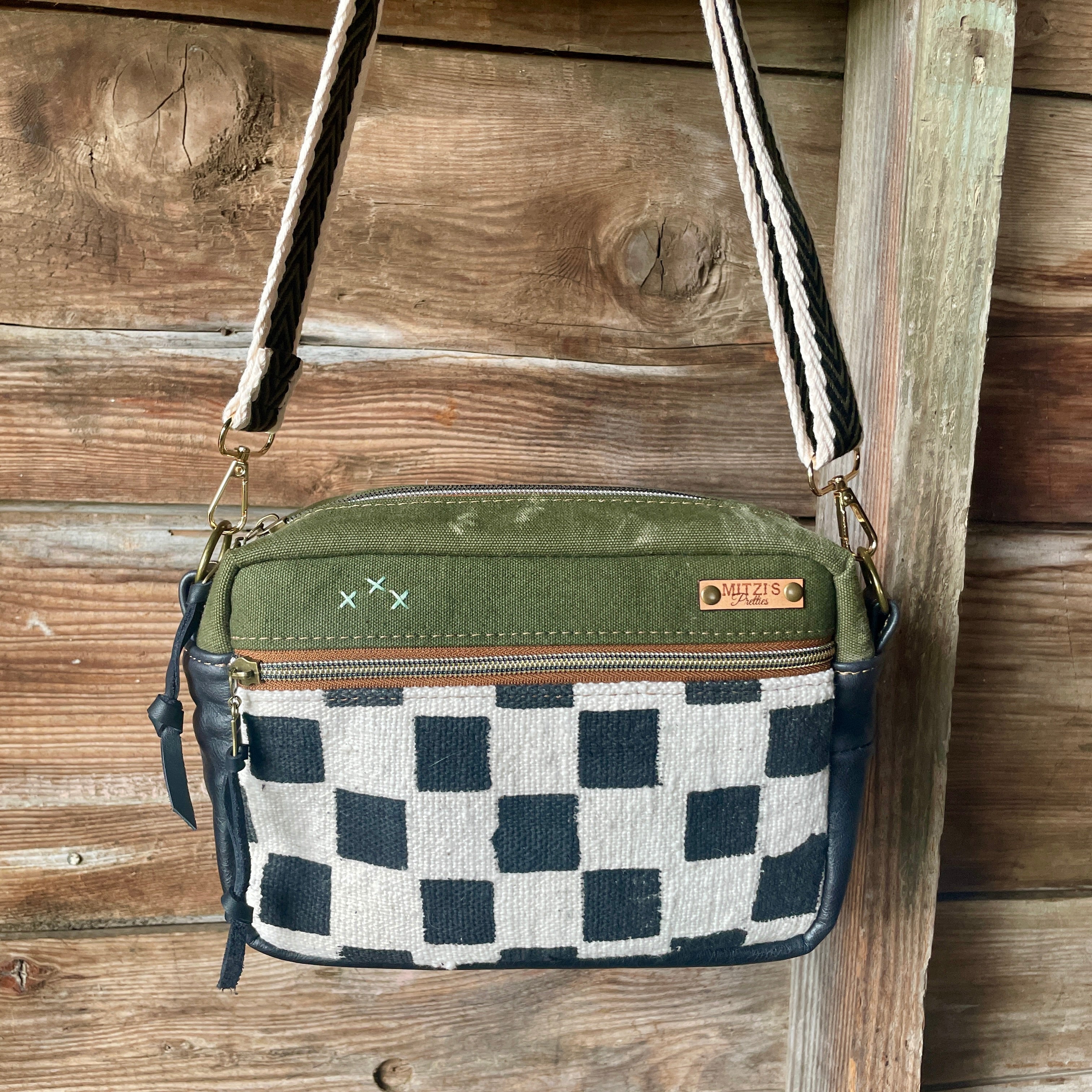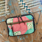 This bag!! Made with the prettiest antique quilt and genuine bomber jacket leather. The quilt was 100% hand stitched!