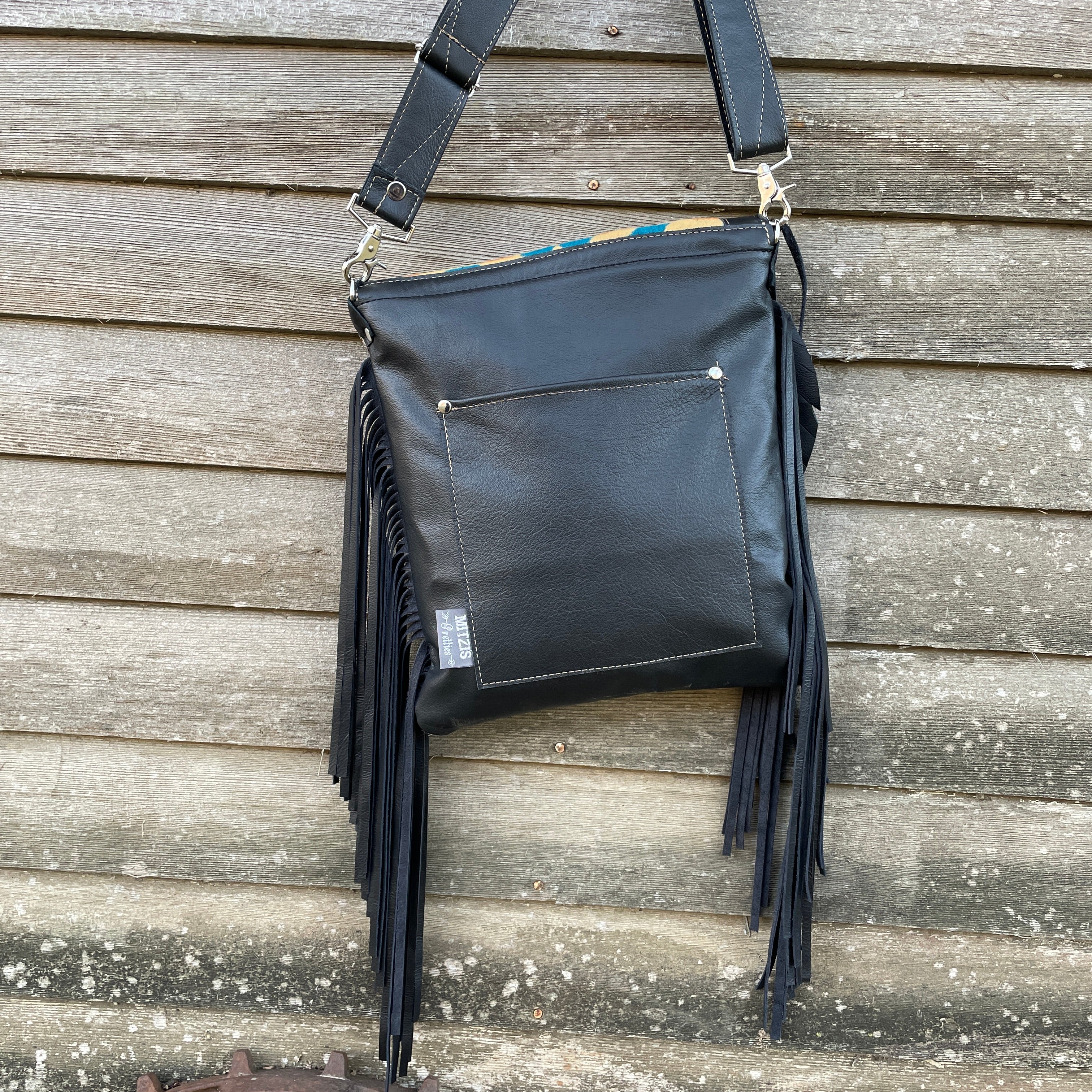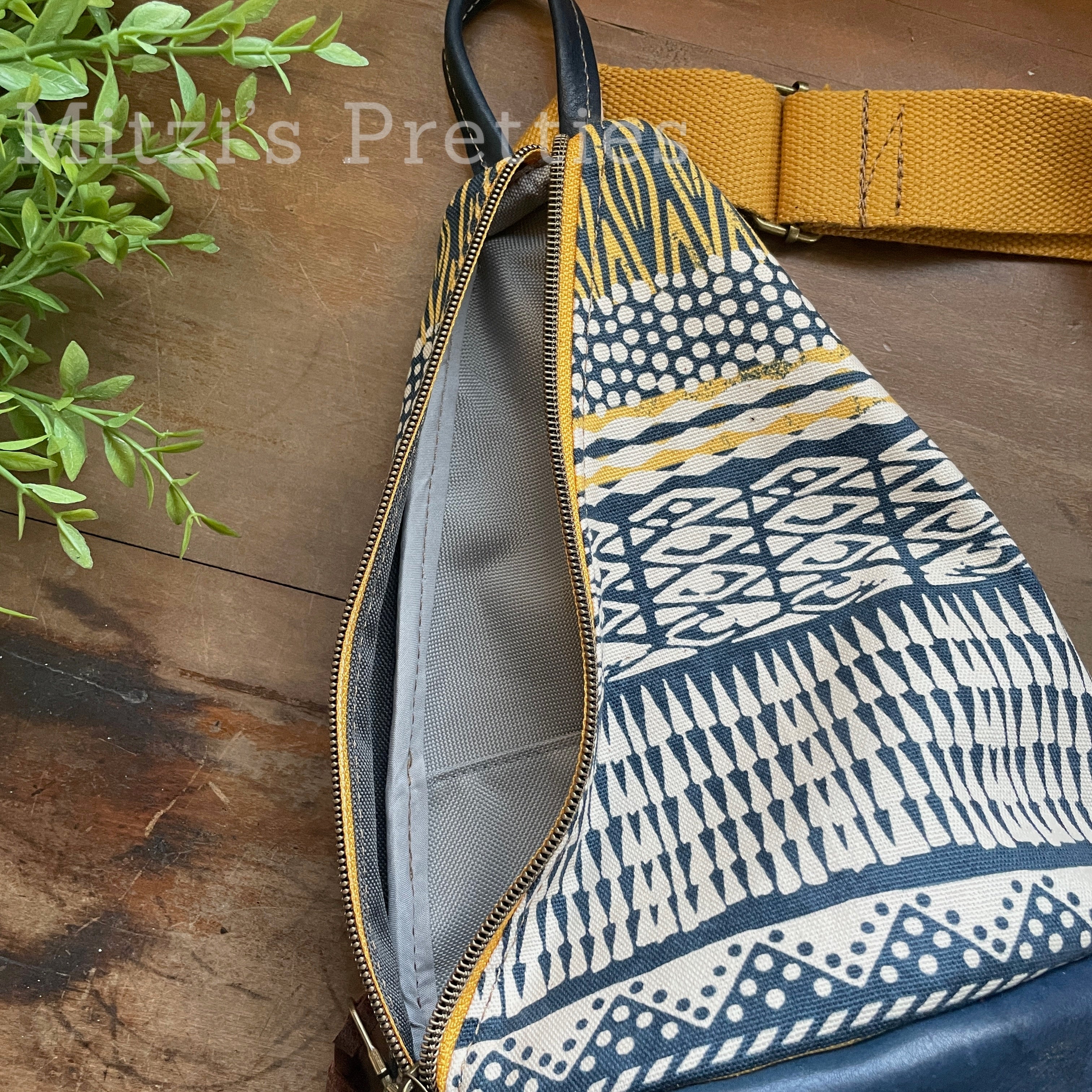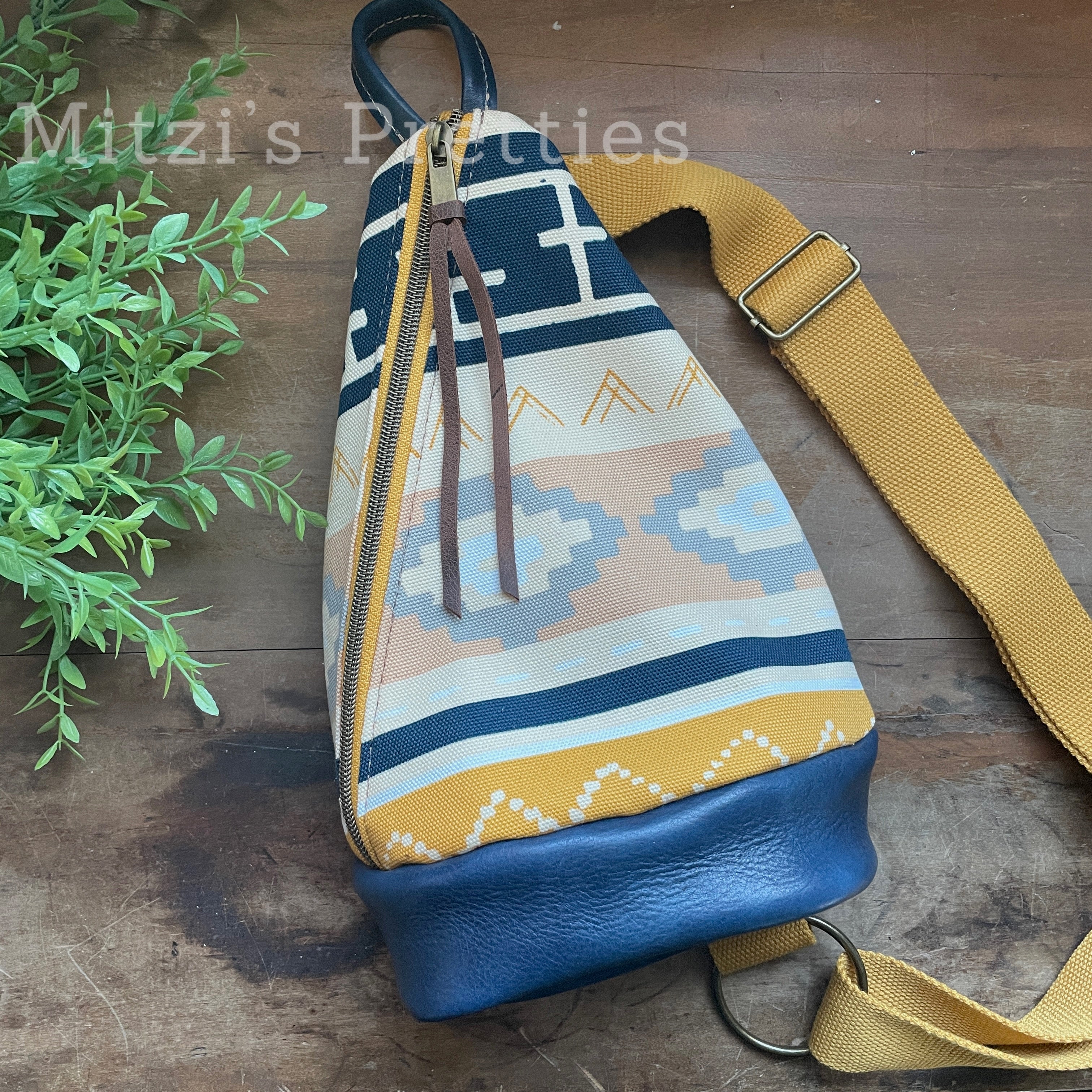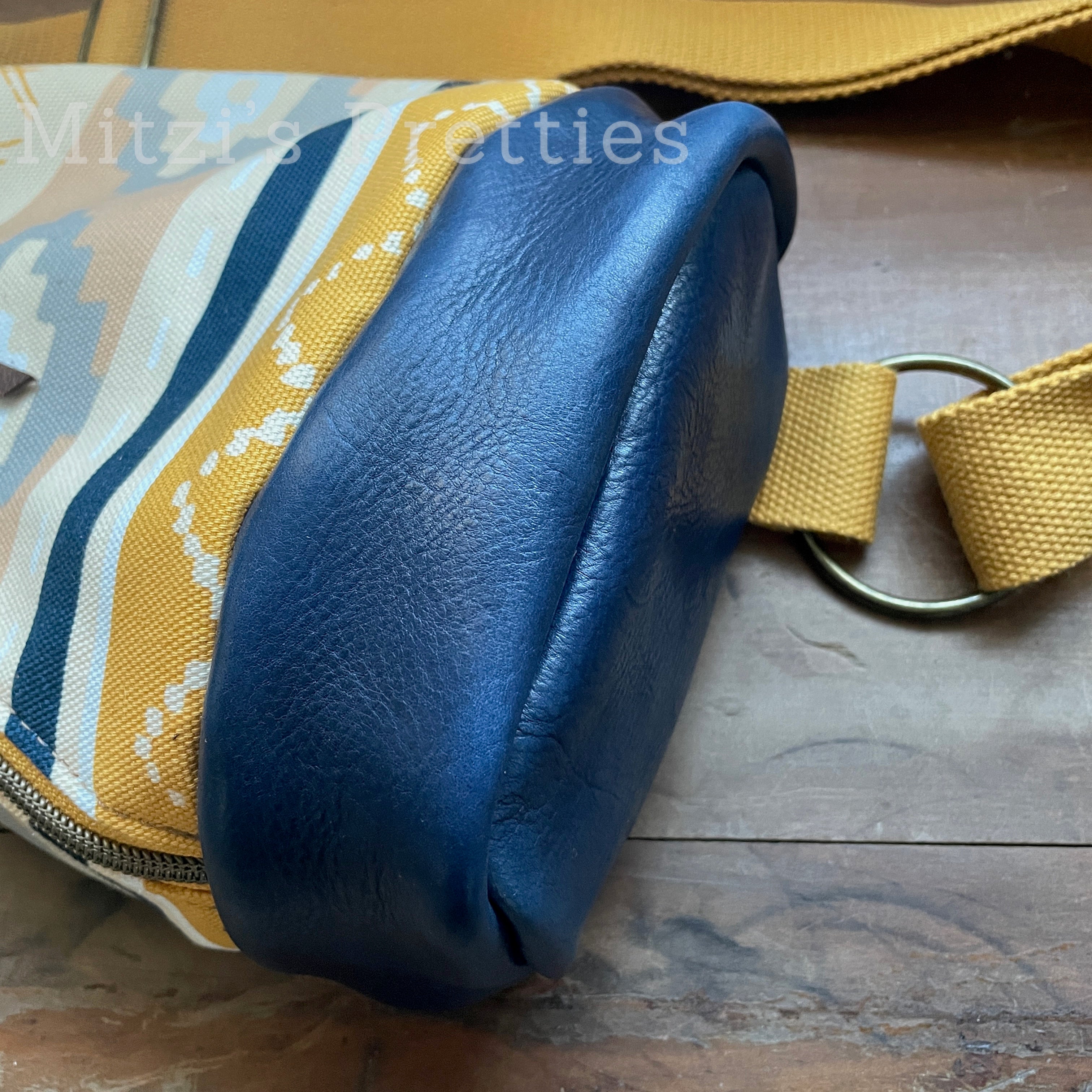 This bag!! Made with aztec canvas fabric & genuine navy blue leather.
