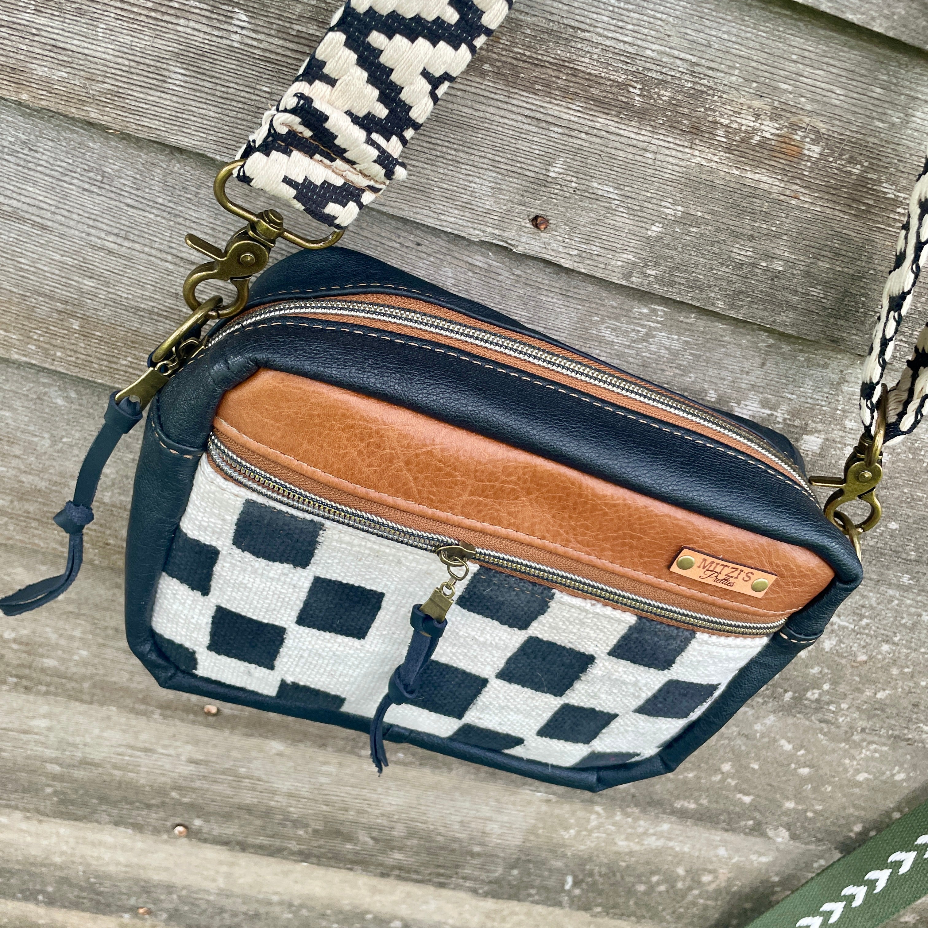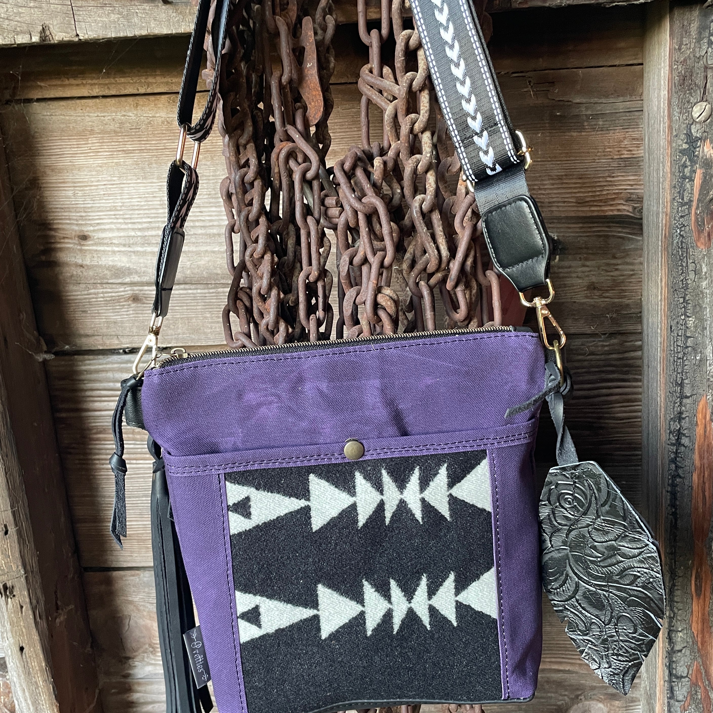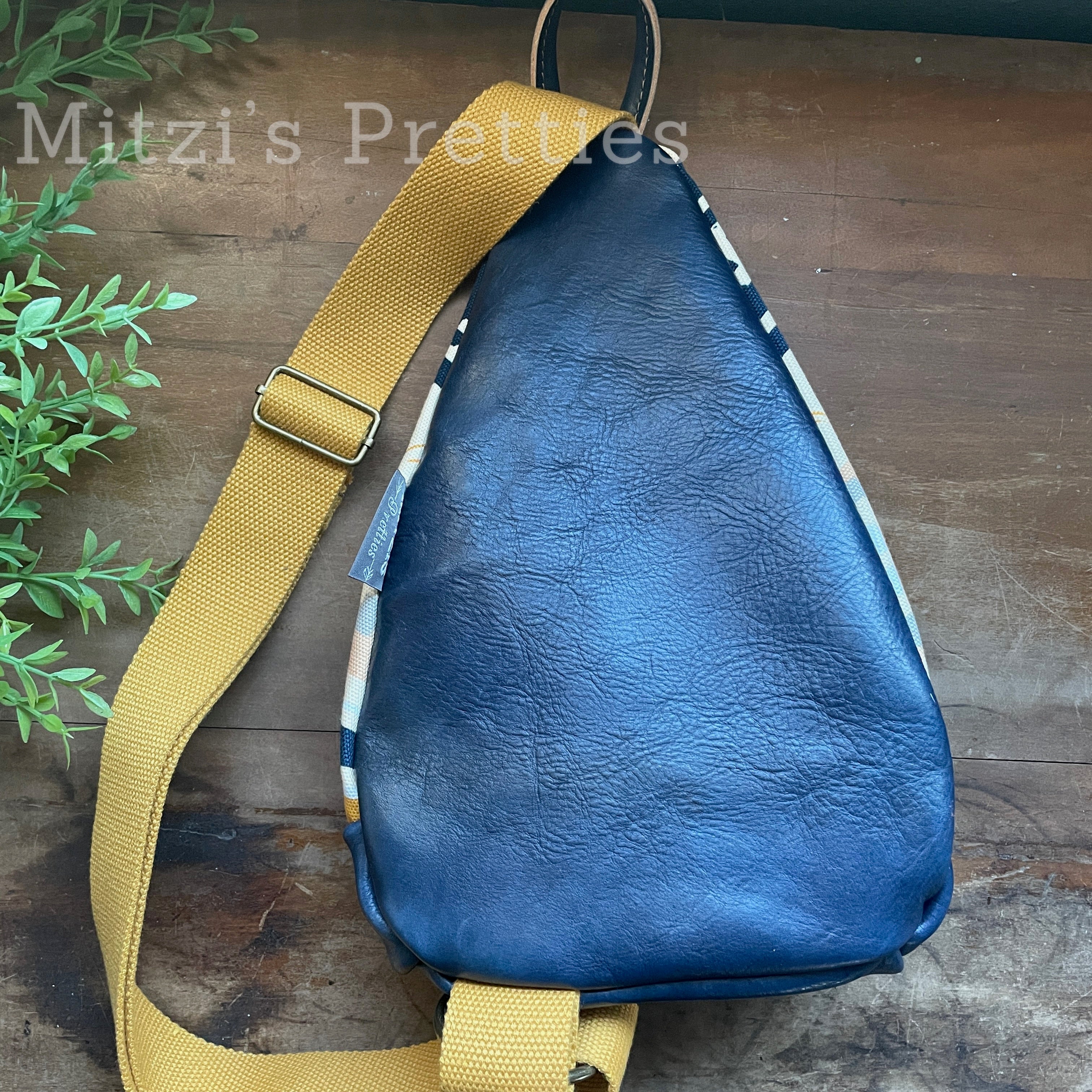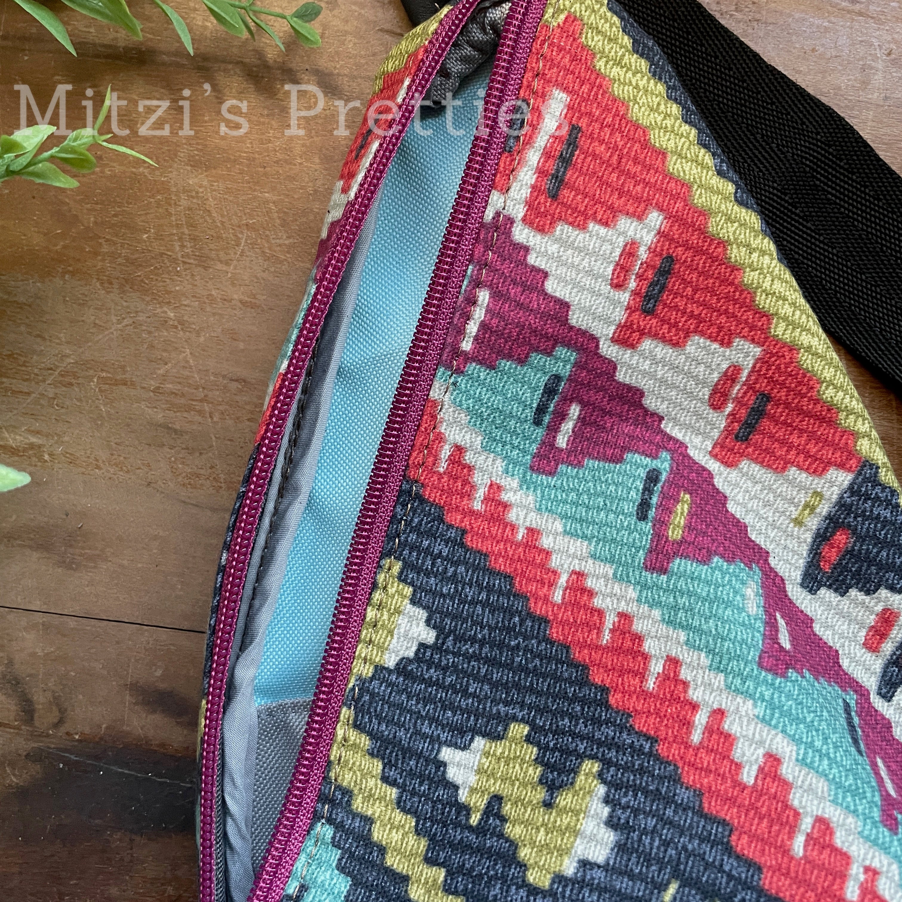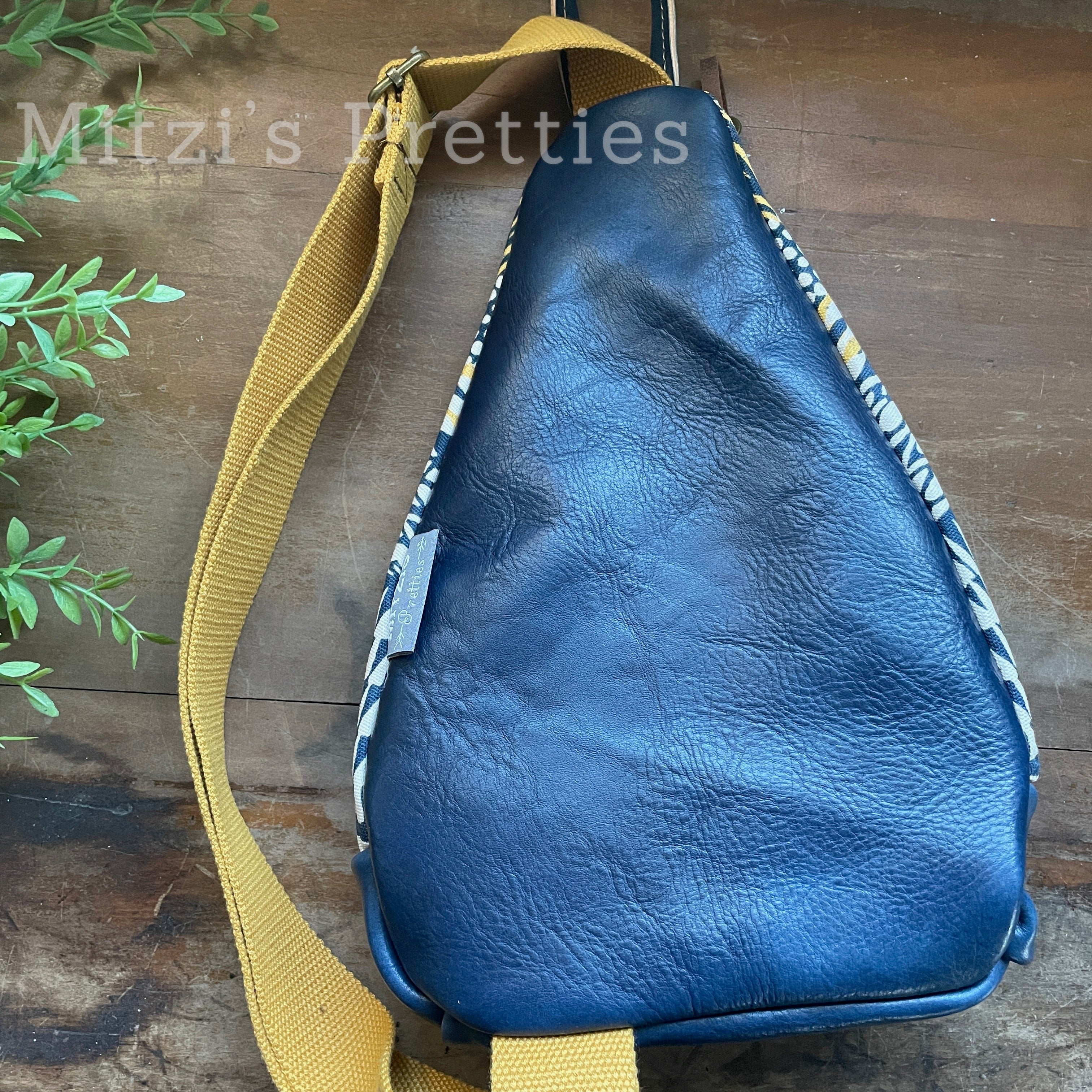 This bag!! Made with aztec canvas fabric & genuine navy blue leather.