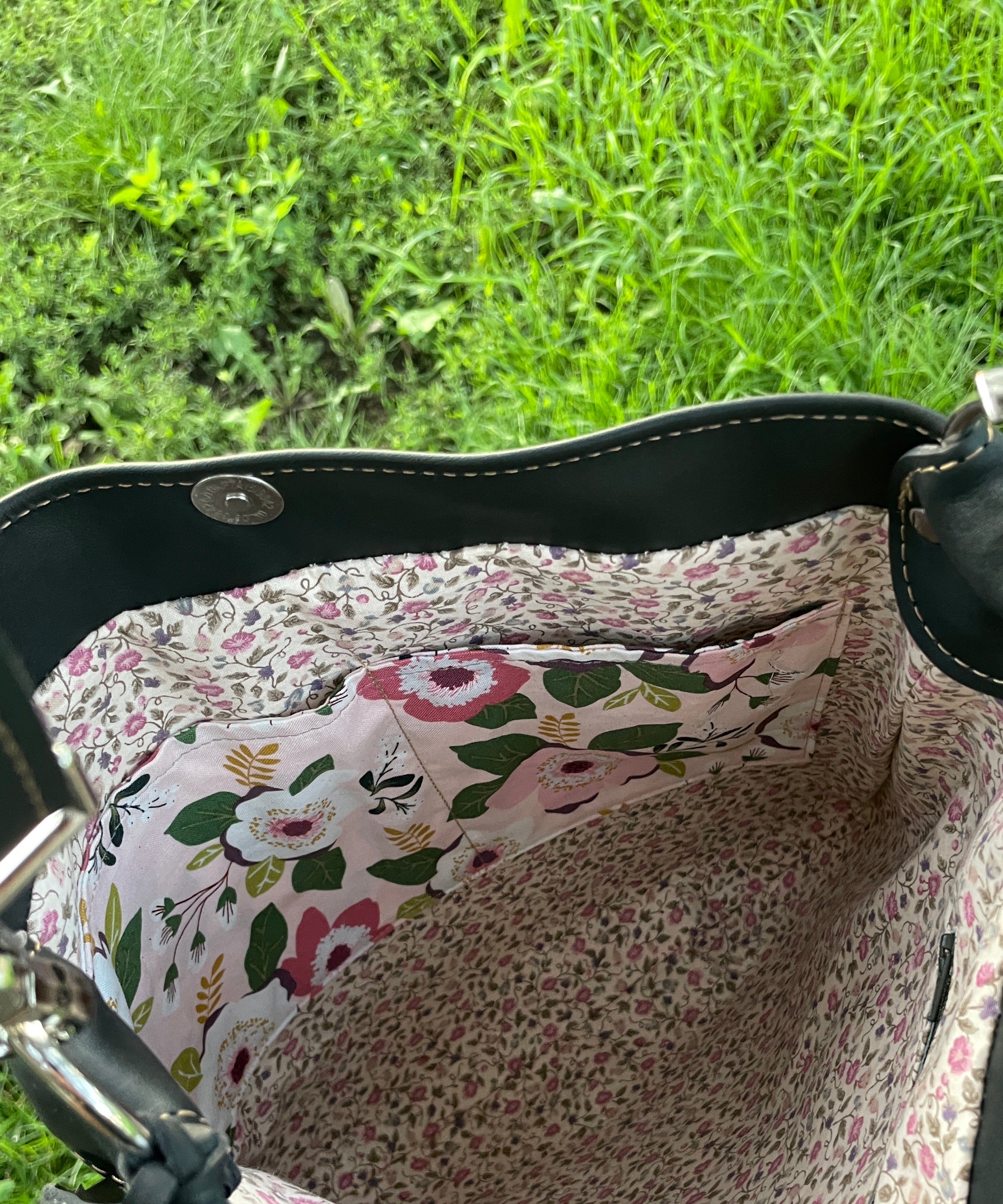 For the interior, I used a canvas fabric that I interfaced for durability. The interior features 2 slip pockets and a zipper pocket.