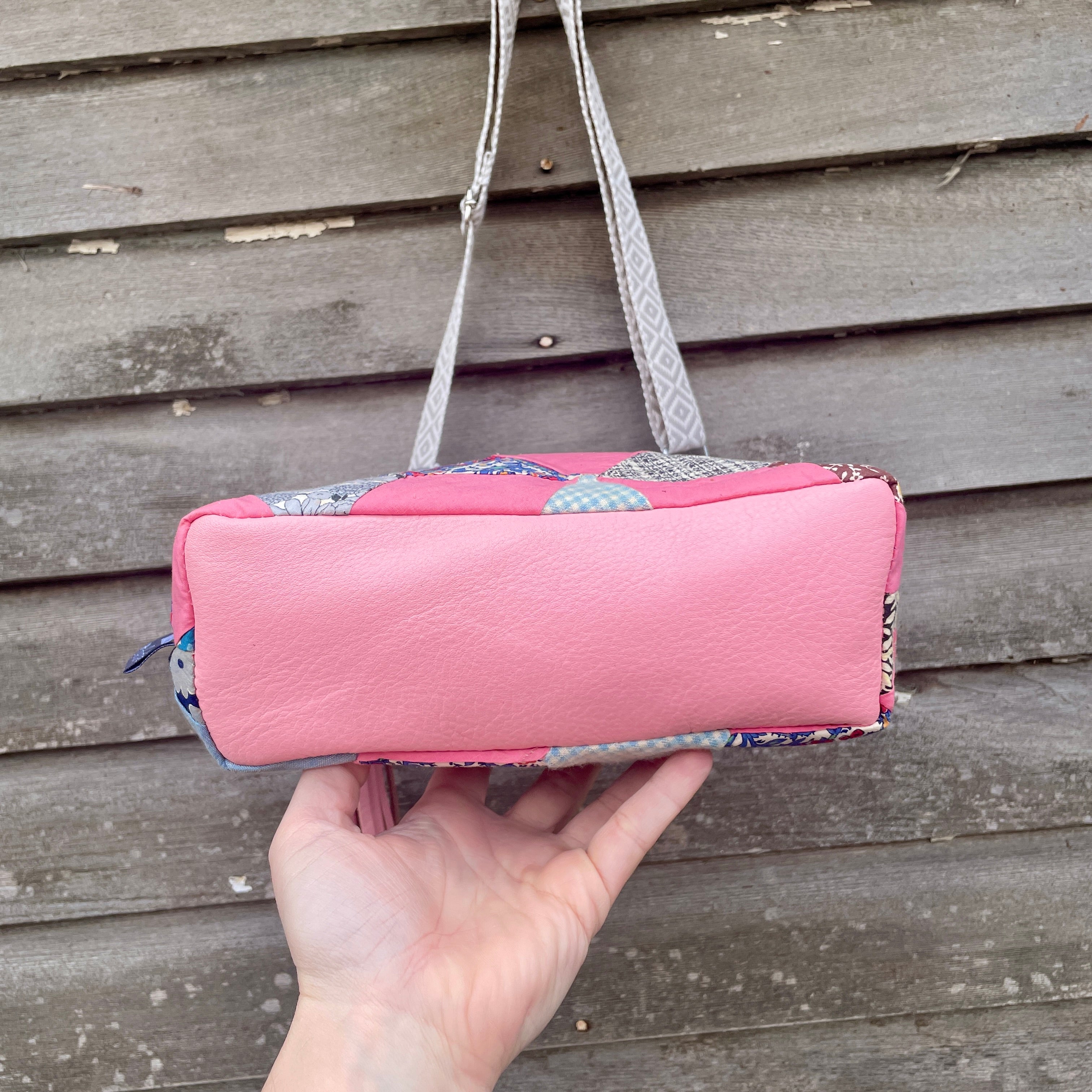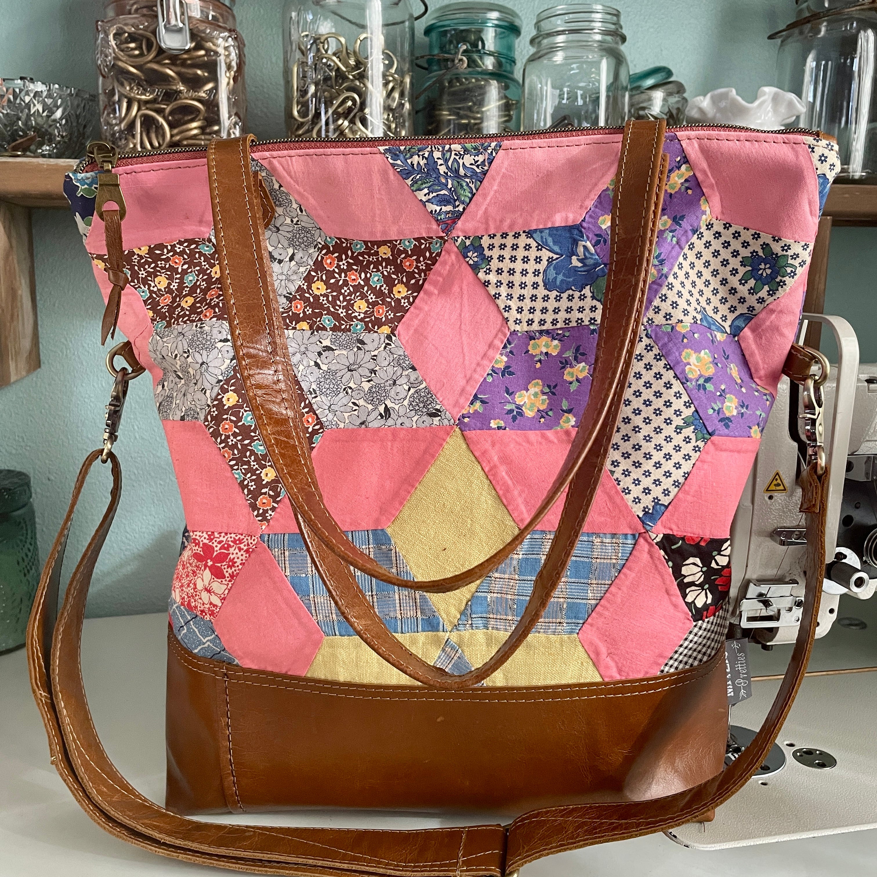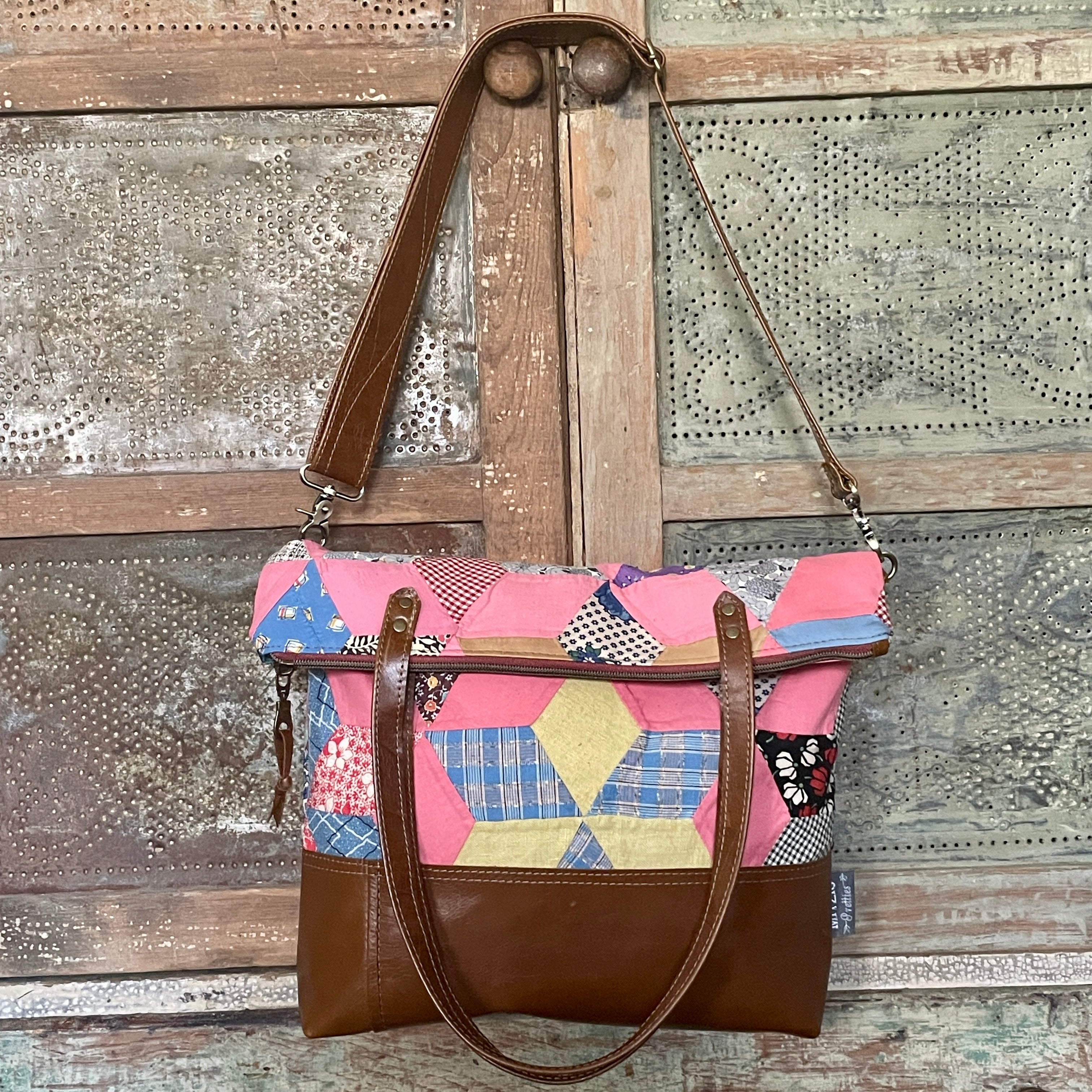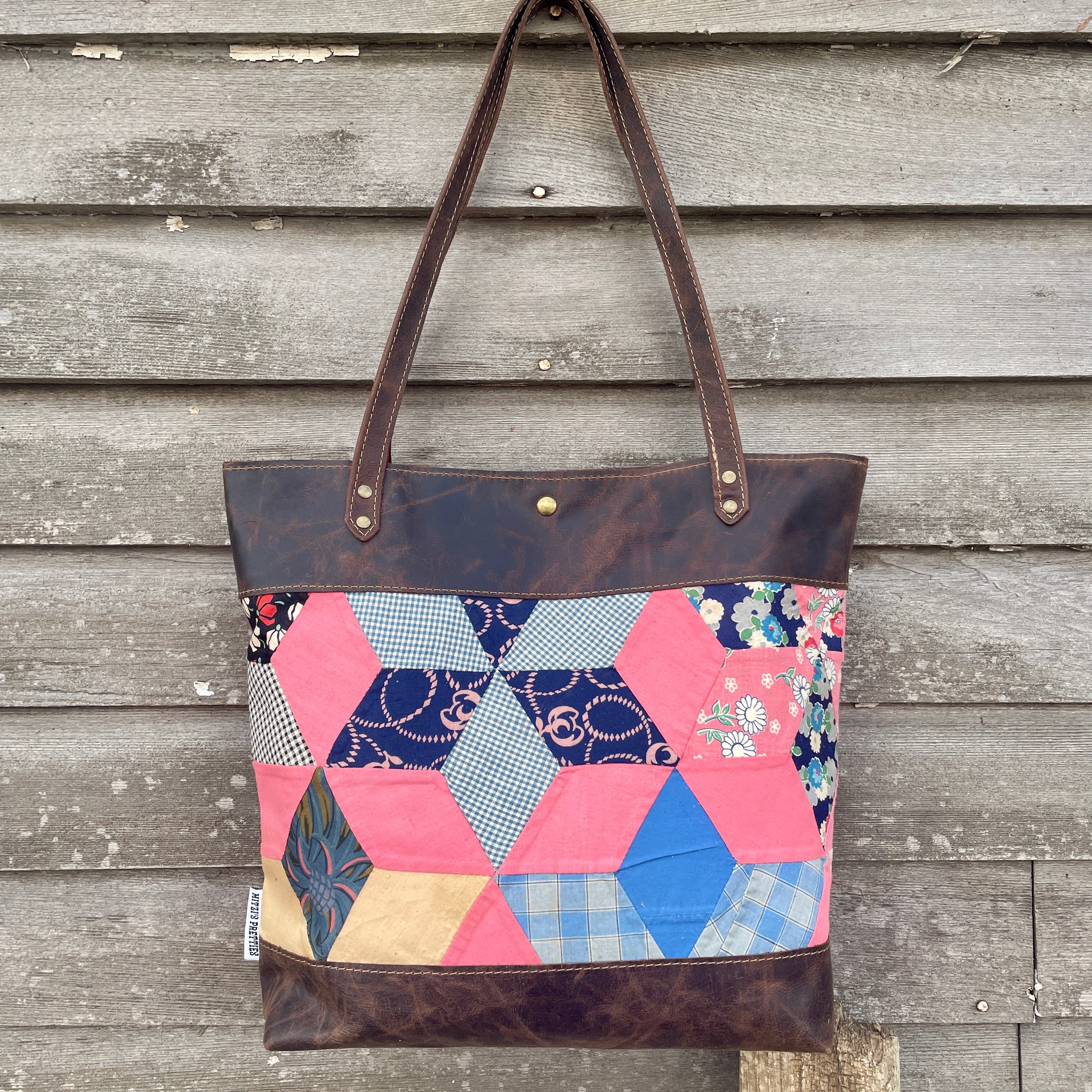 Made with vintage hand stitched quilt and leather. Super one of a kind bag!