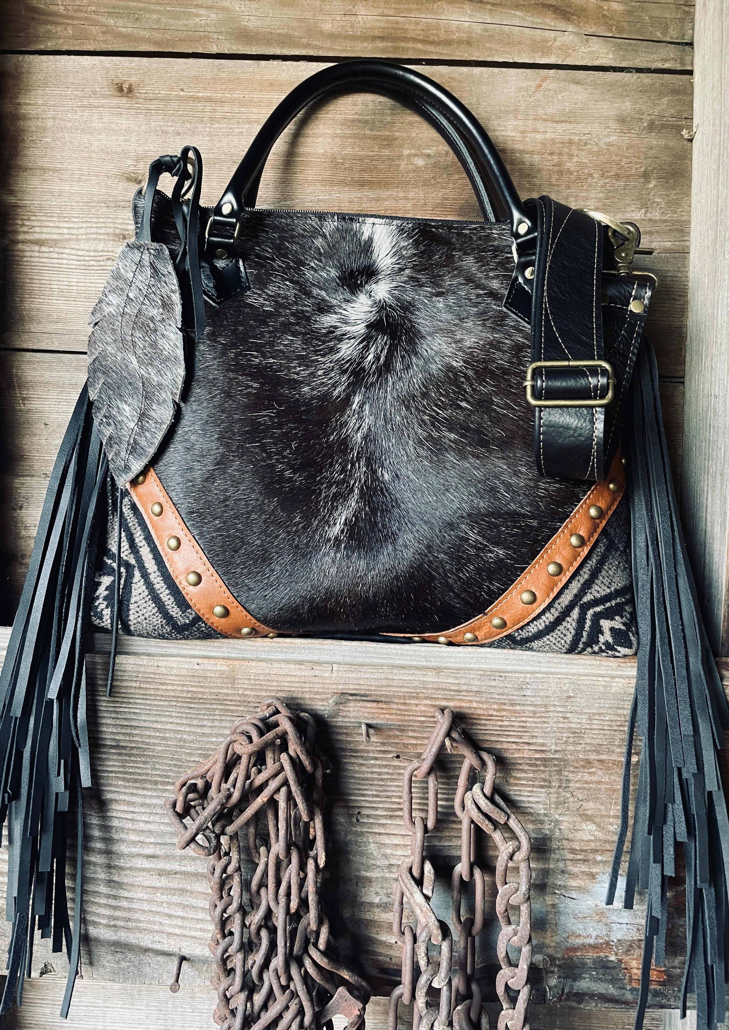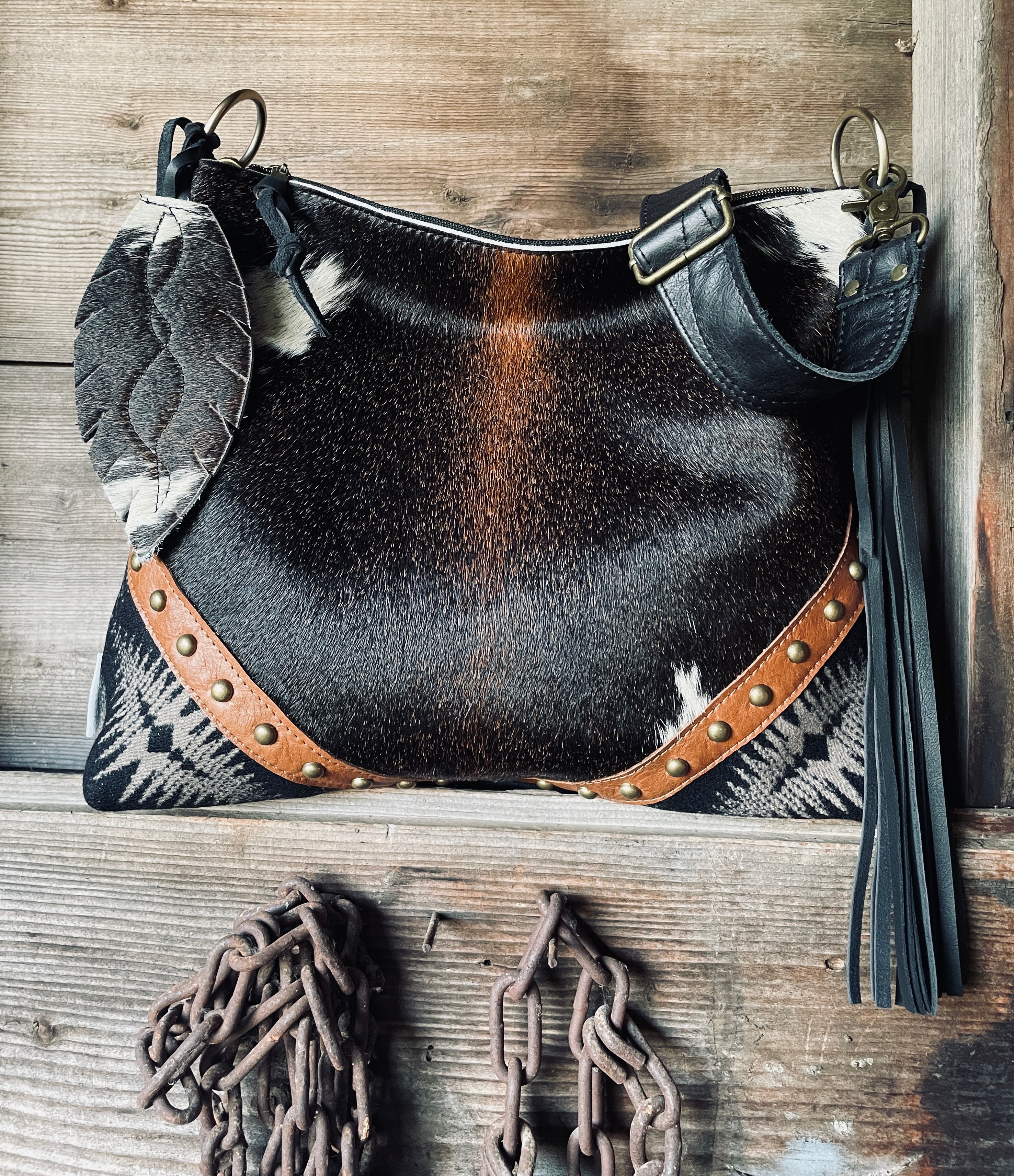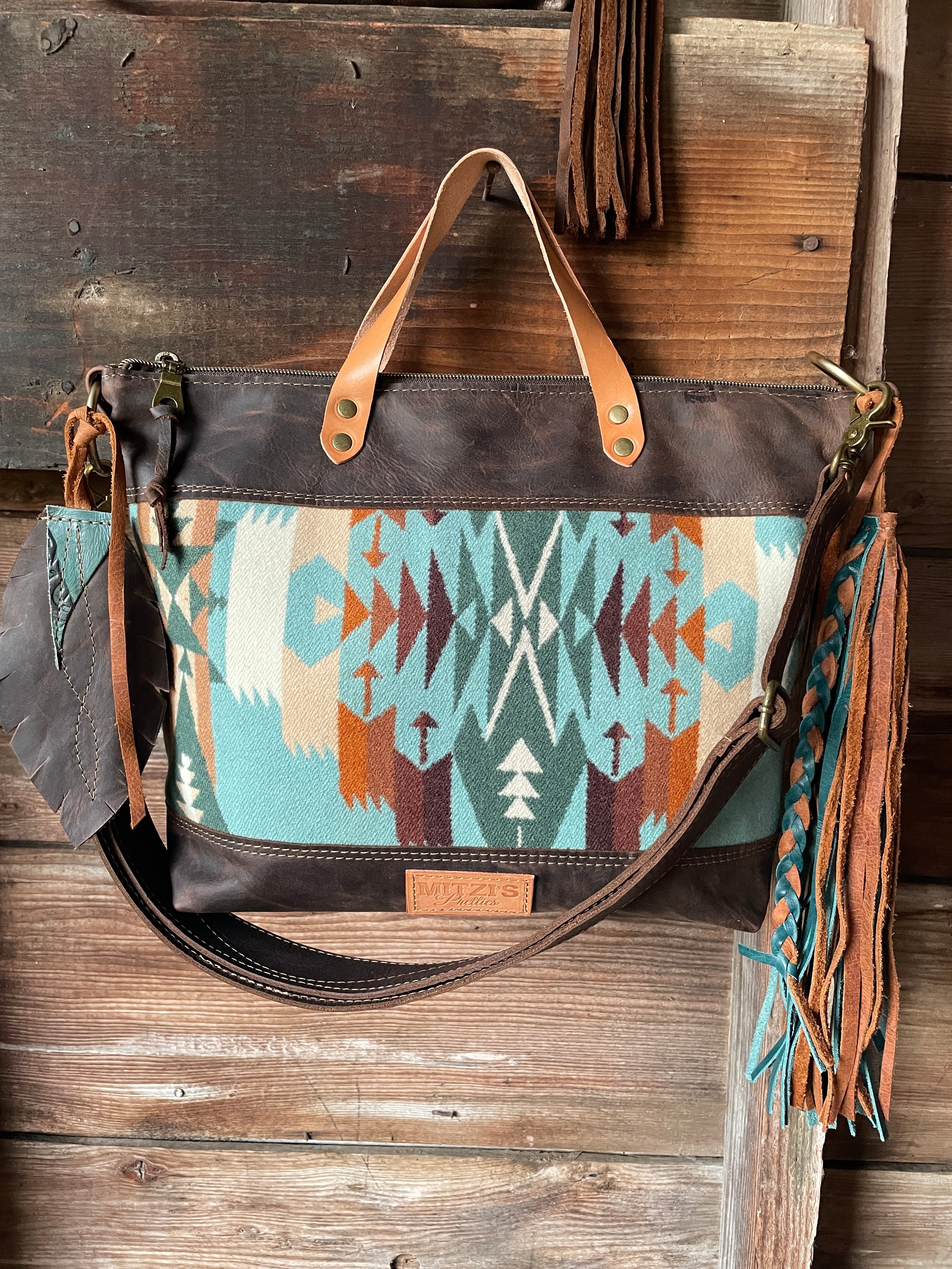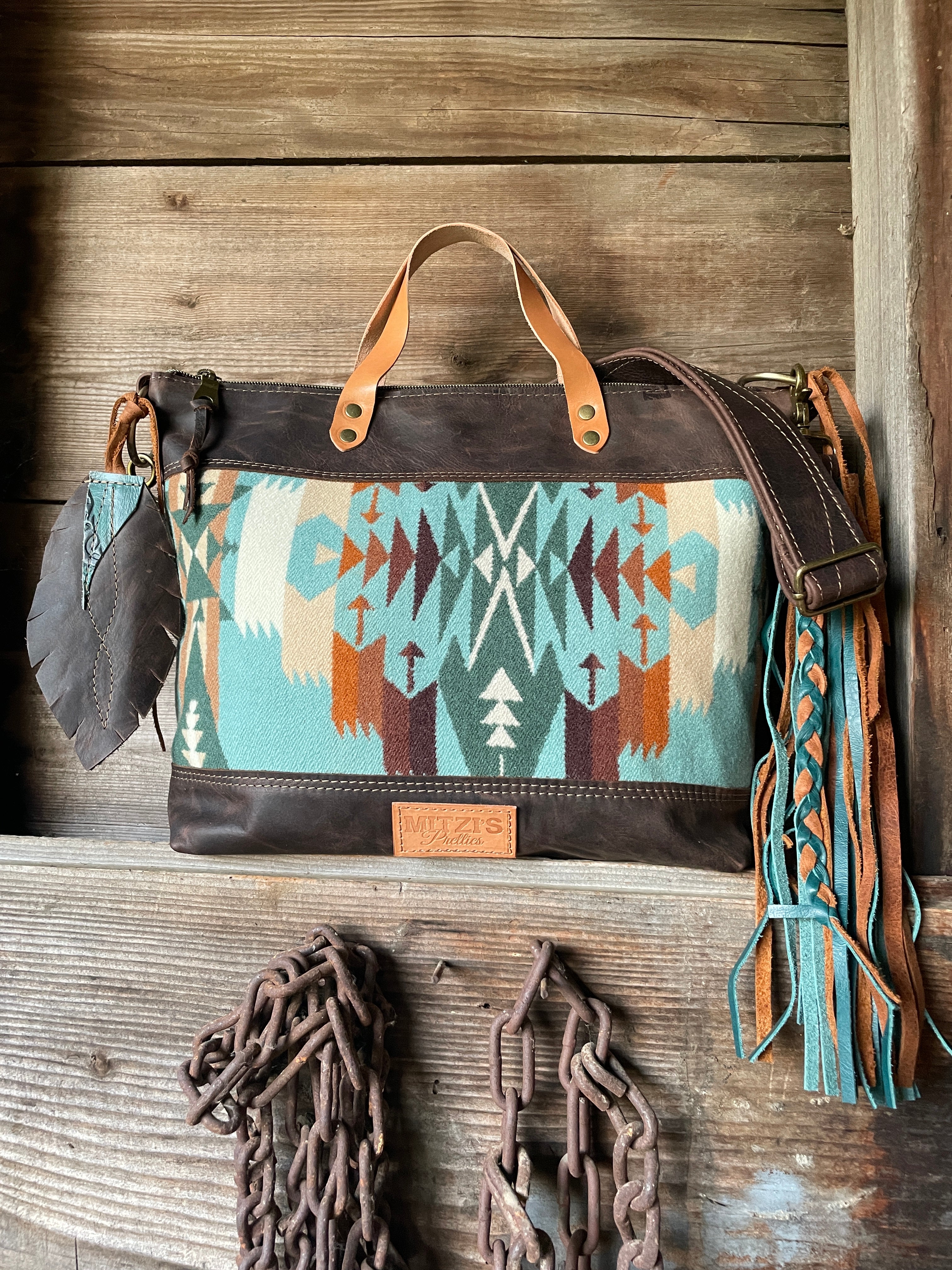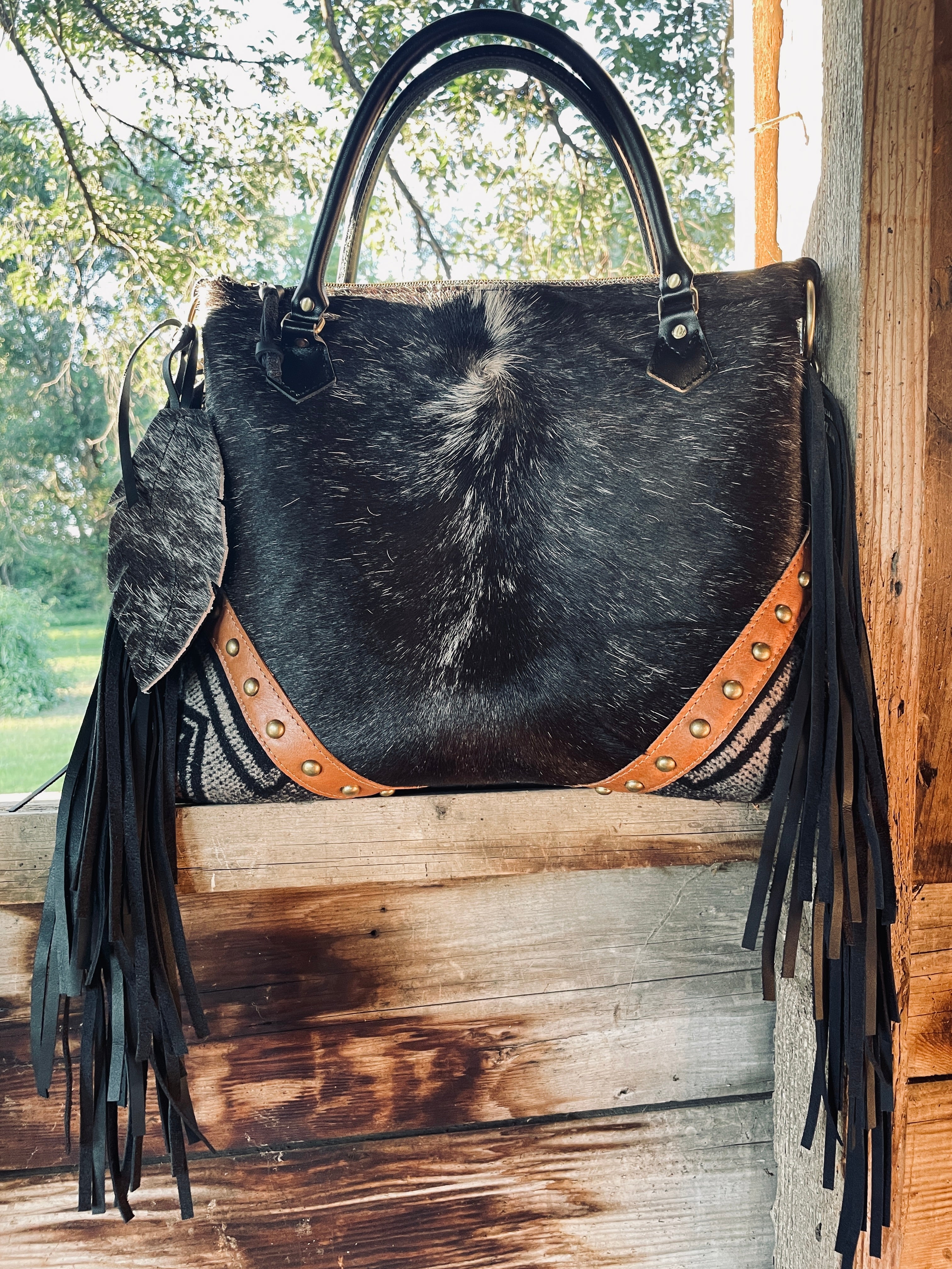 Made with cowhide leather, PENDLETON WOOL corners and stud accents, this is a show stopping bag!