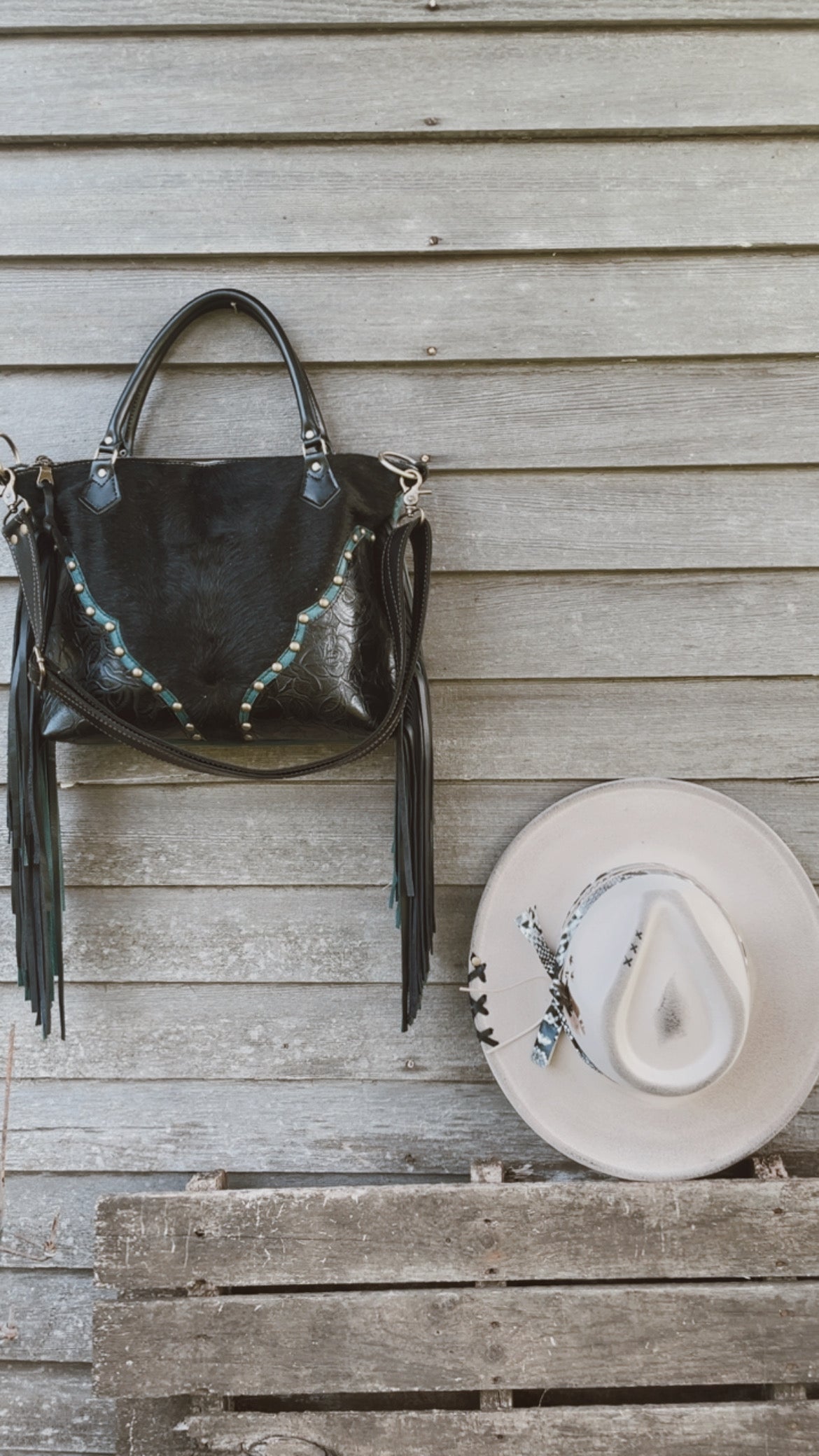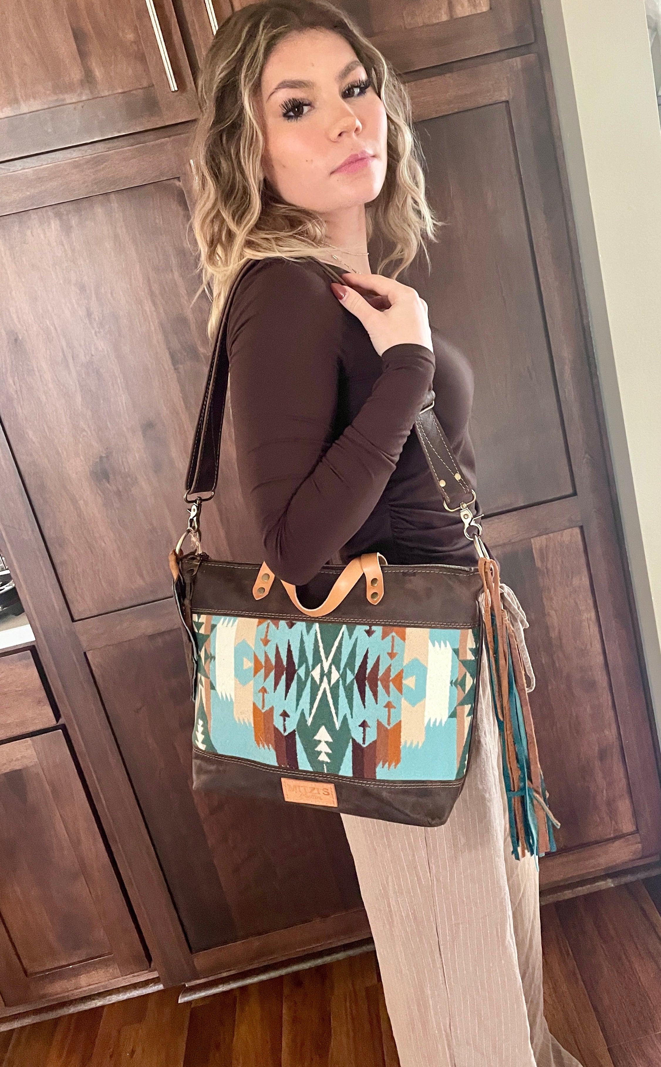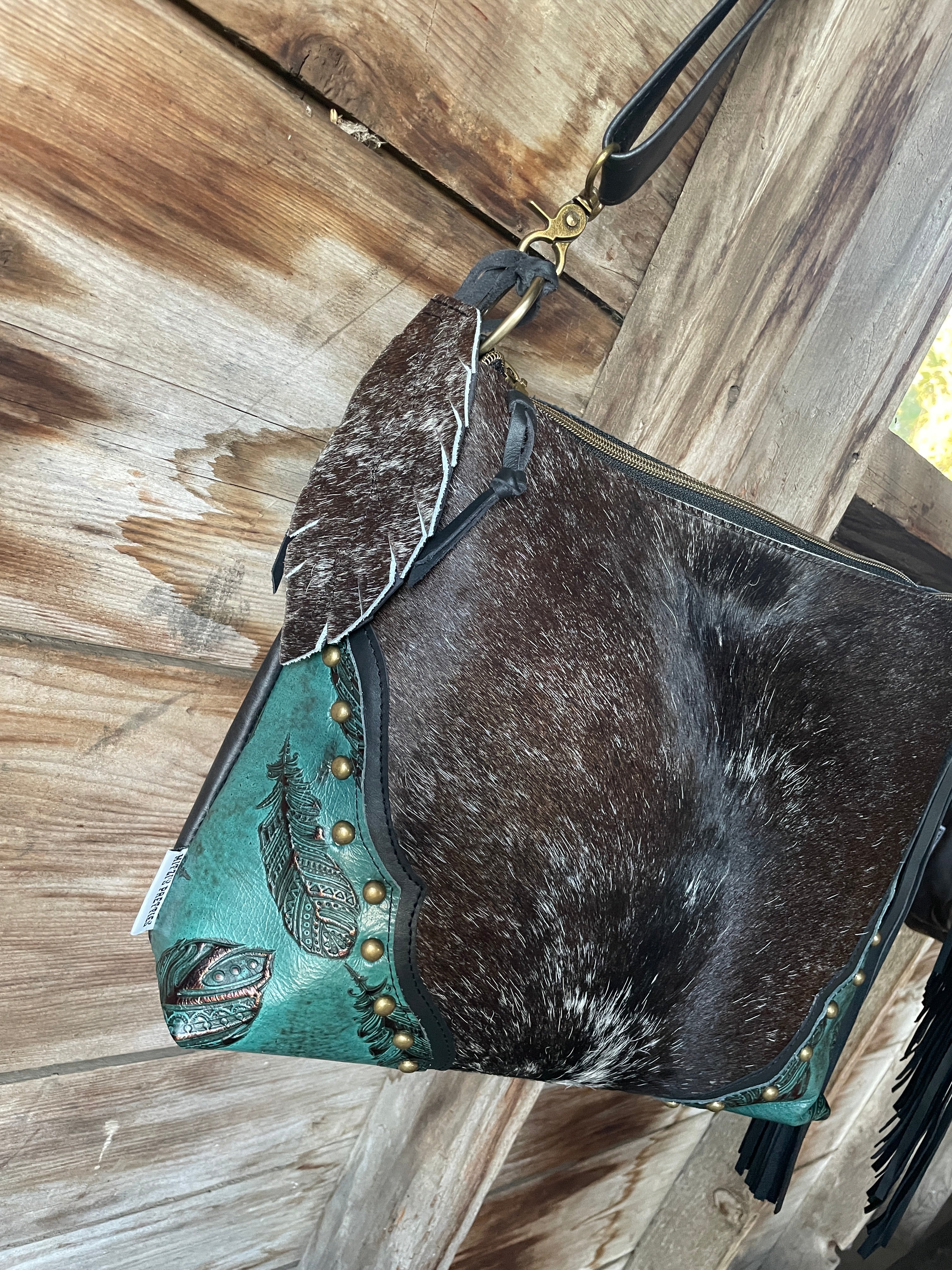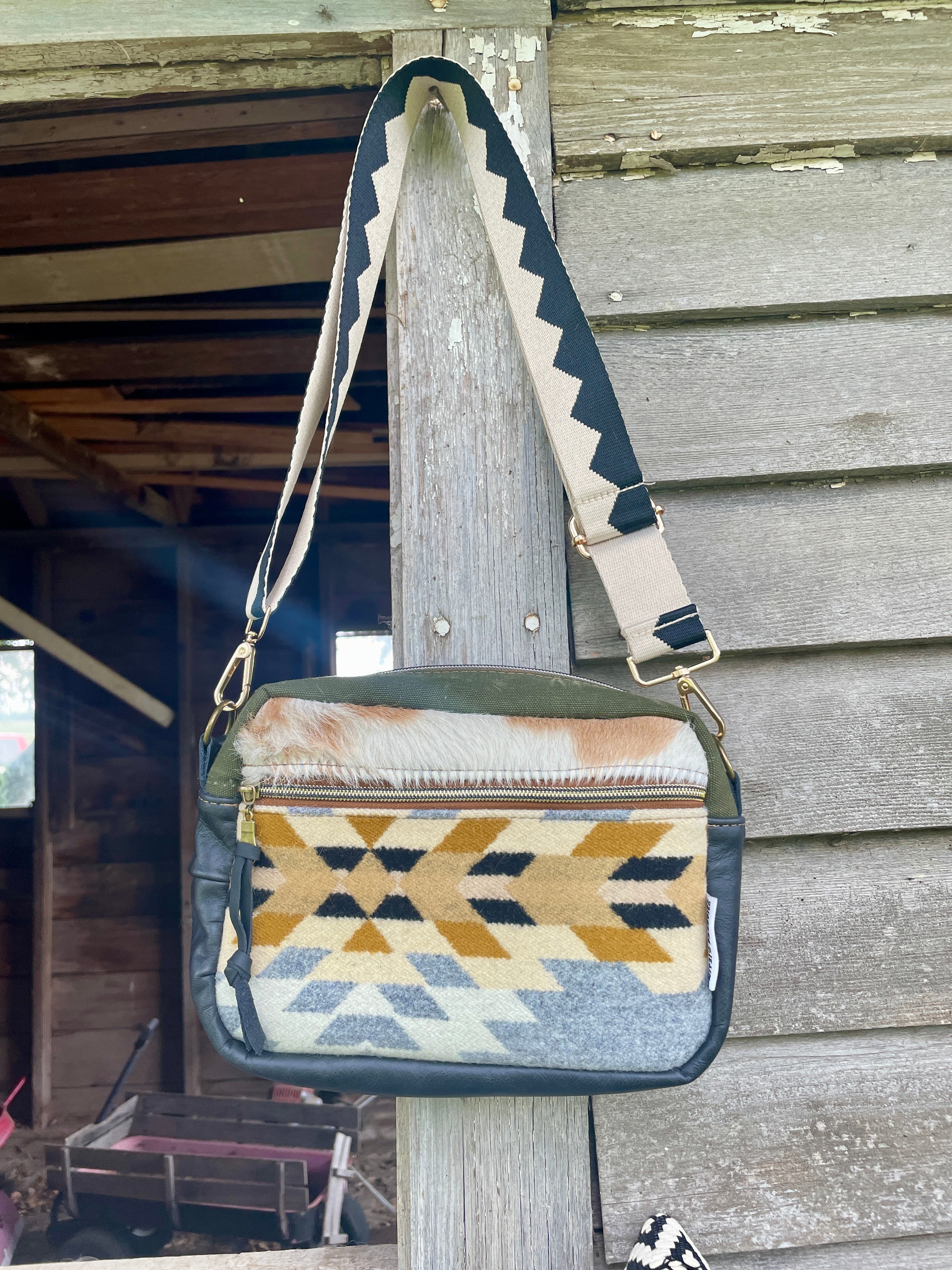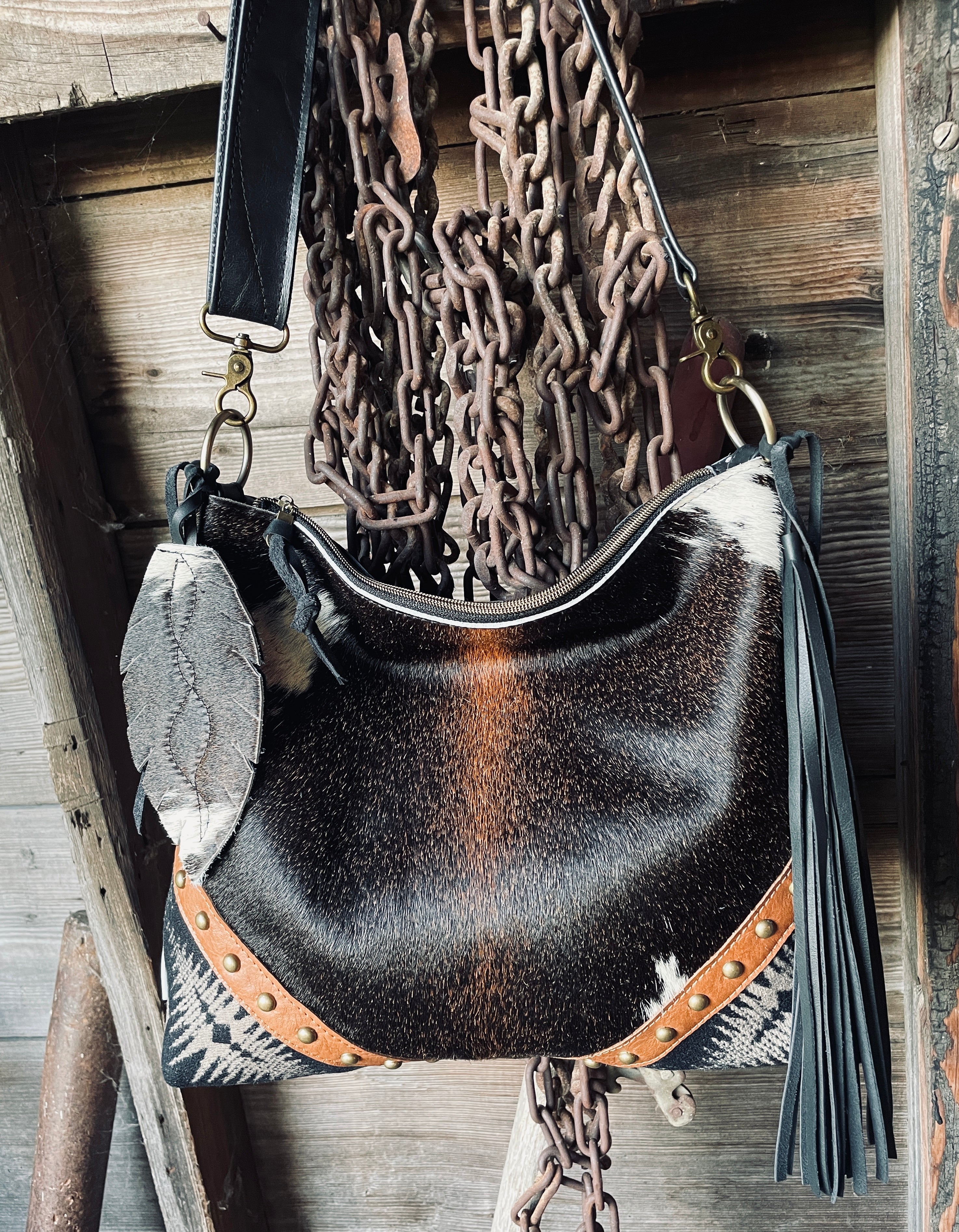 Made with cowhide leather, PENDLETON WOOL corners and stud accents, this is a show stopping bag!