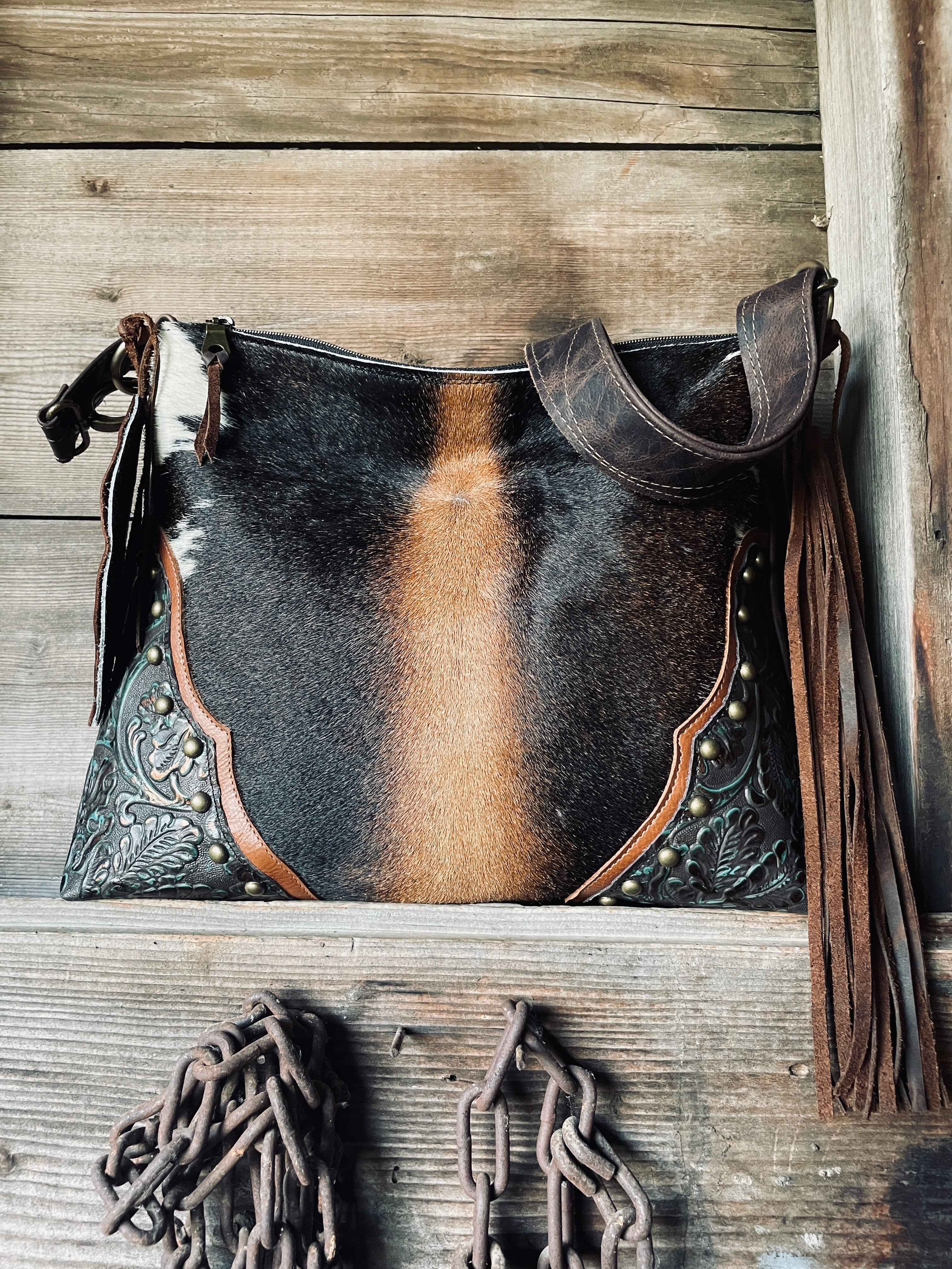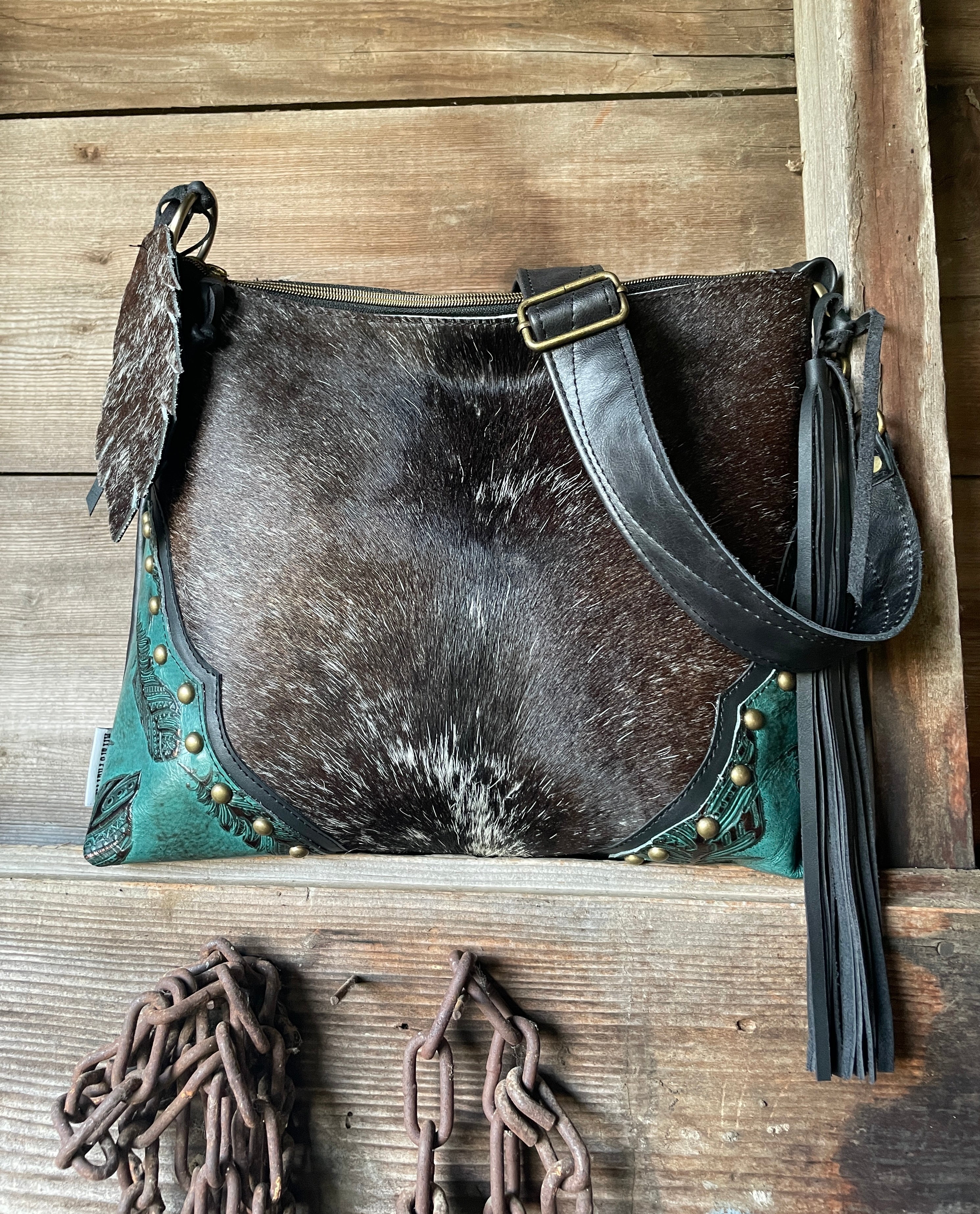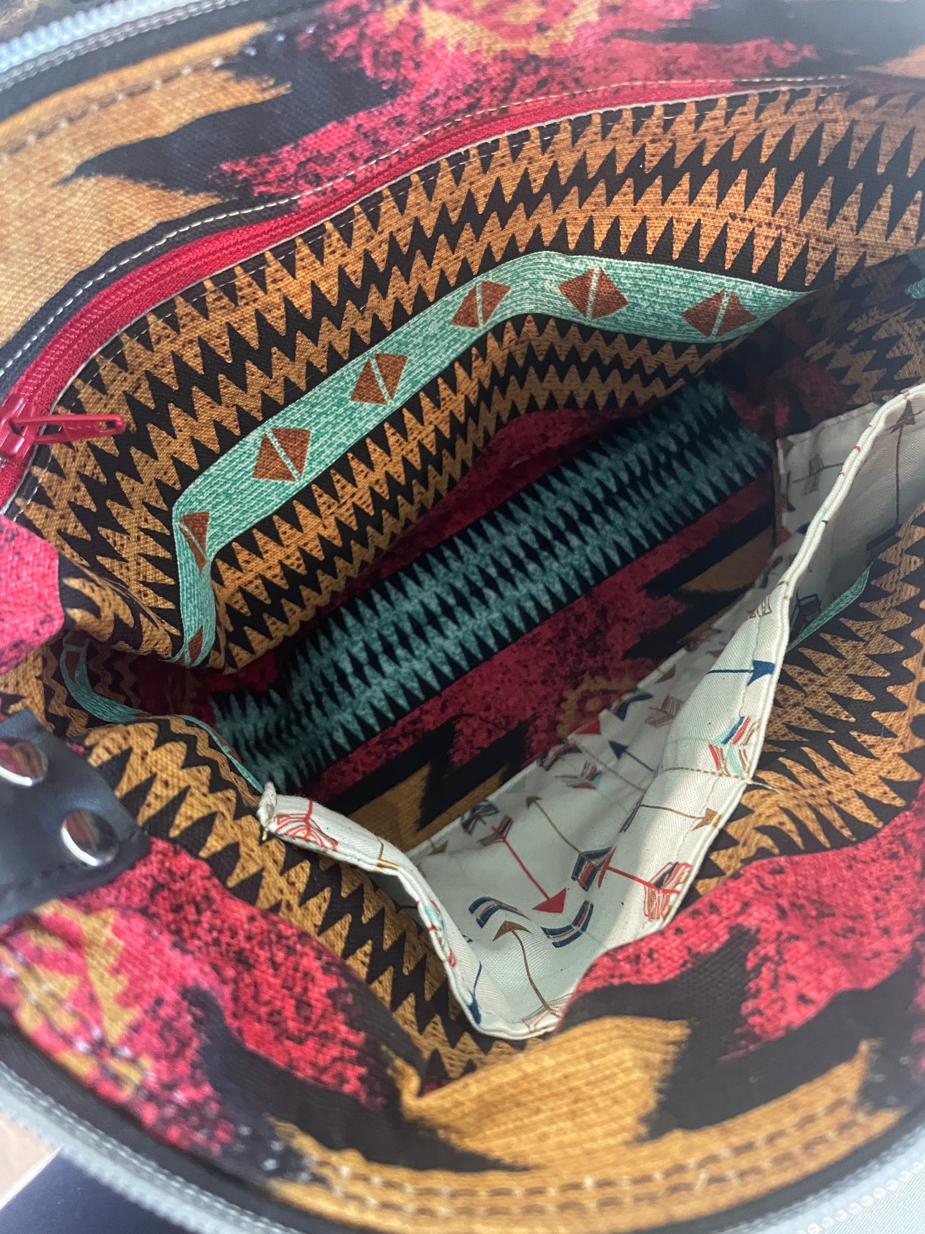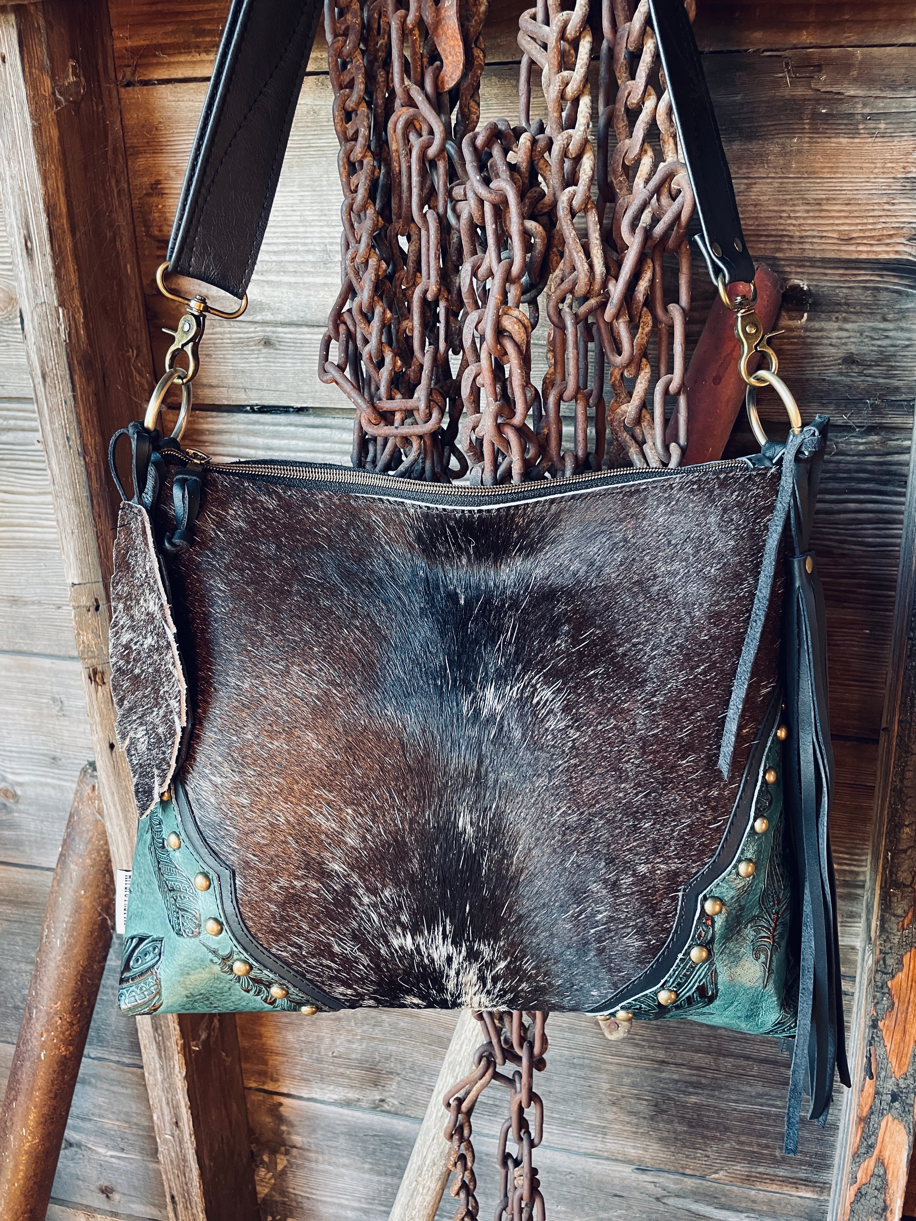 Made with cowhide leather, PENDLETON WOOL corners and stud accents, this is a show stopping bag!