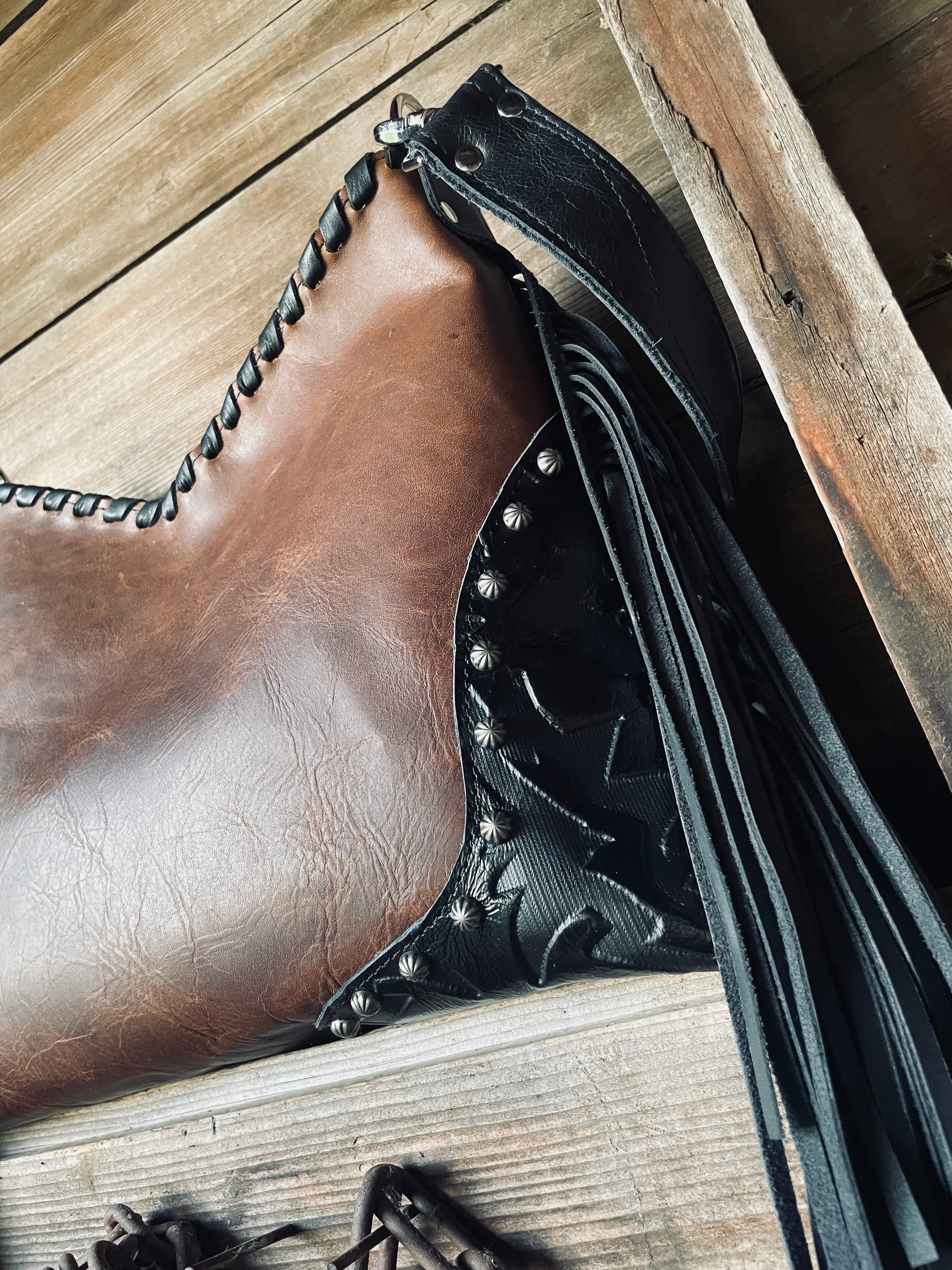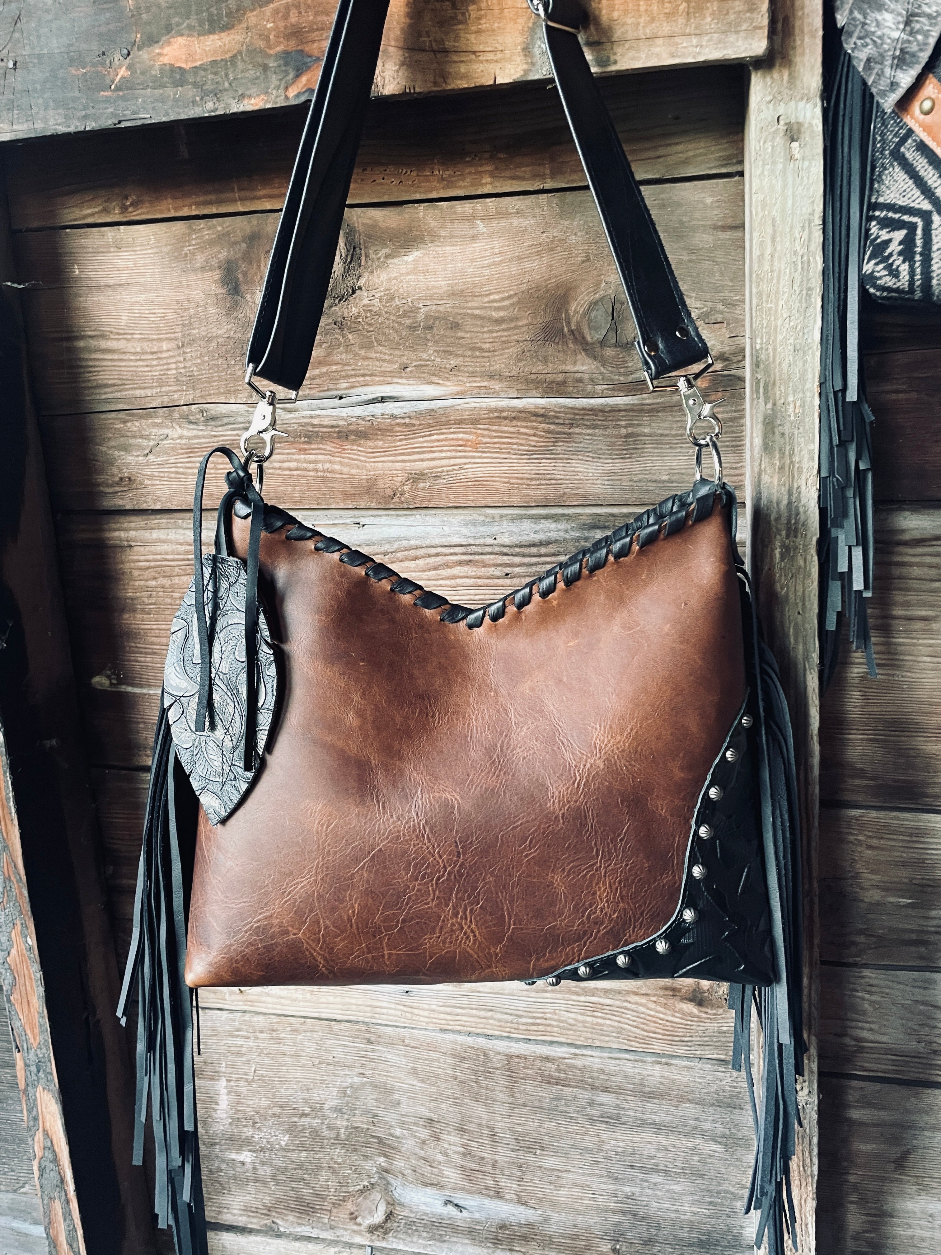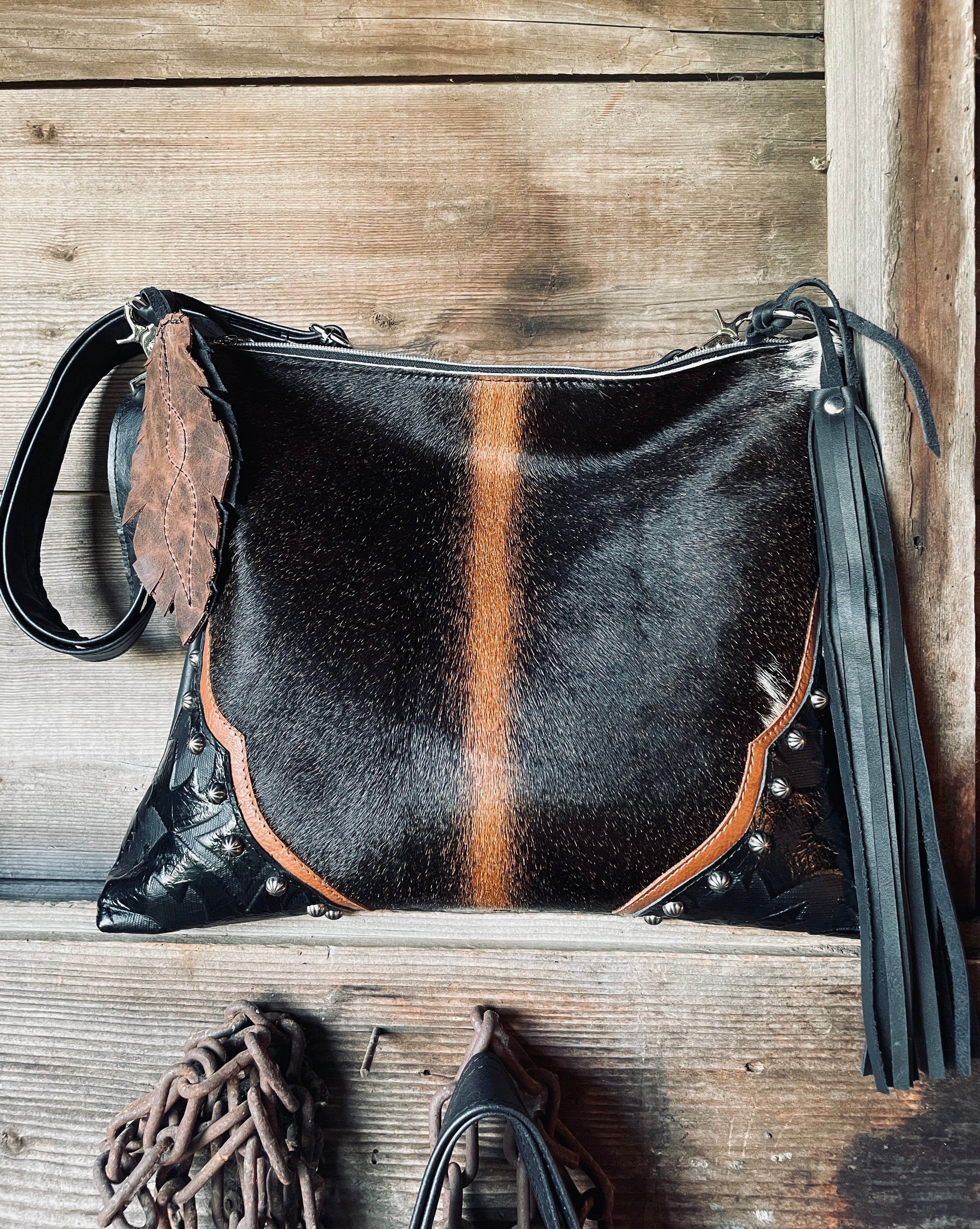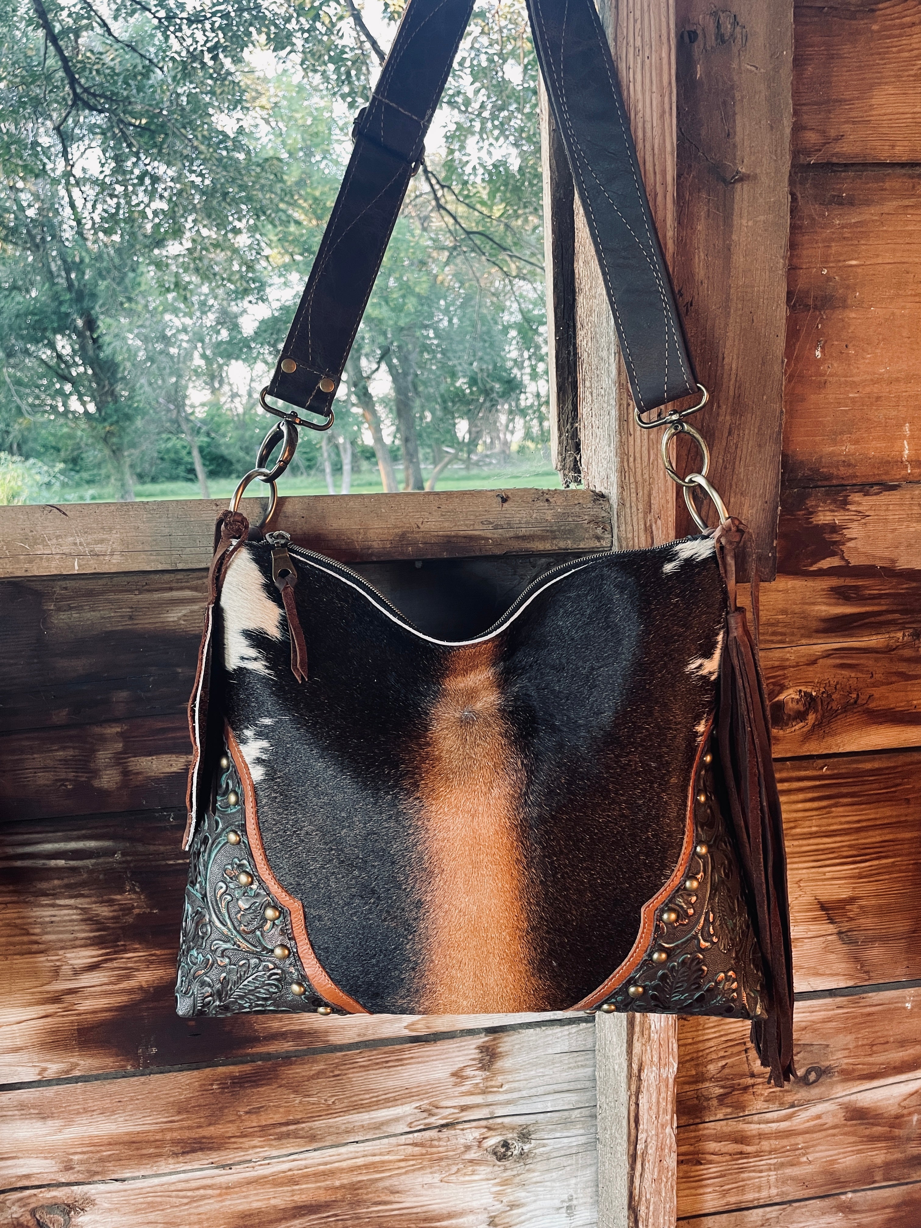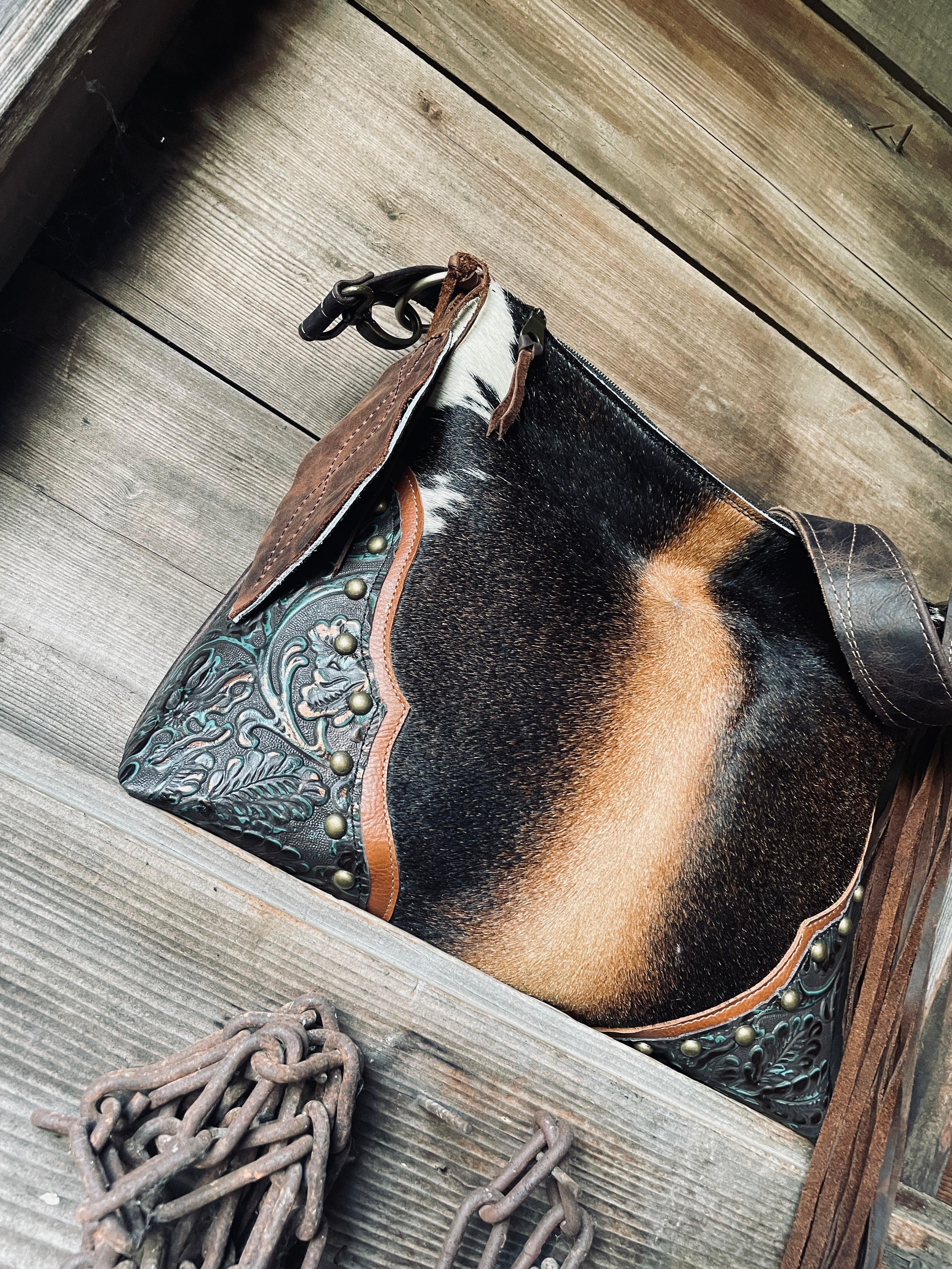 Made with cowhide leather, PENDLETON WOOL corners and stud accents, this is a show stopping bag!