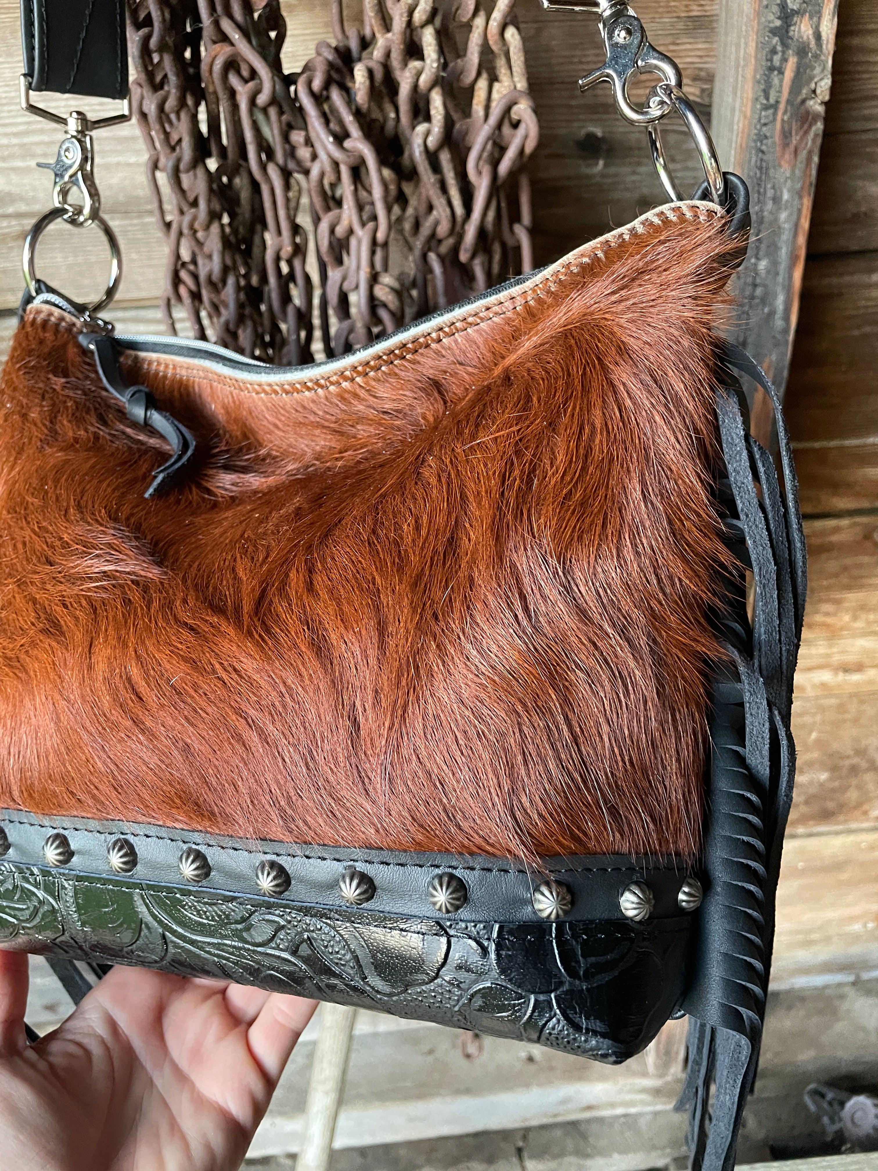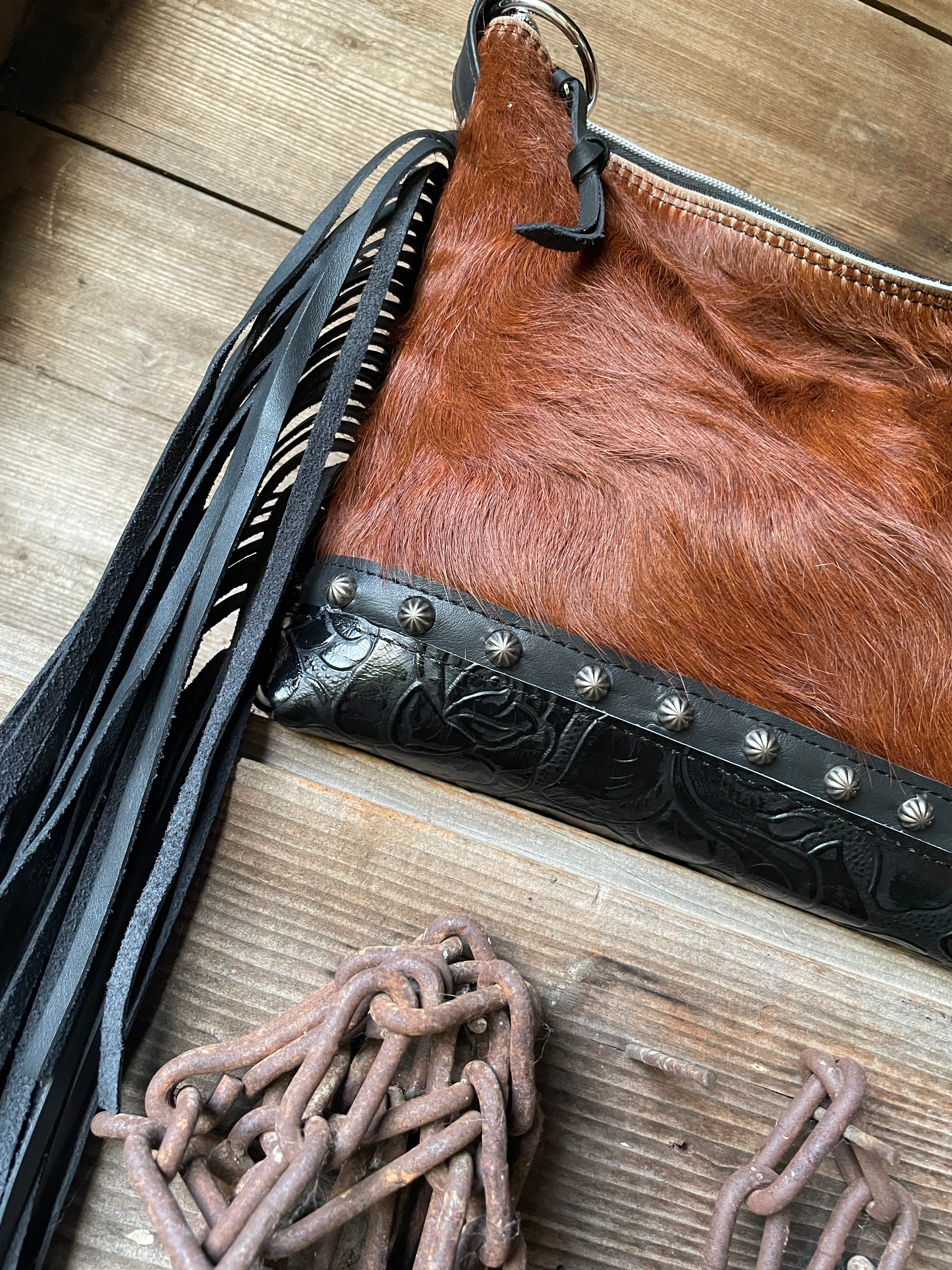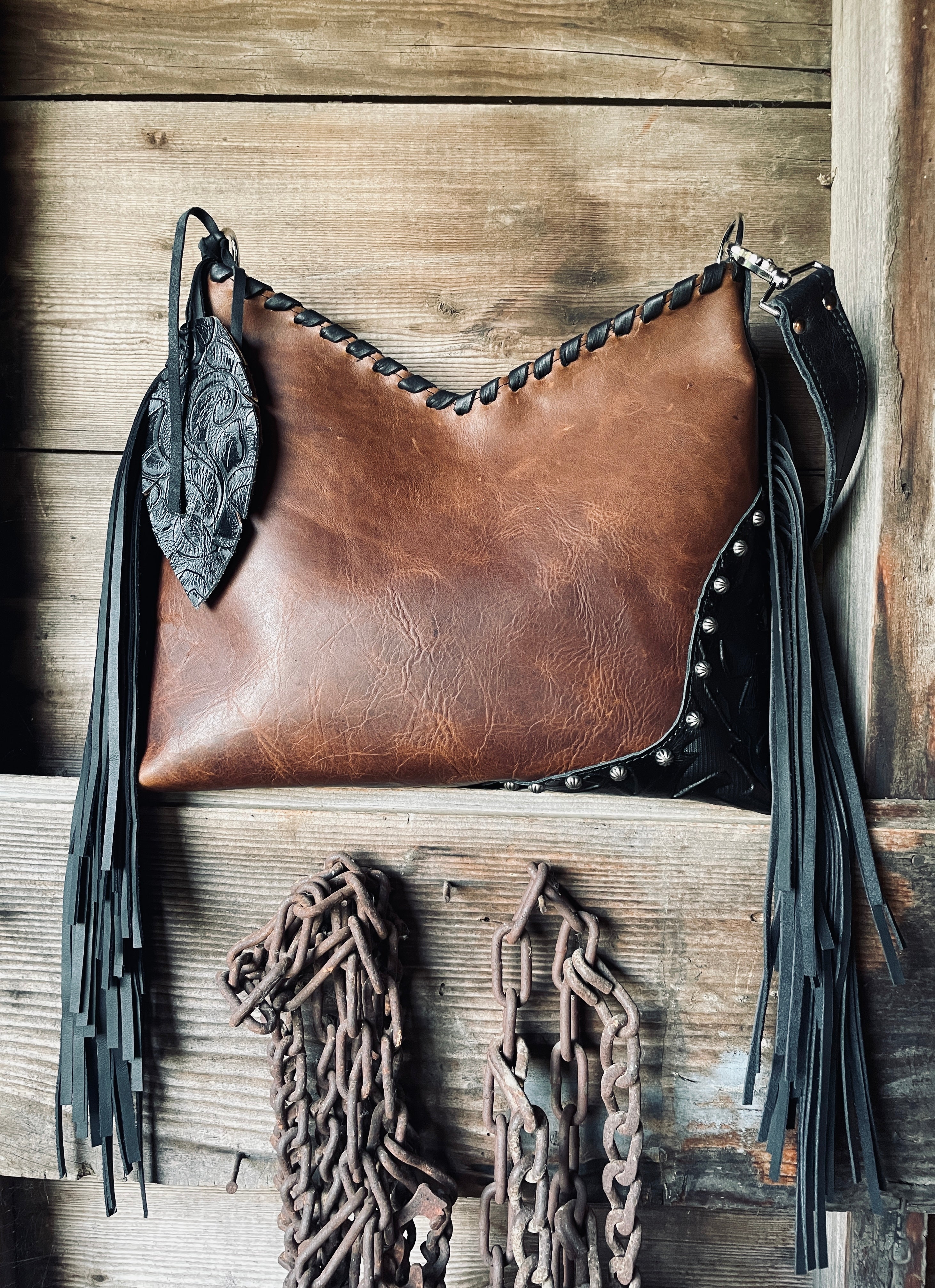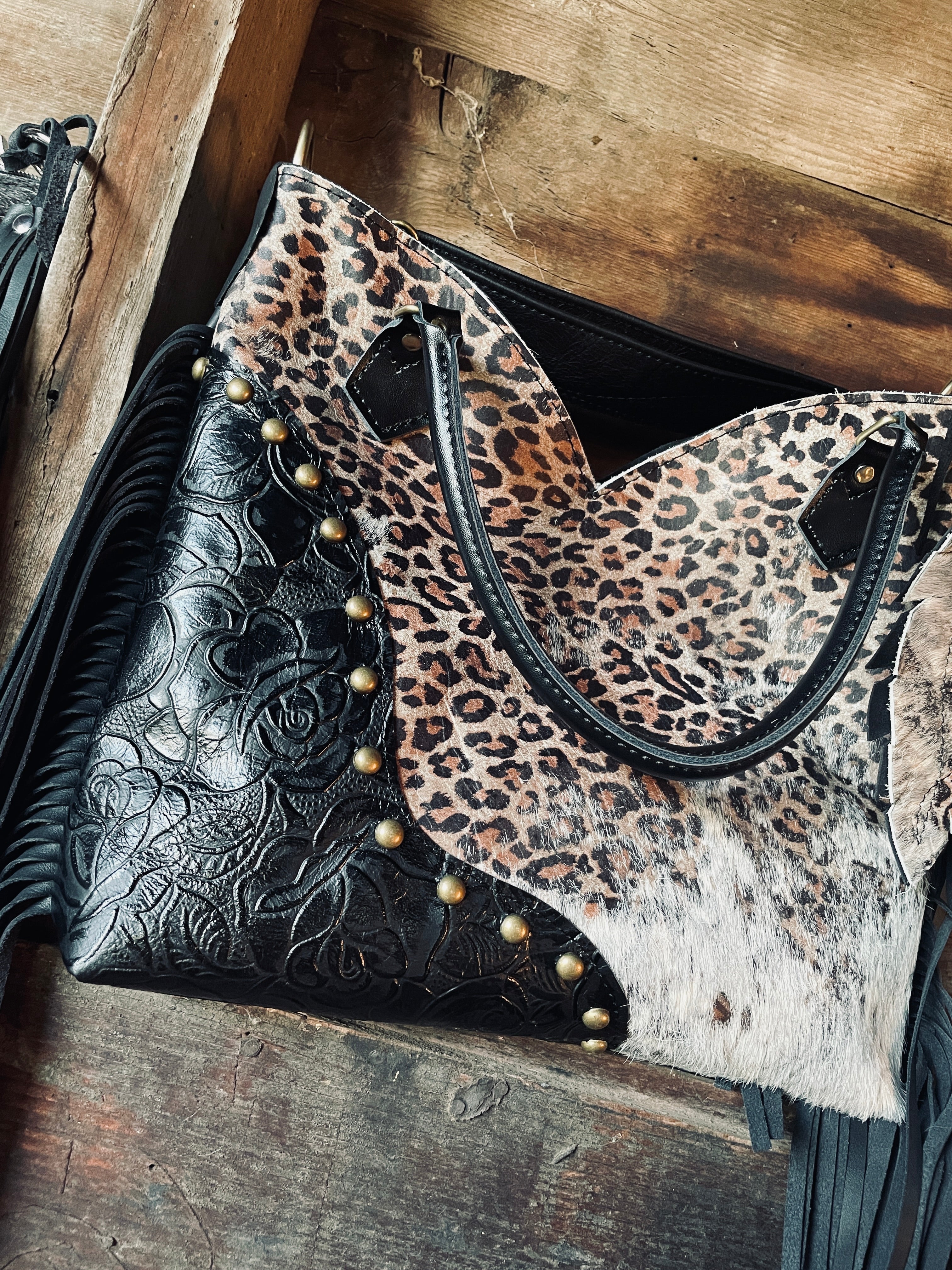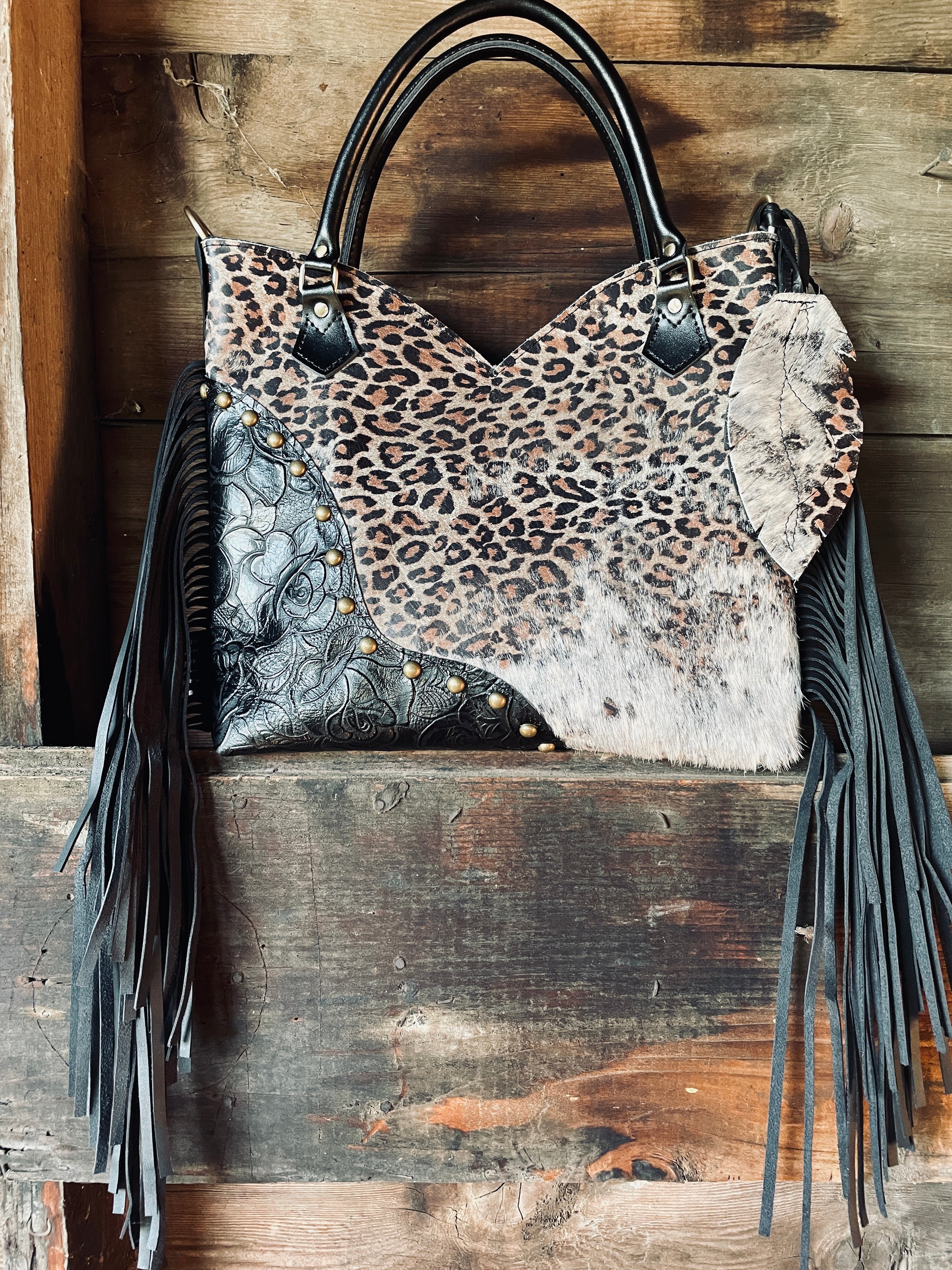 Made with cowhide leather, PENDLETON WOOL corners and stud accents, this is a show stopping bag!