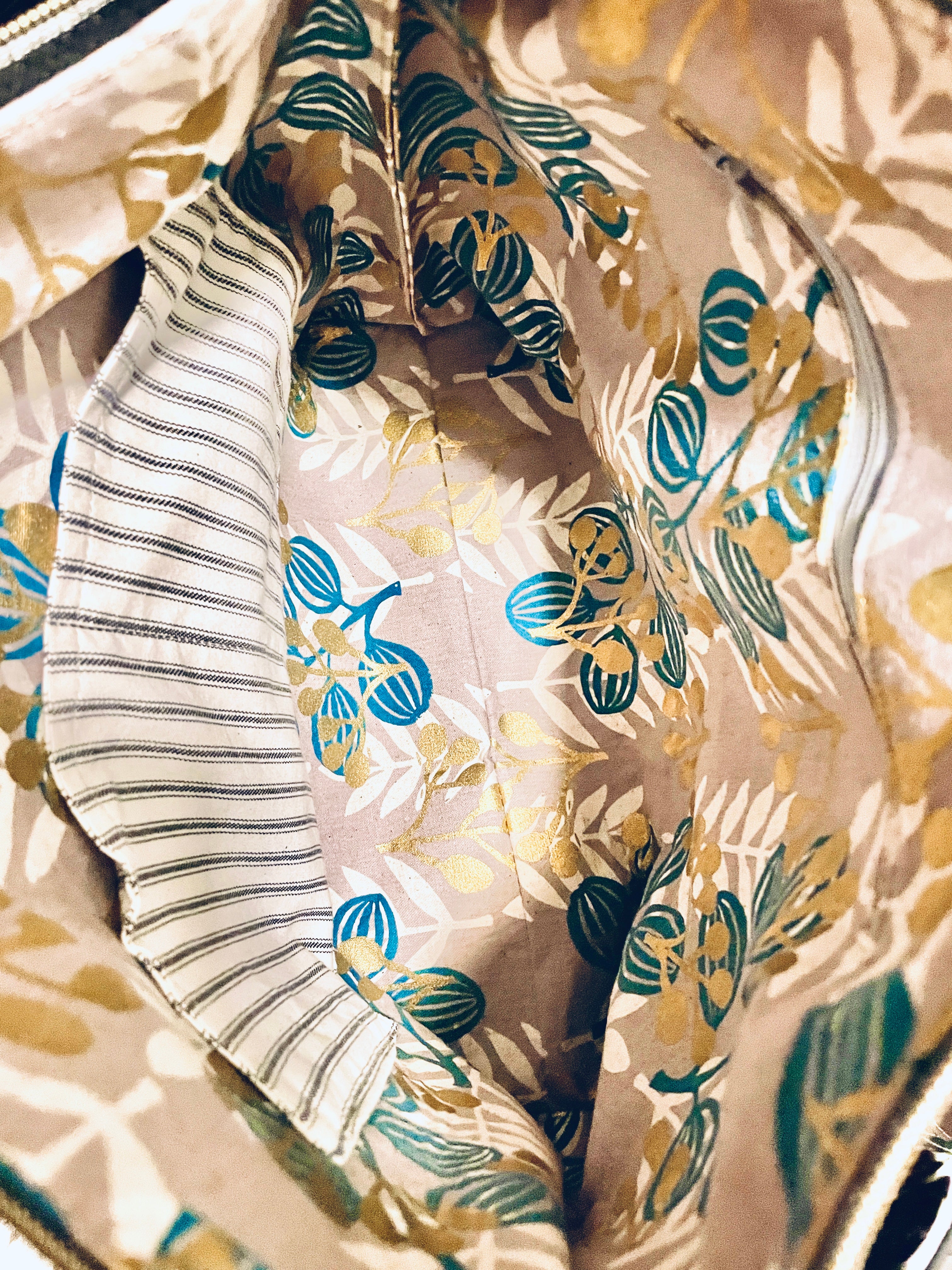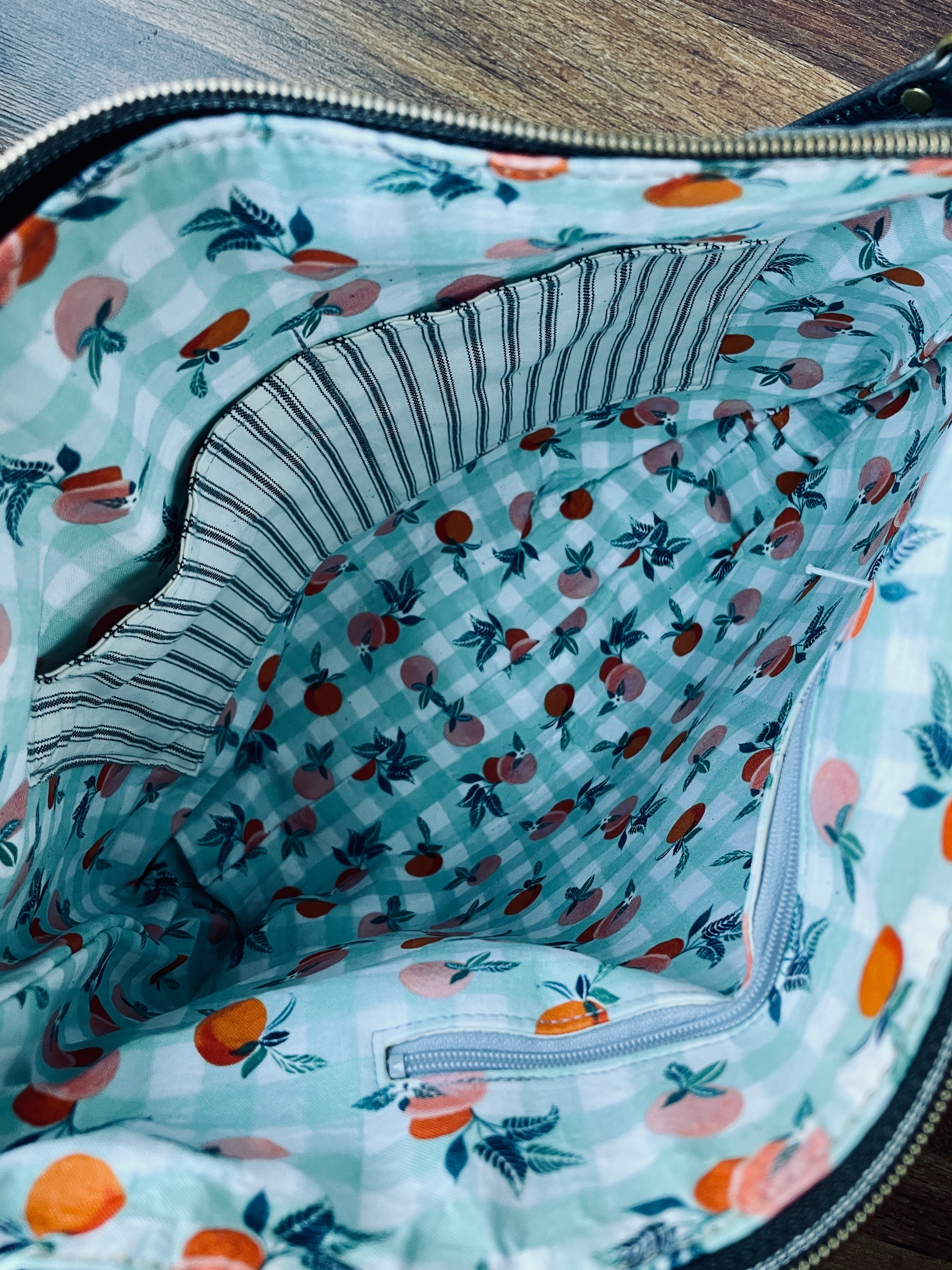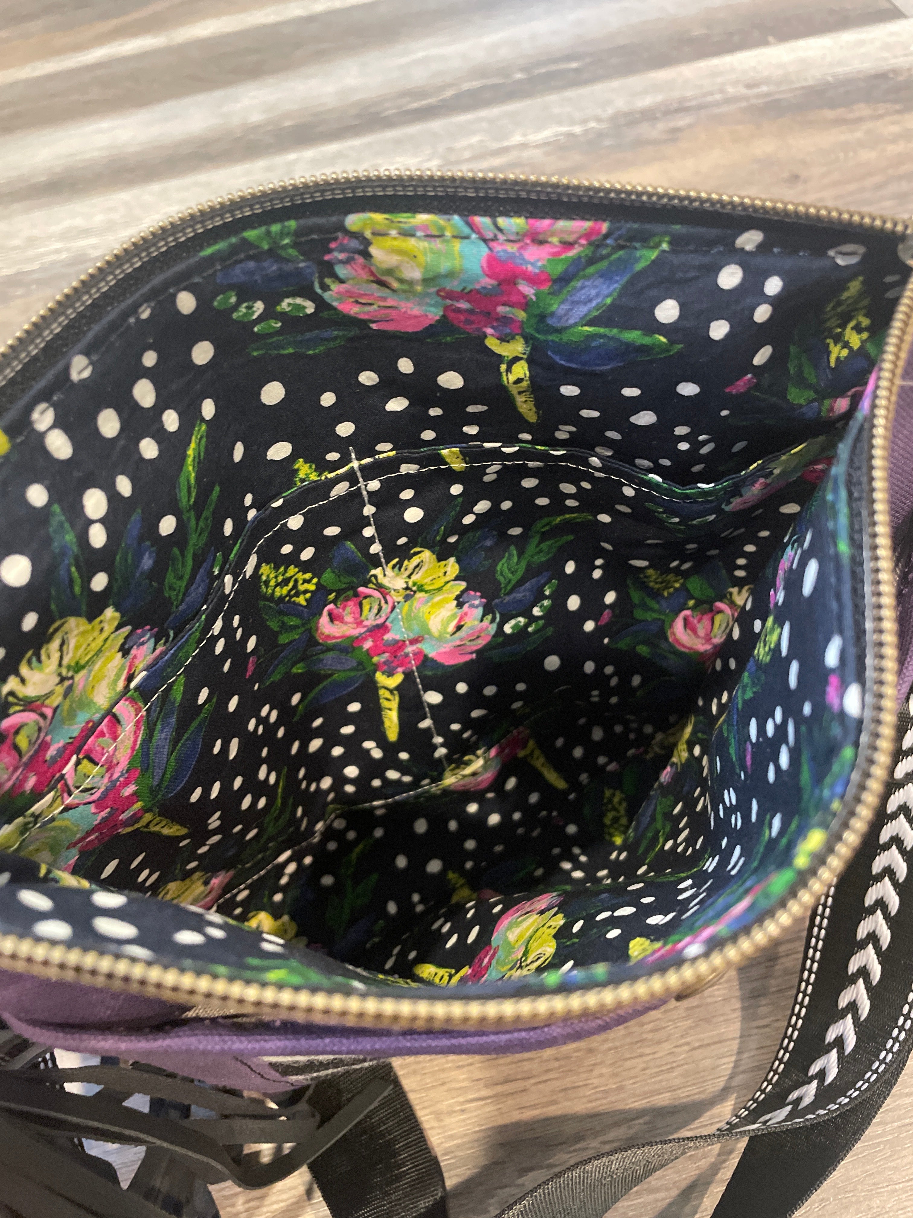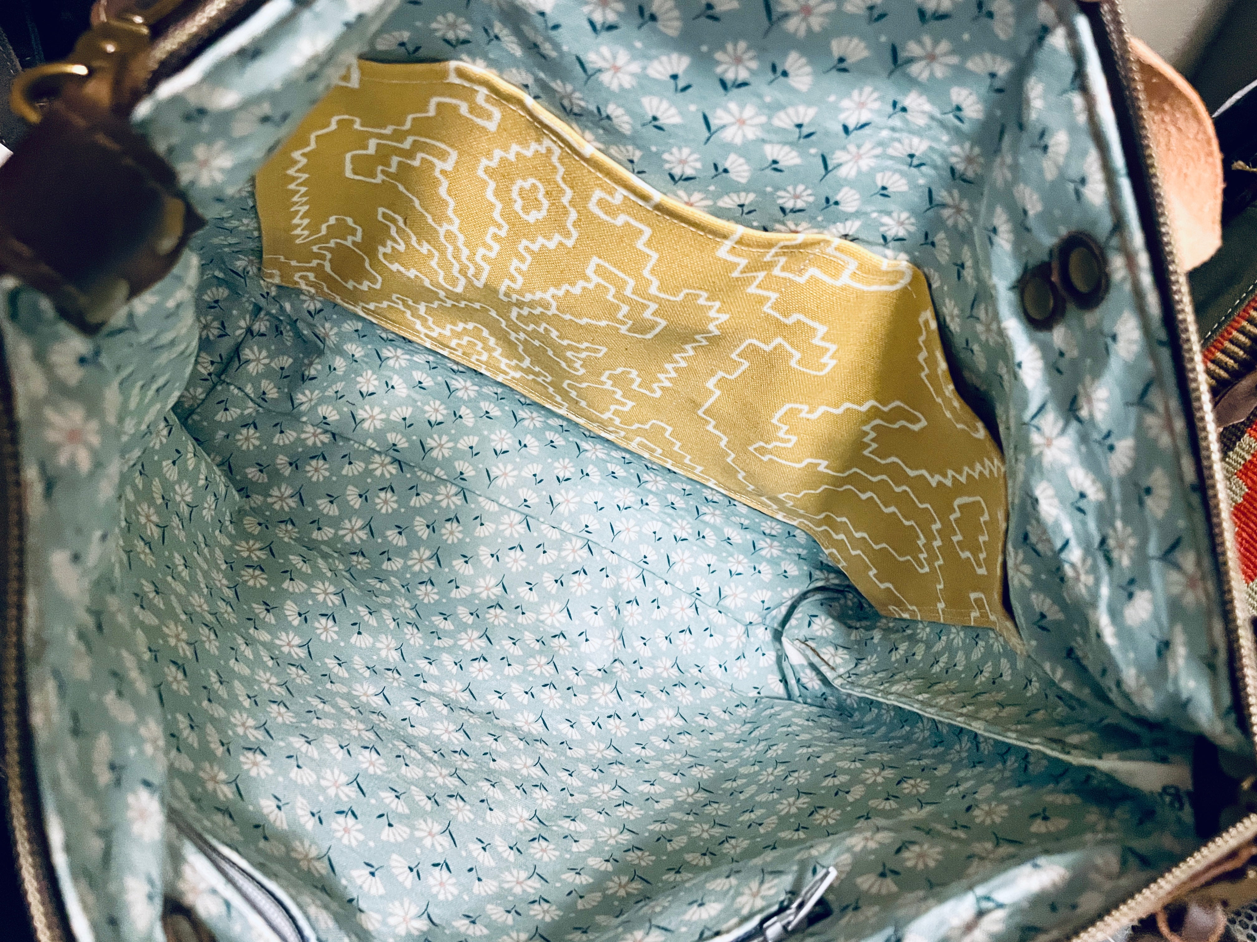For the interior, I used a canvas fabric that I interfaced for durability. The interior features 2 slip pockets and a zipper pocket.
