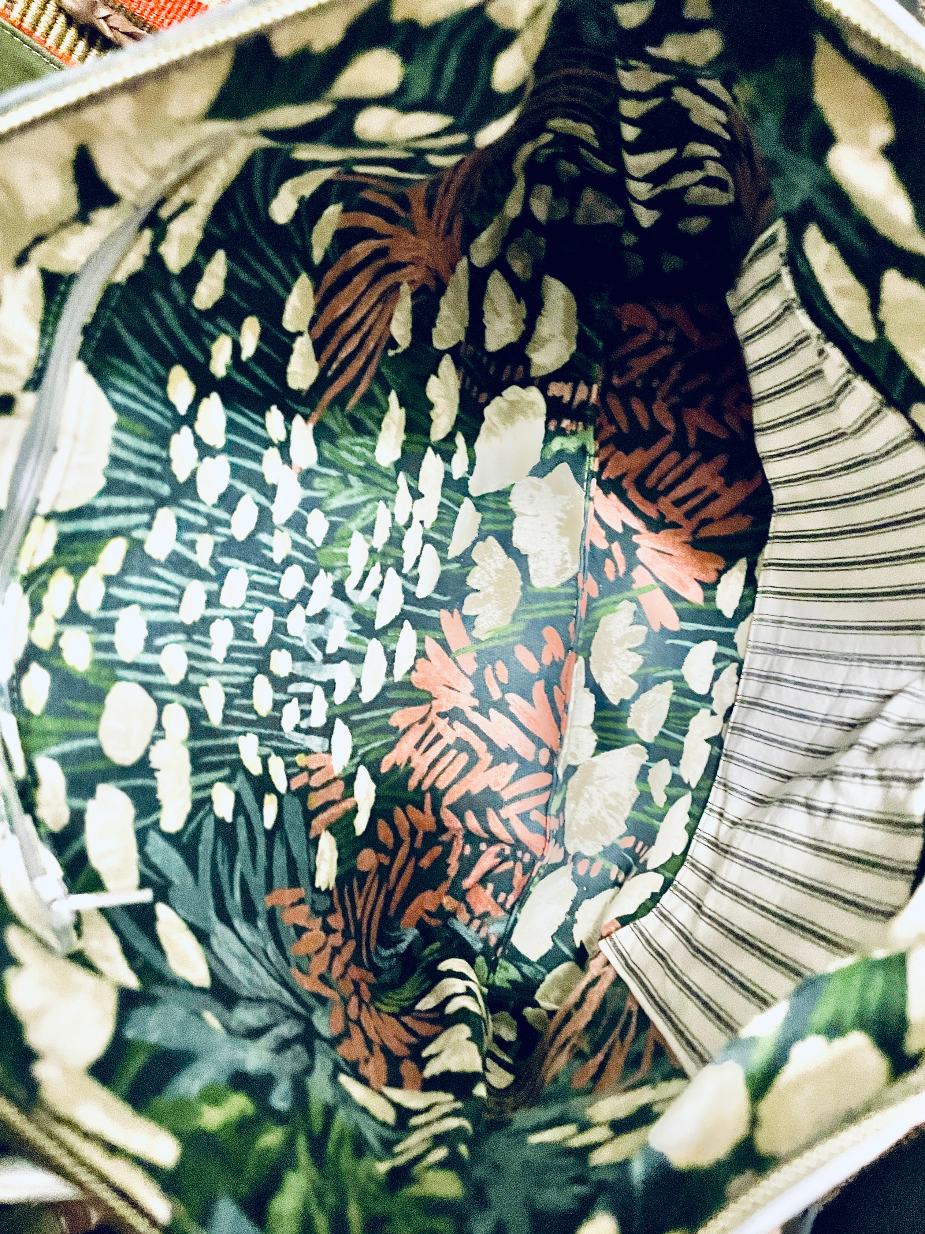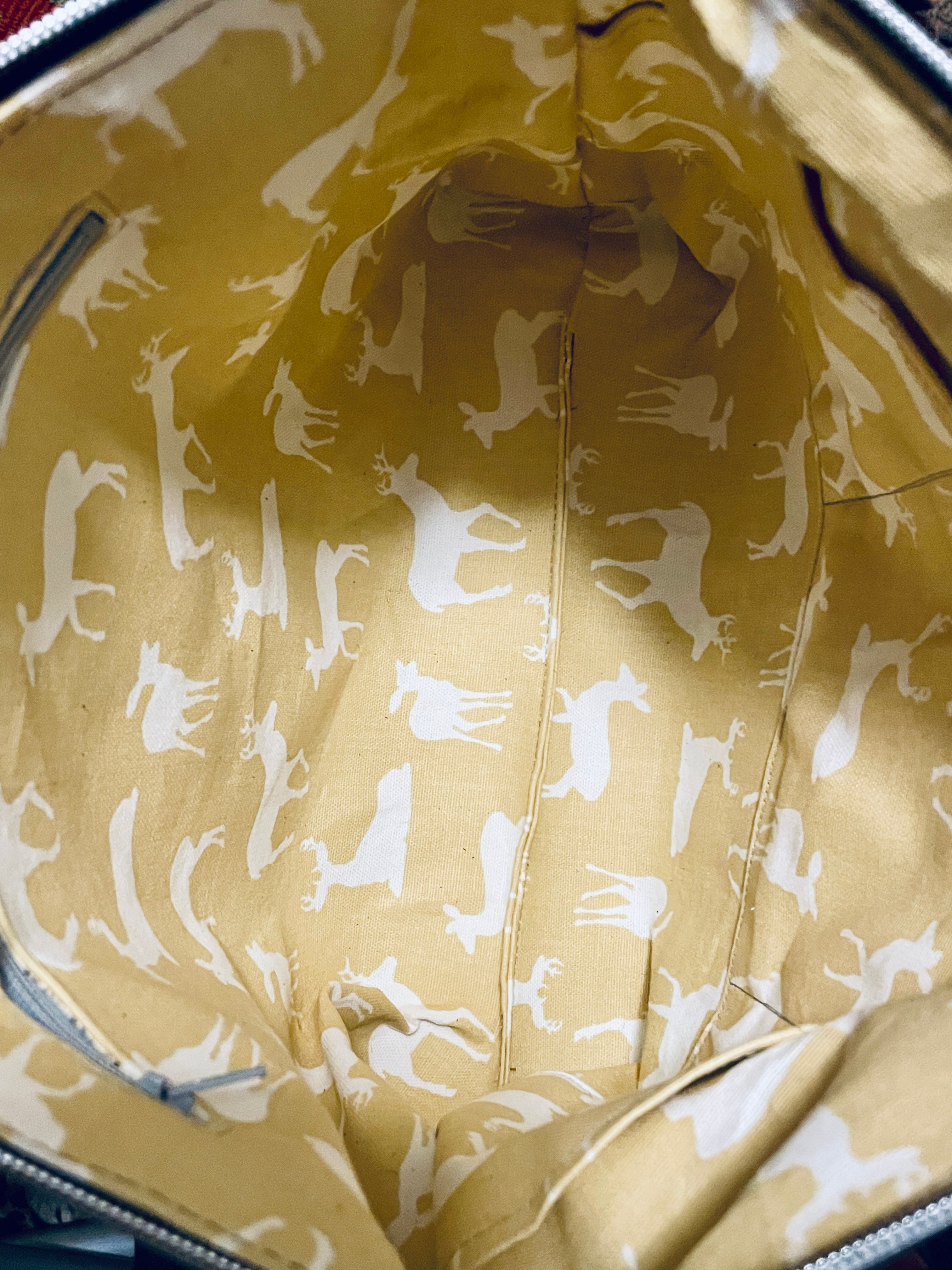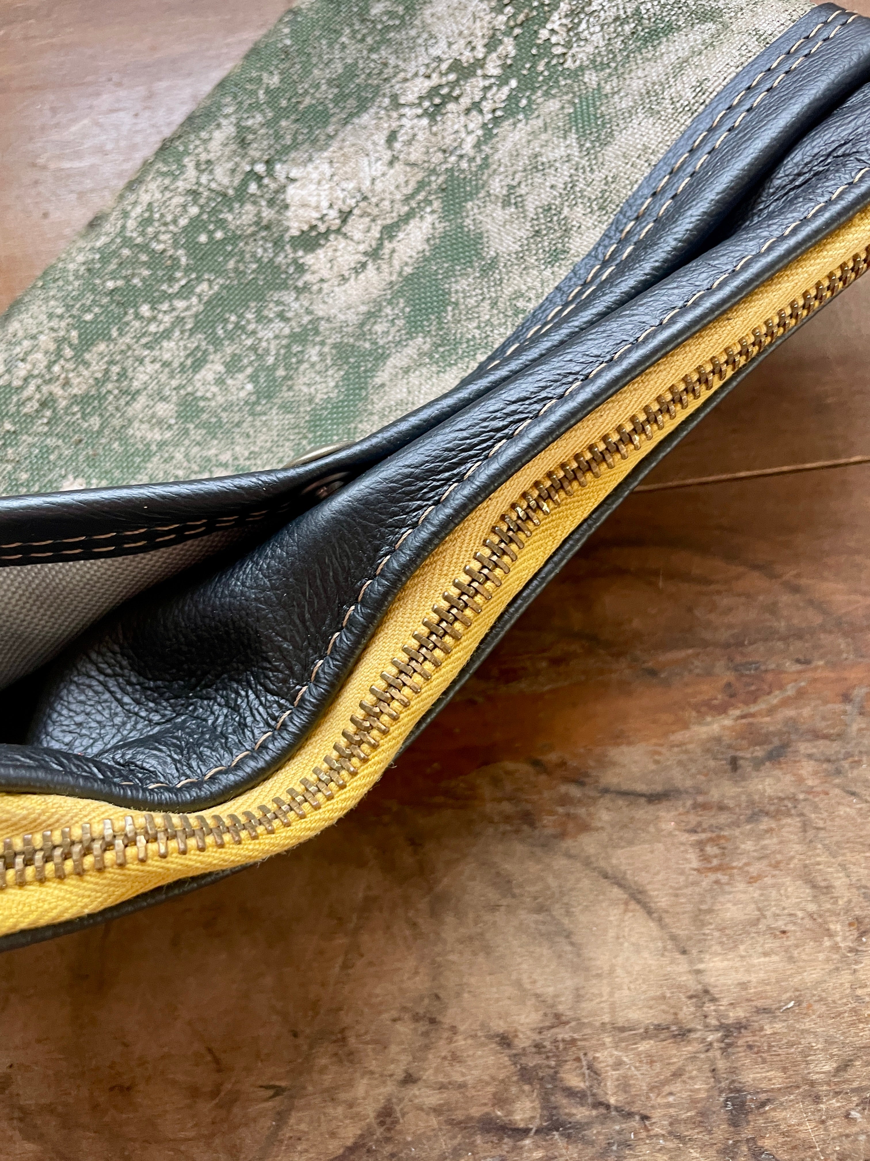 For the interior, I used a canvas fabric that I interfaced for durability. The interior features 2 slip pockets and a zipper pocket.