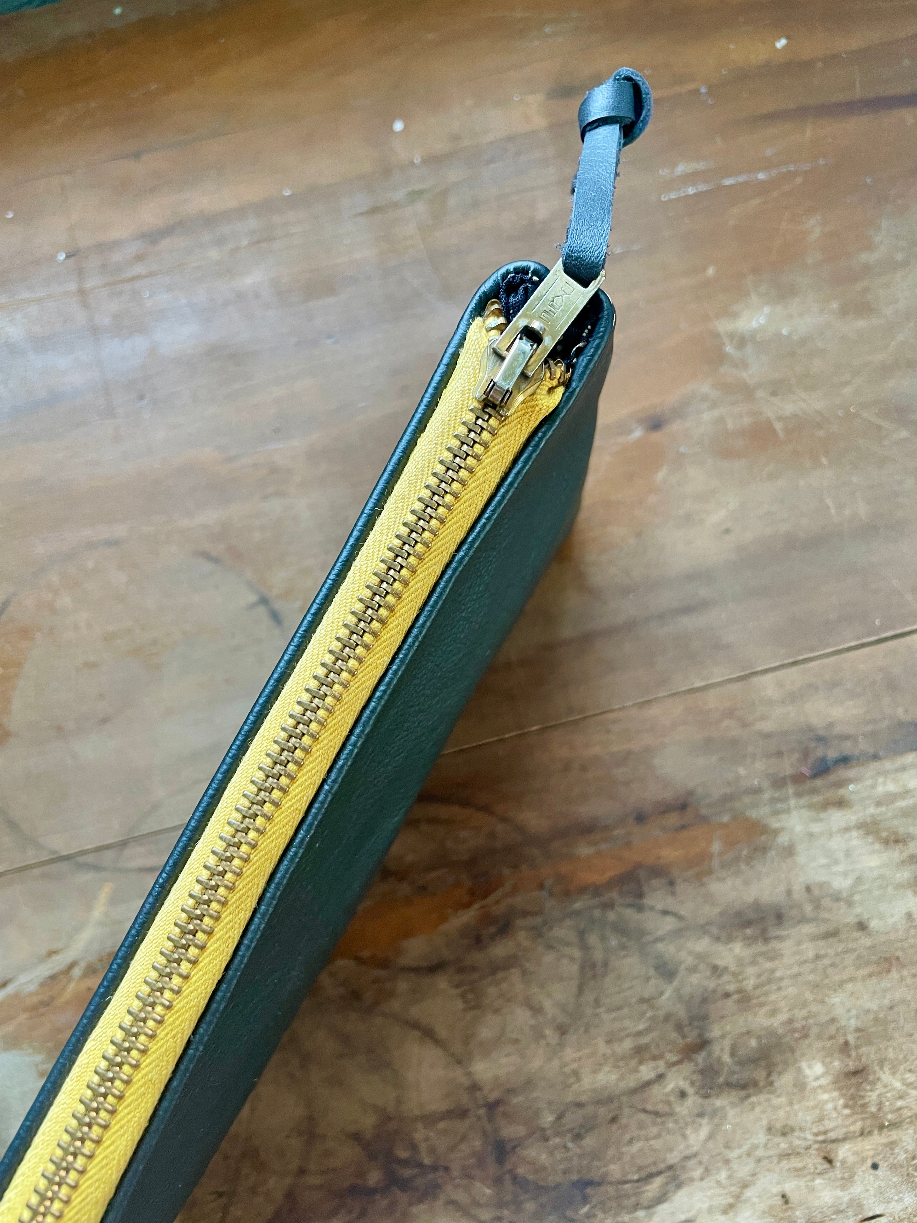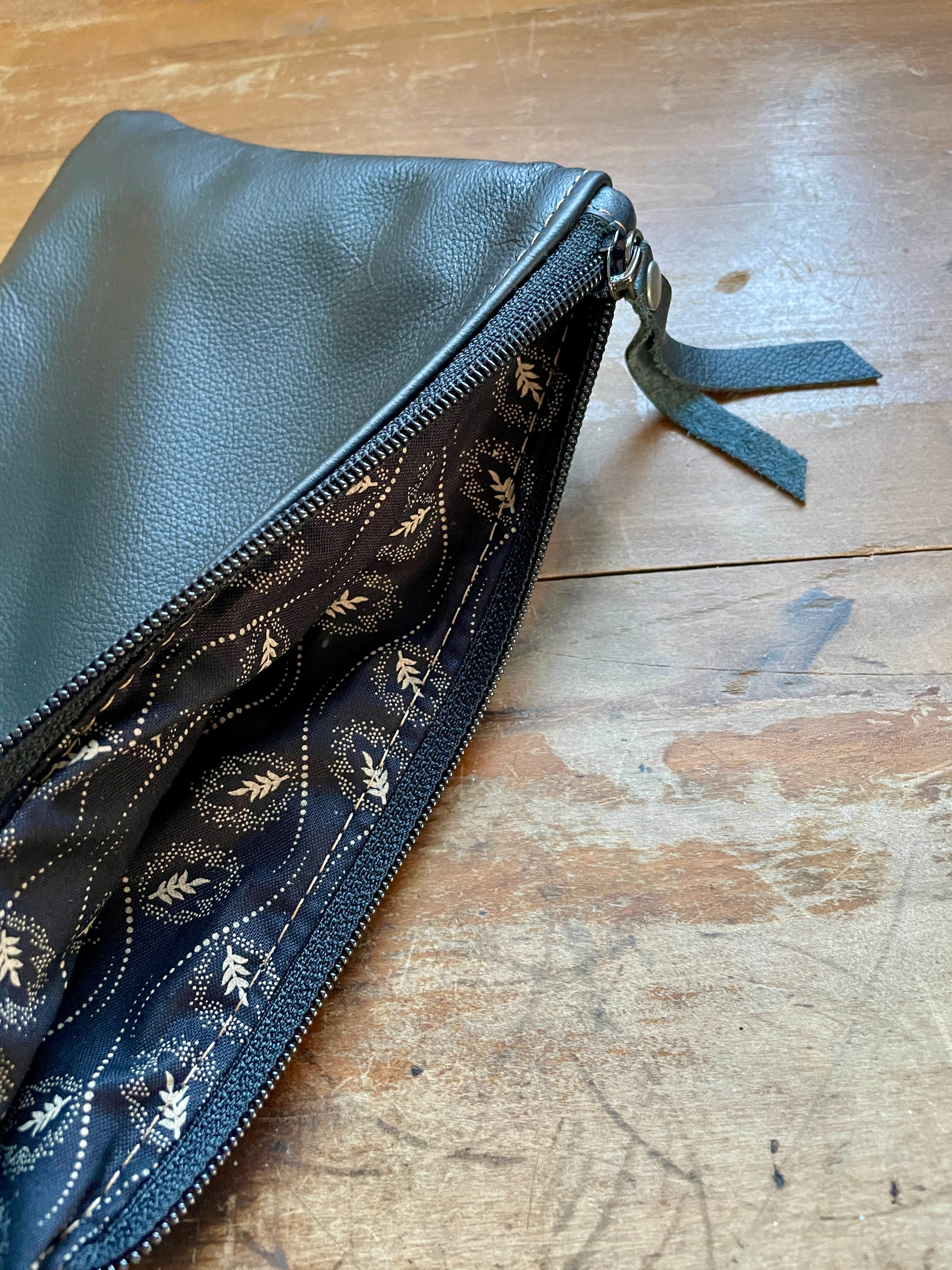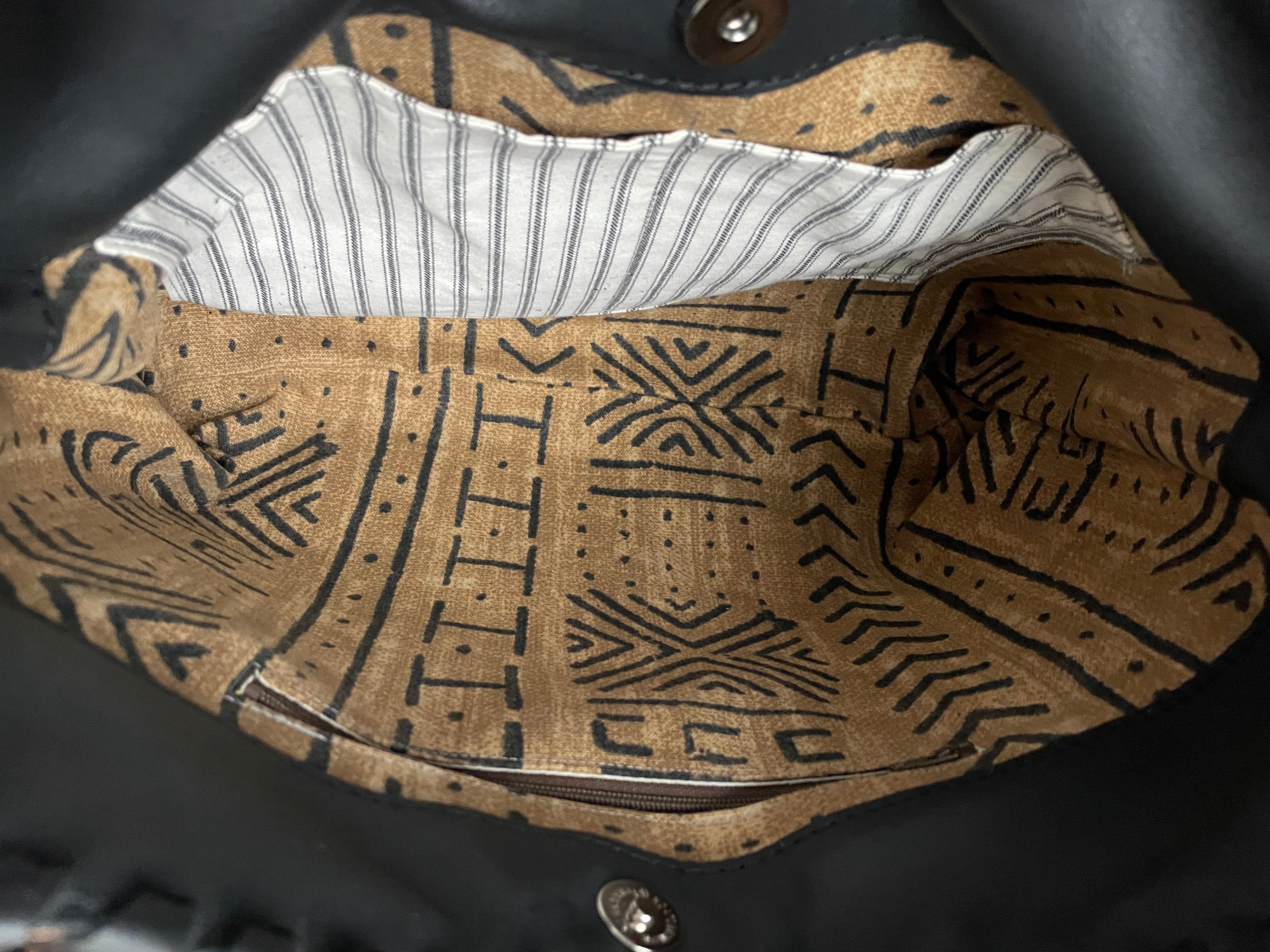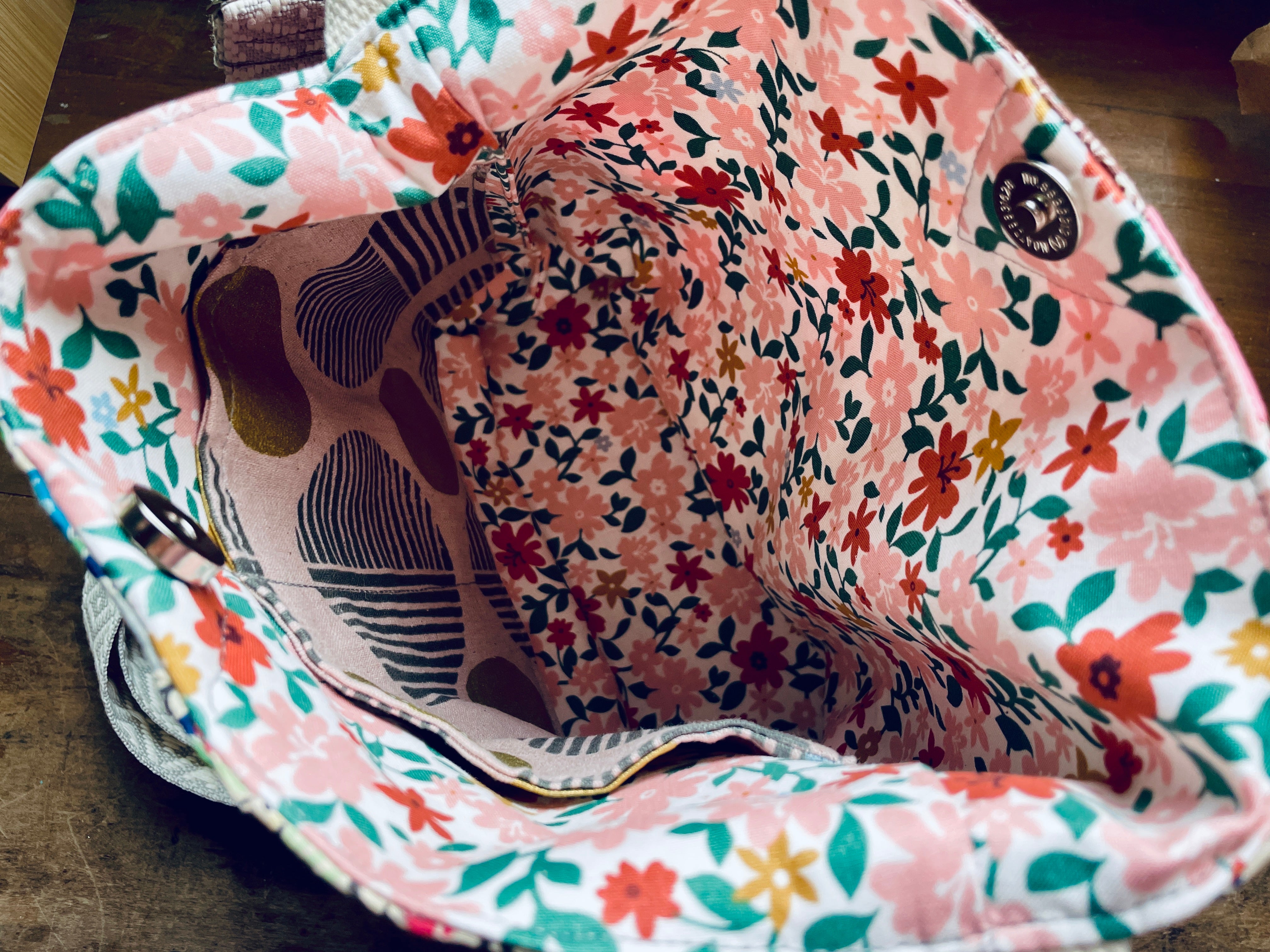 For the interior, I used a canvas fabric that I interfaced for durability. The interior features 2 slip pockets and a zipper pocket.