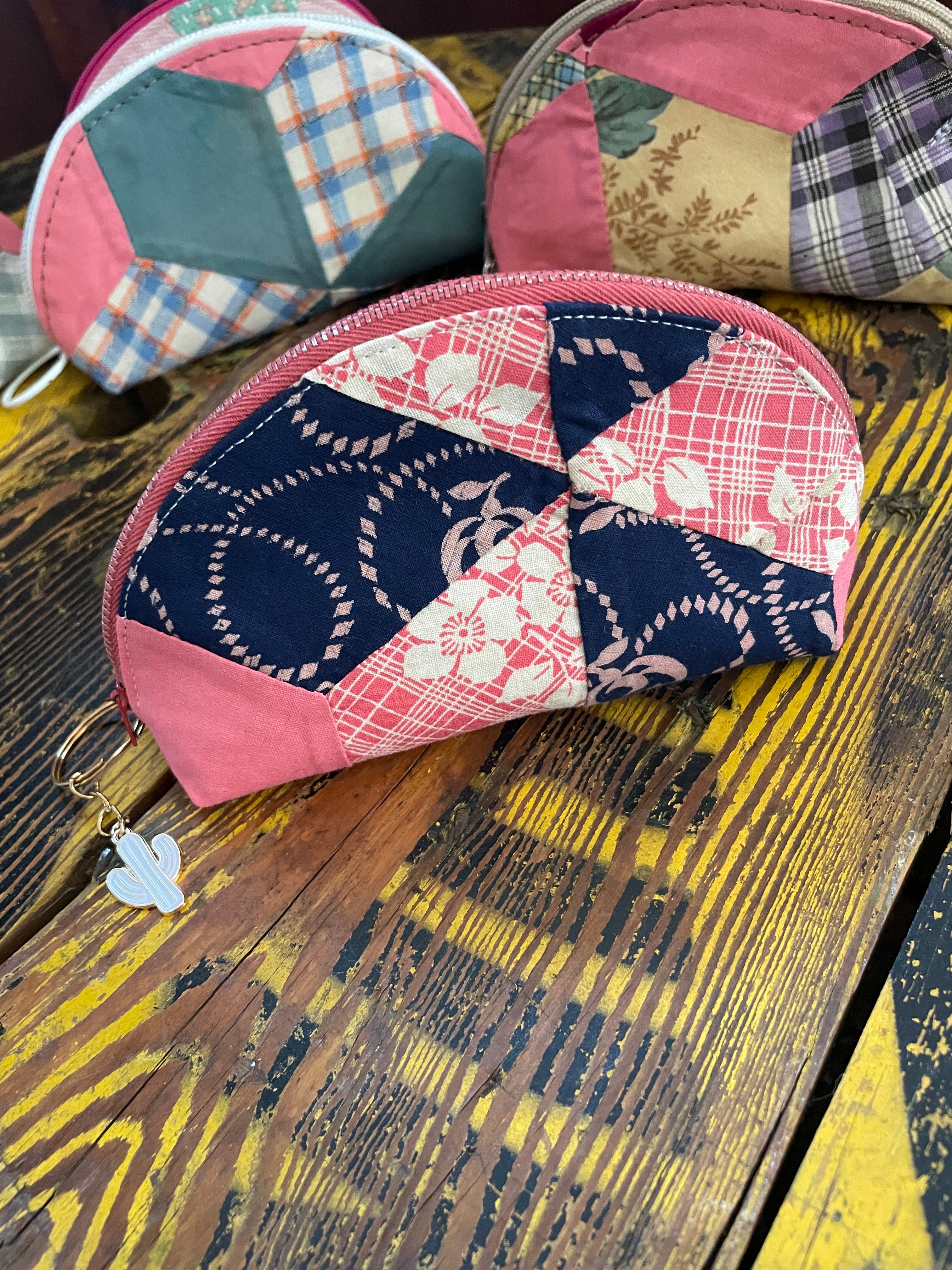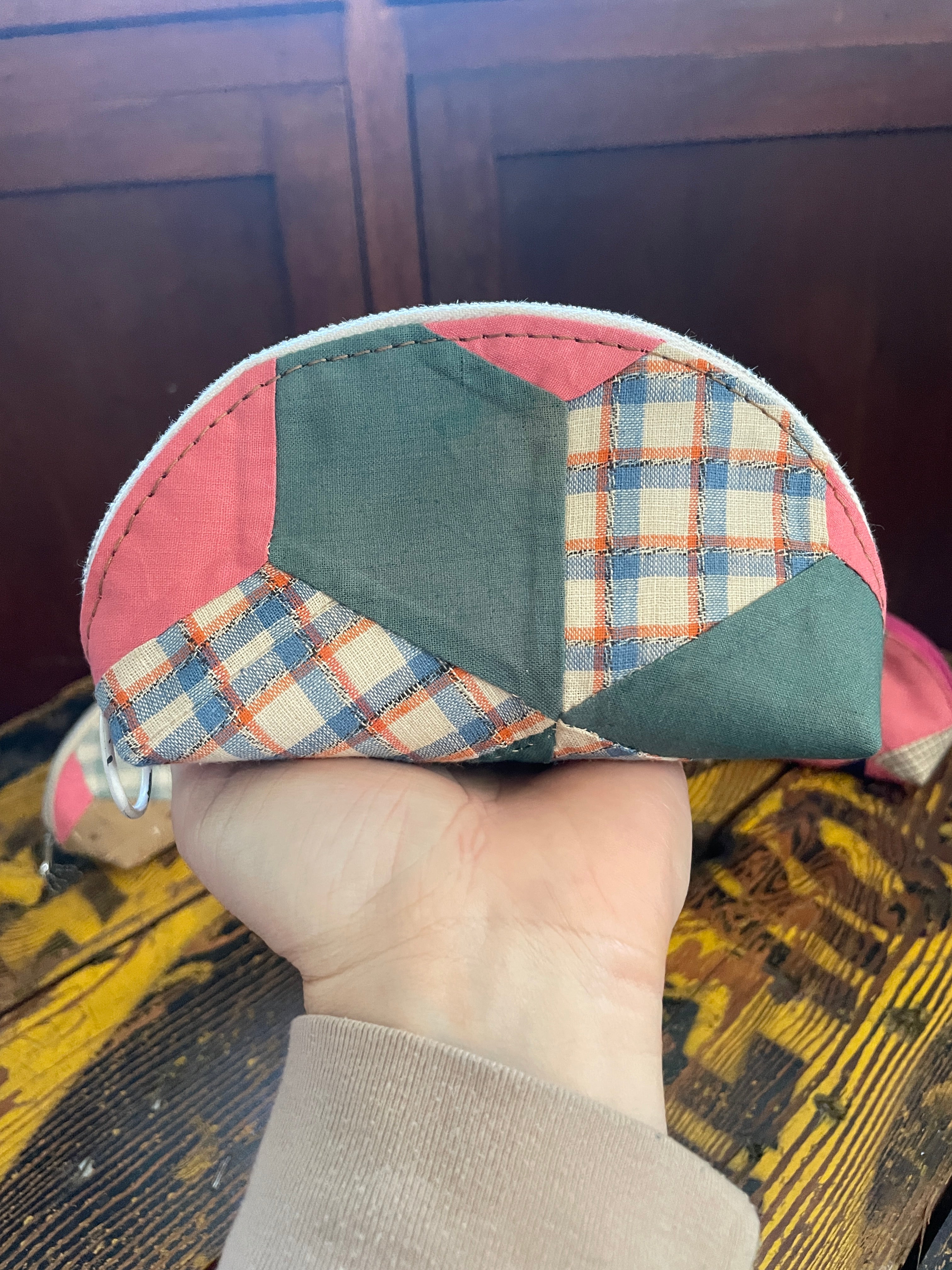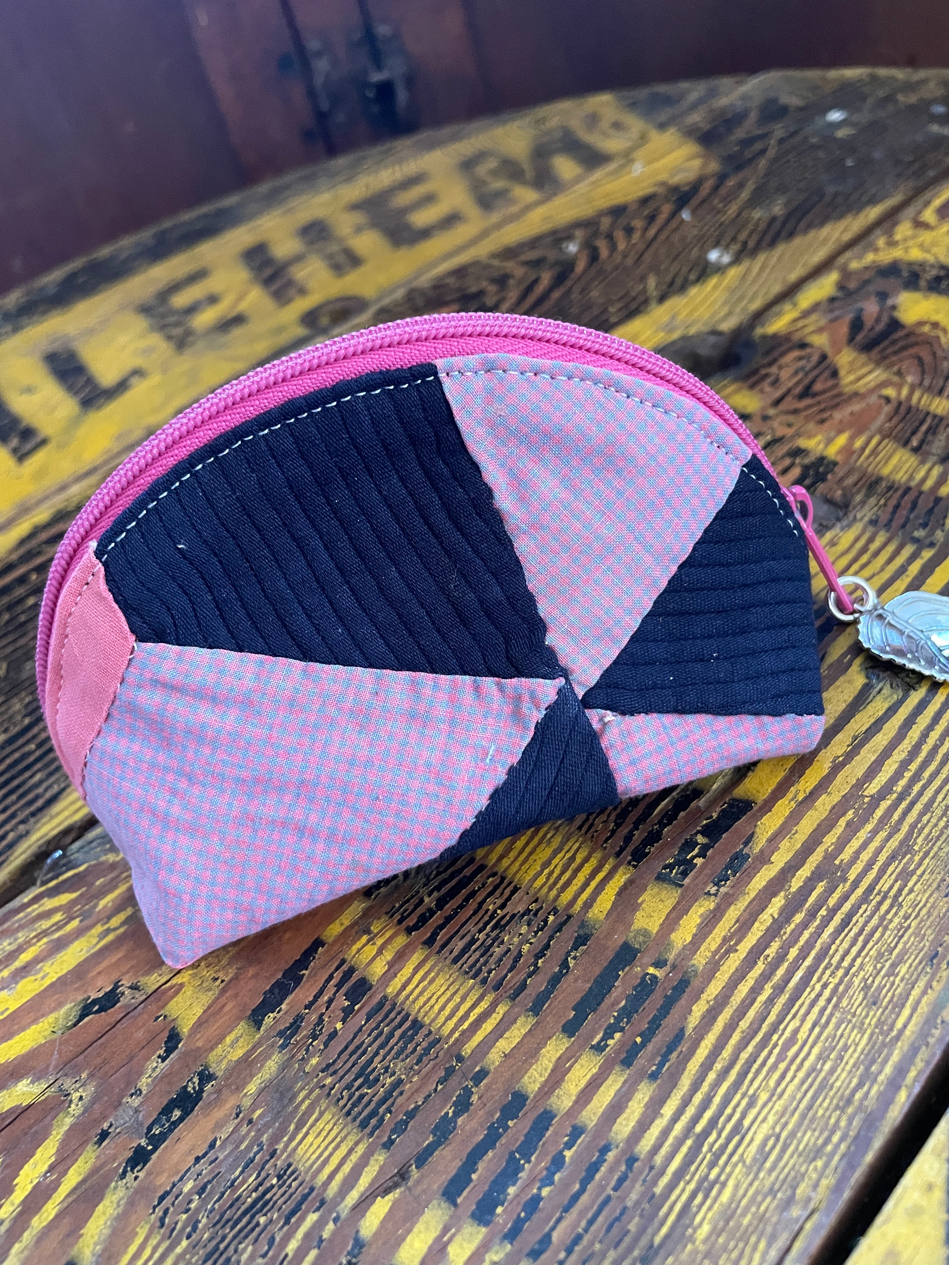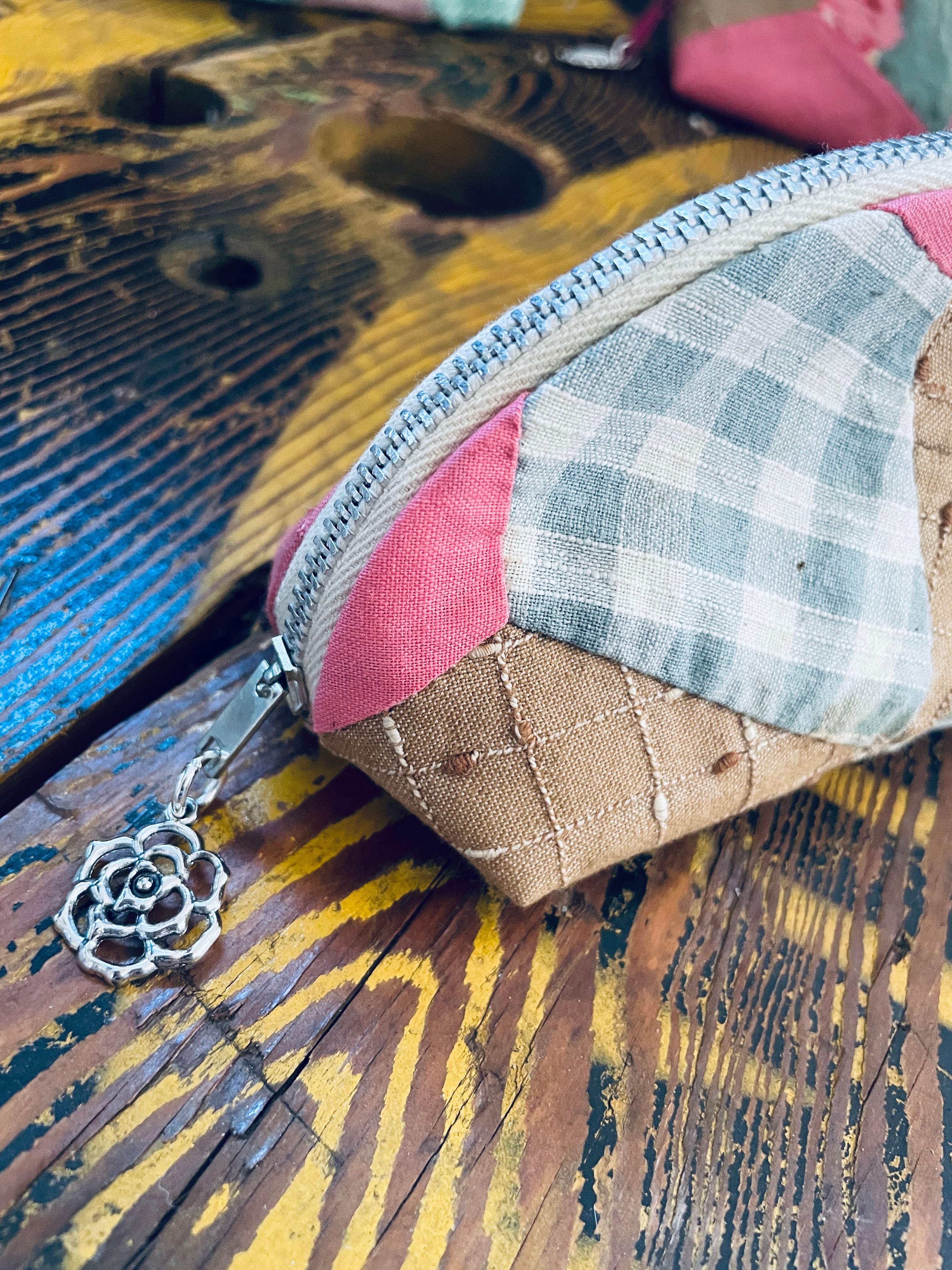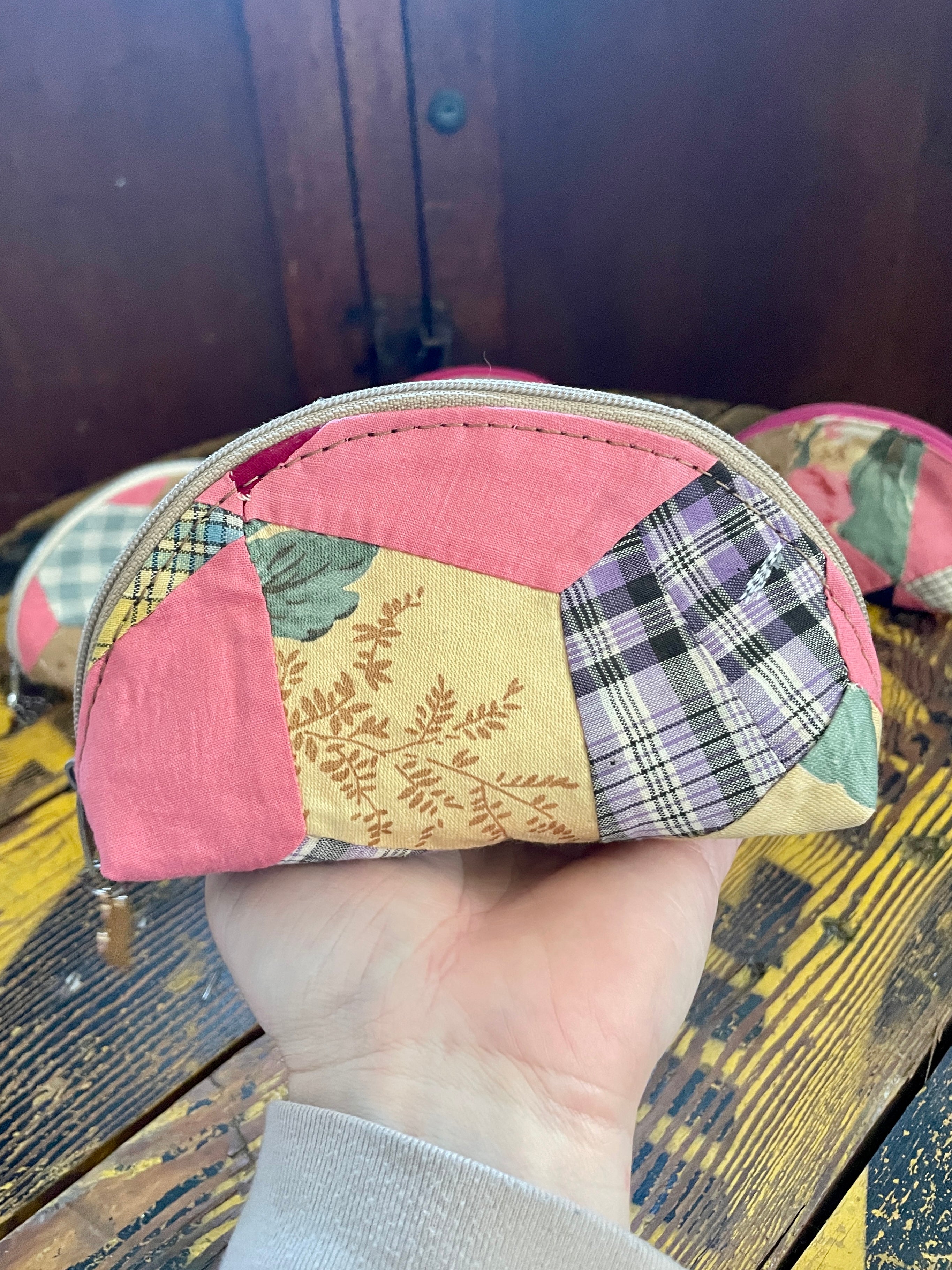 I made this mini wallet with an antique hand stitched vintage quilt. I did repair the quilt where there were worn areas and also applied fray check to areas to prevent the fabric from fraying. One of a kind!🩷
