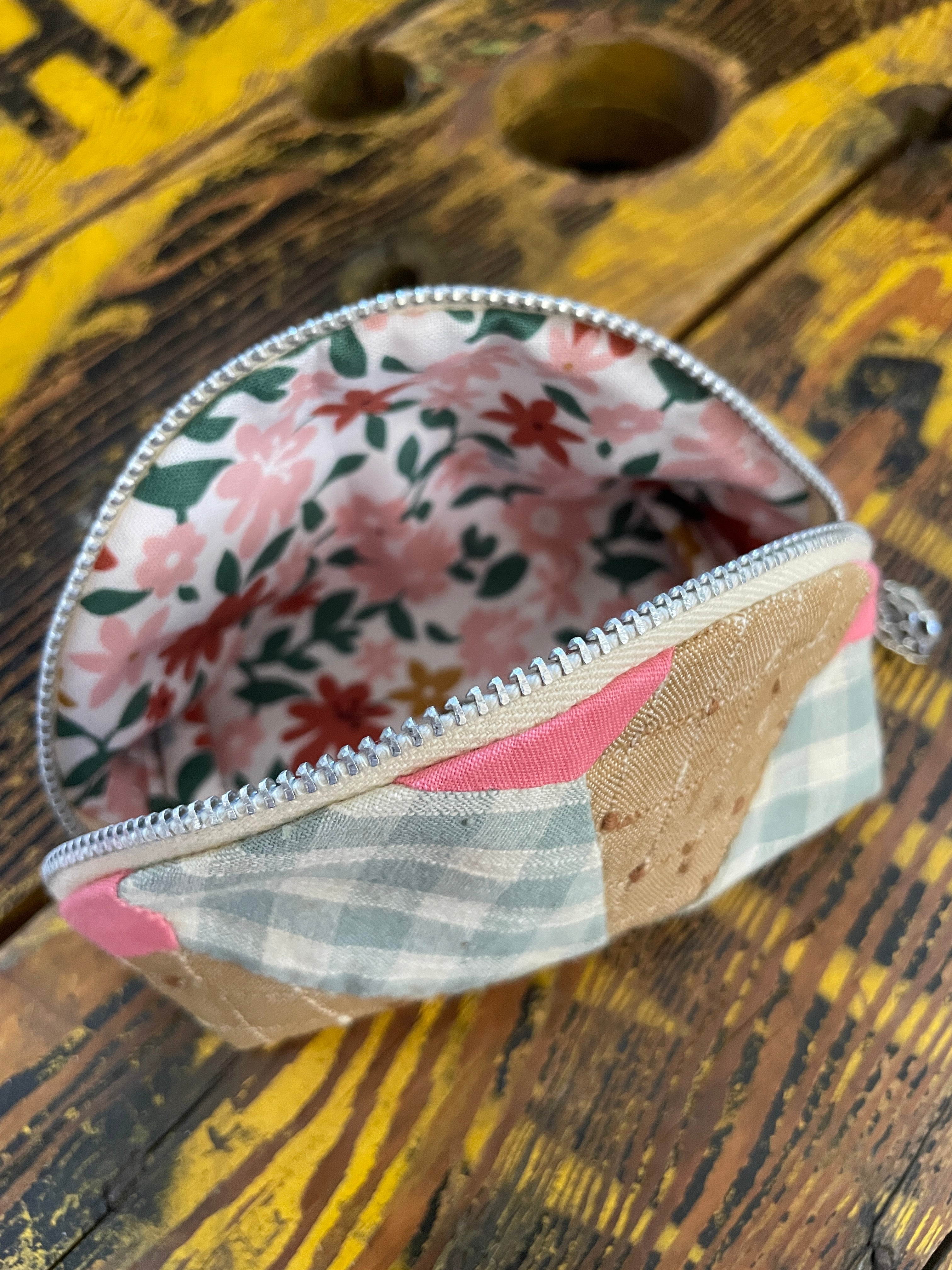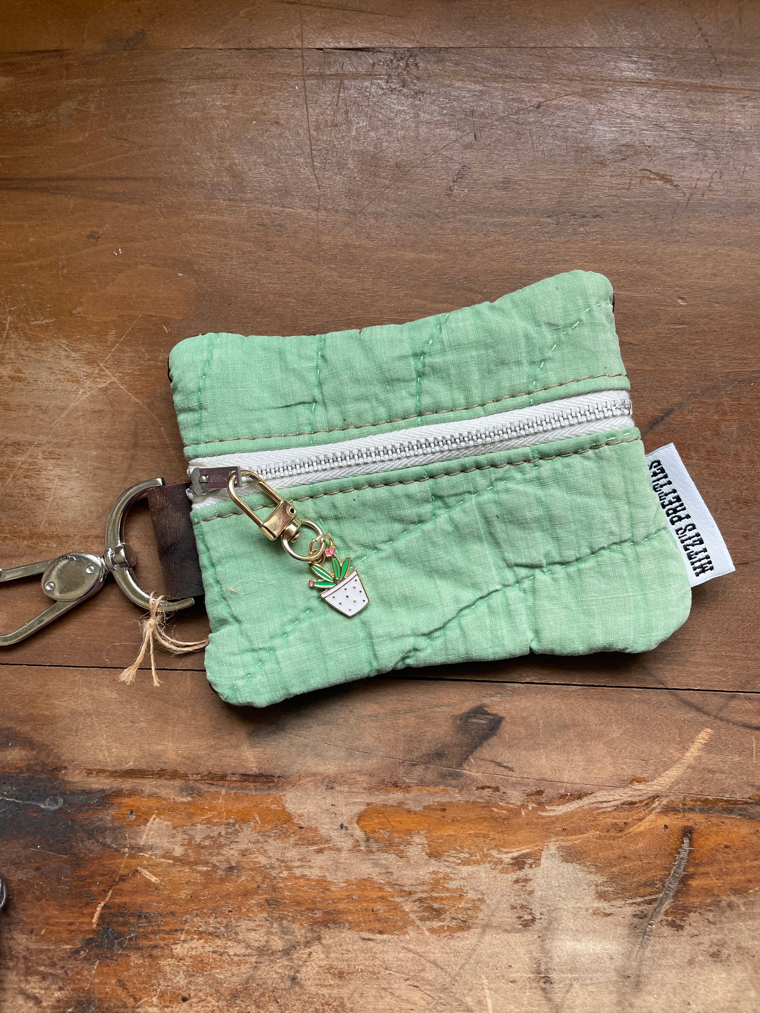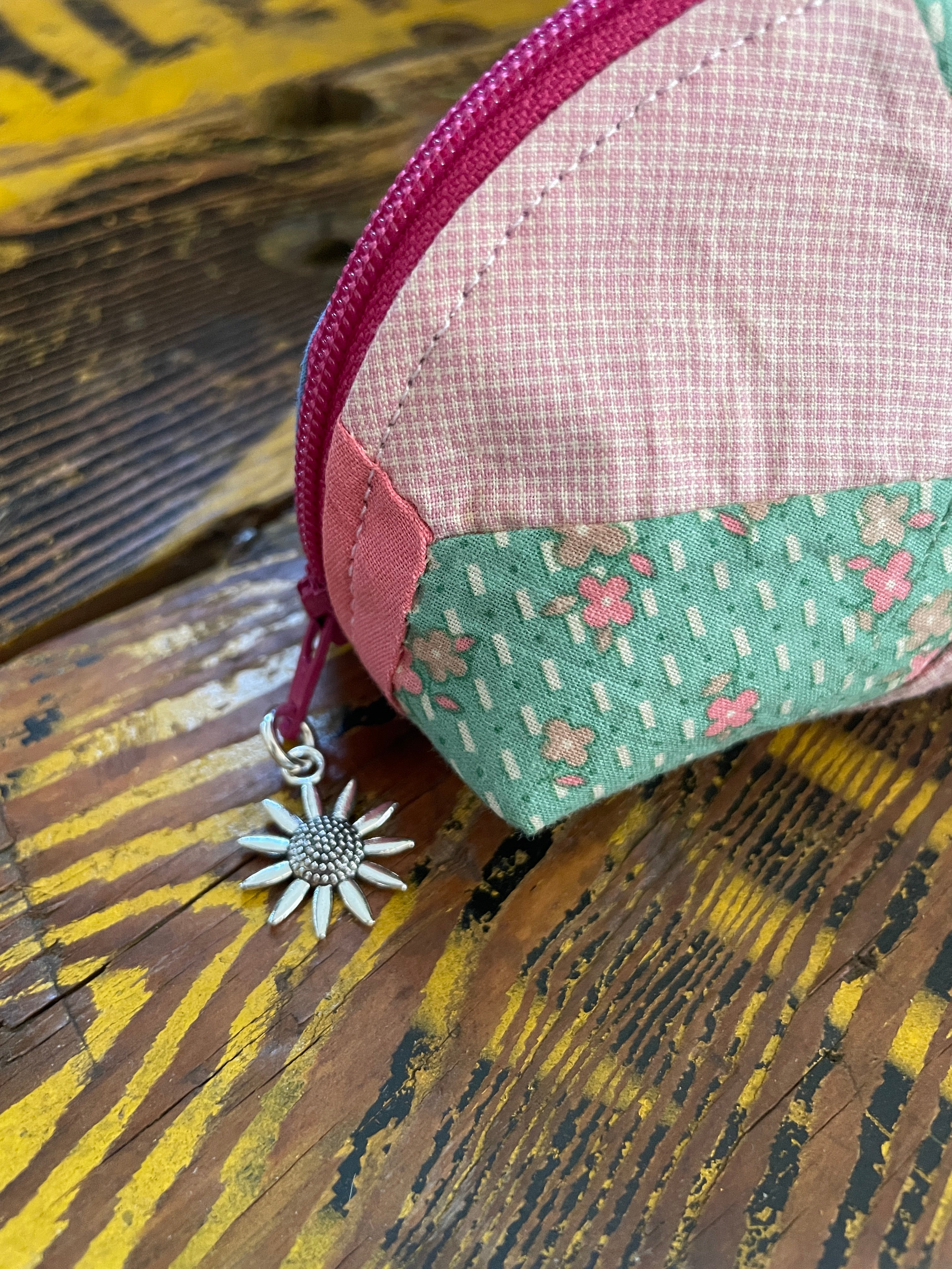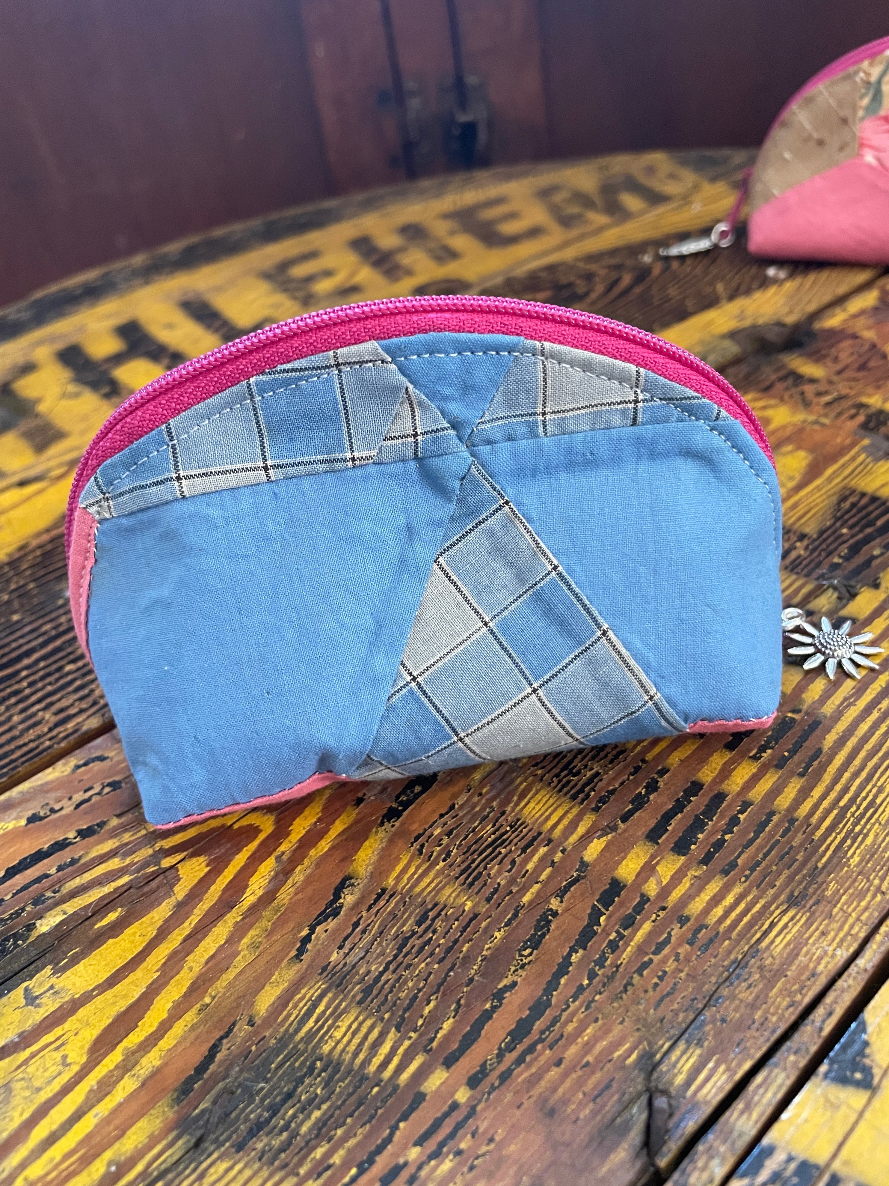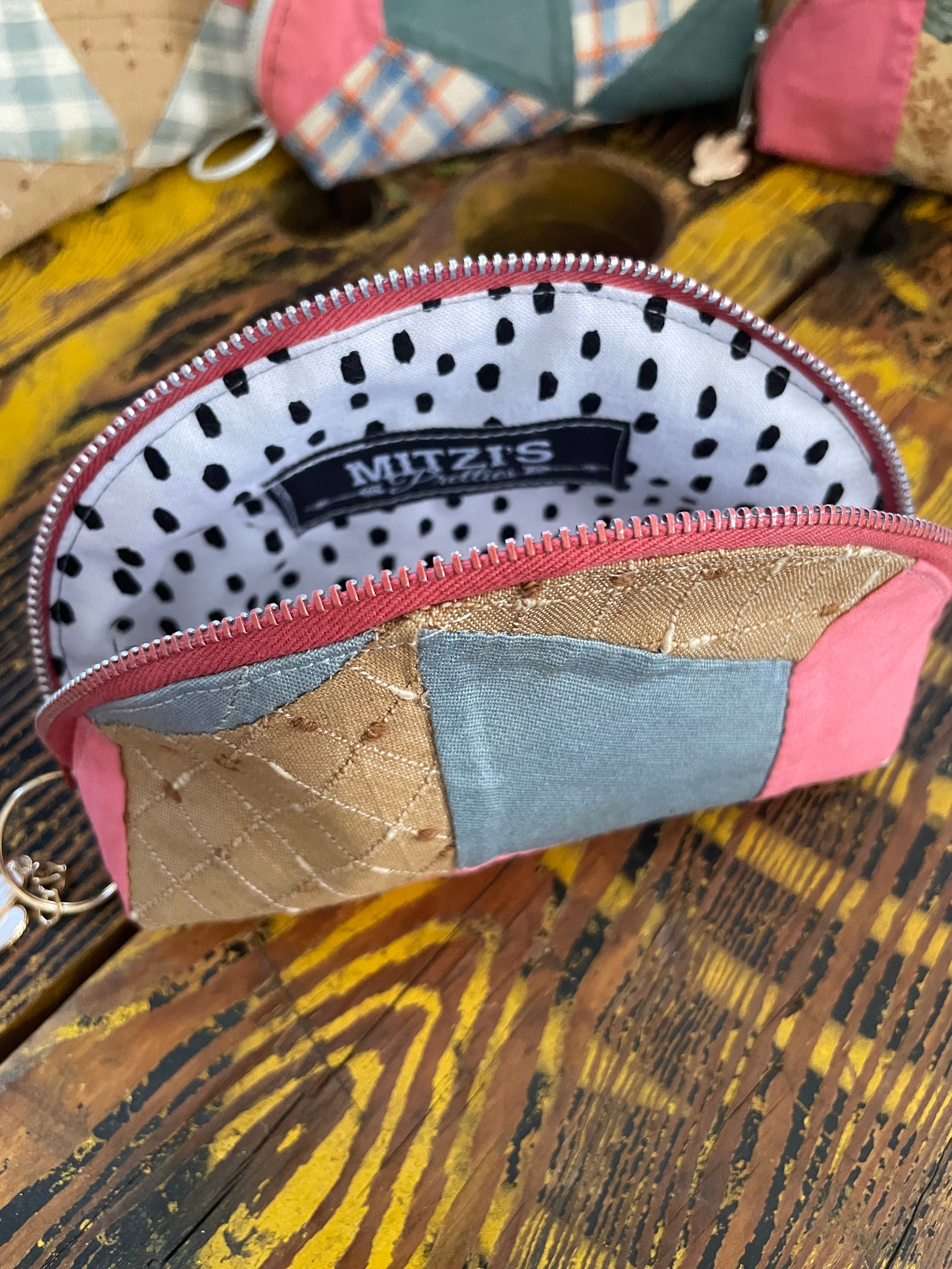 I made this mini wallet with an antique hand stitched vintage quilt. I did repair the quilt where there were worn areas and also applied fray check to areas to prevent the fabric from fraying. One of a kind!🩷