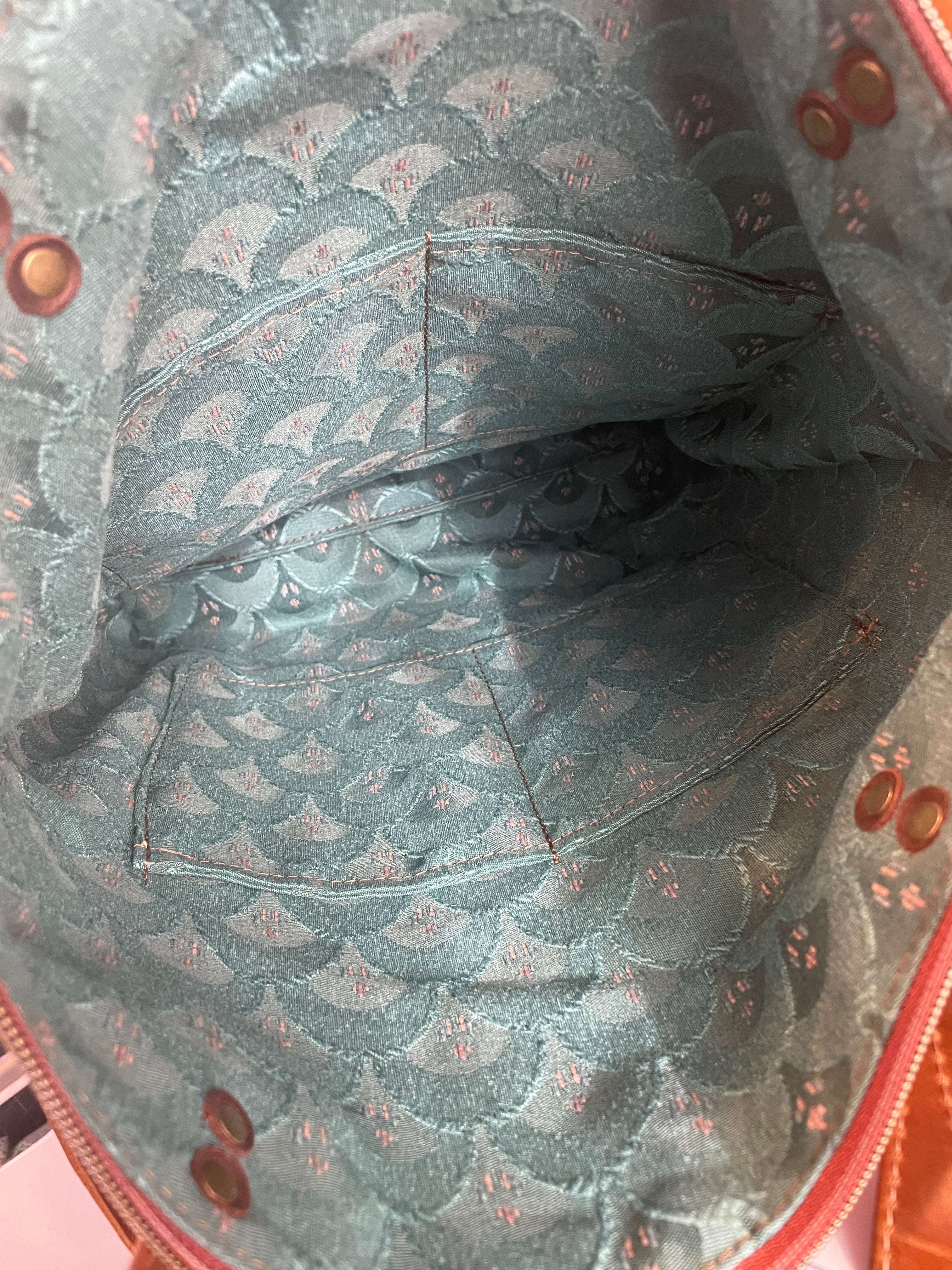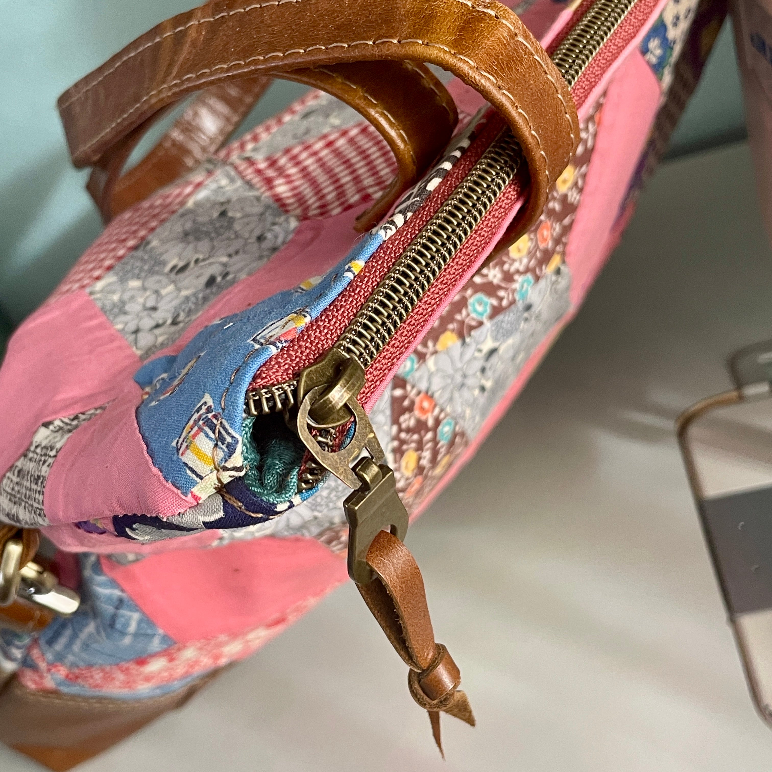 For the interior, I used a cotton fabric that I interfaced for durability. The interior features 2 slip pockets and a zipper pocket.