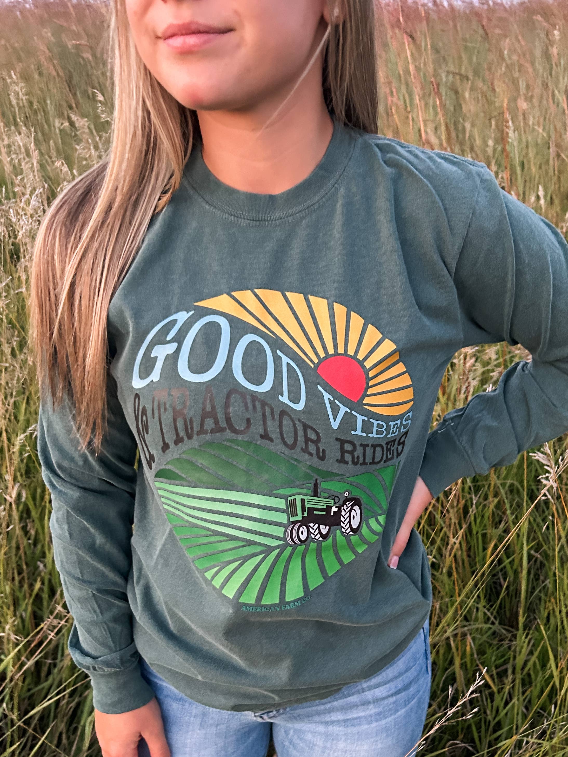 Western Good Vibes Tractor Rides Green Long Sleeve: L