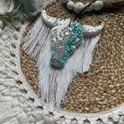 Ride in style with our Bull Skull Car Freshie! Made with silicone beads and oils, and adorned with a fringe, turquoise stones, and glitter. Get ready to turn heads (and noses) with this lava scented car freshie.