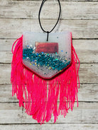 Our Freshies are approximately 4-6 inches. Our Air Fresheners typically last between 2-6 weeks depending on weather and other environmental factors. May melt in extreme temperatures exceeding 115 degrees.