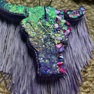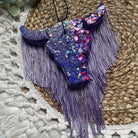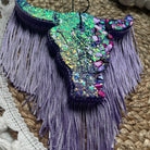 Indulge your senses with our handcrafted Purple Bullskull: Spiced Mahogany car Freshie. Made with high-quality silicone beads and oils, this luxurious air freshener will leave your car smelling heavenly for months. Adorned with glitter and fringe, it adds a touch of elegance to your vehicle. Elevate your driving experience today.
