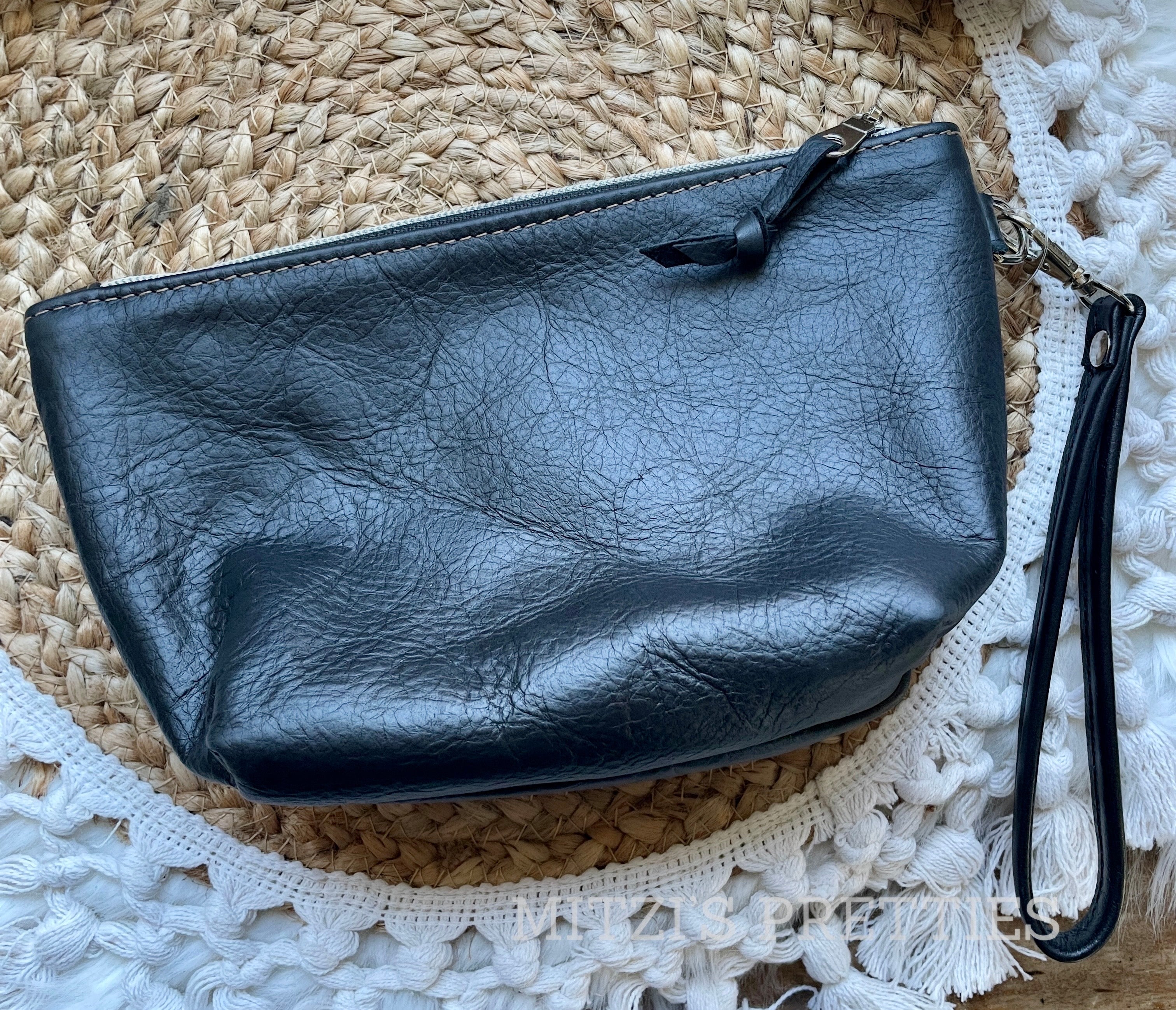 SHIPS TODAY Handstitched Quilt & Leather Pouch