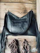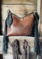 This bag has brown leather back, strap, fringe🤎
