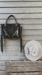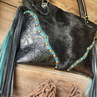 Made with cowhide leather, embossed leather corners and stud accents, this is a show stopping bag!