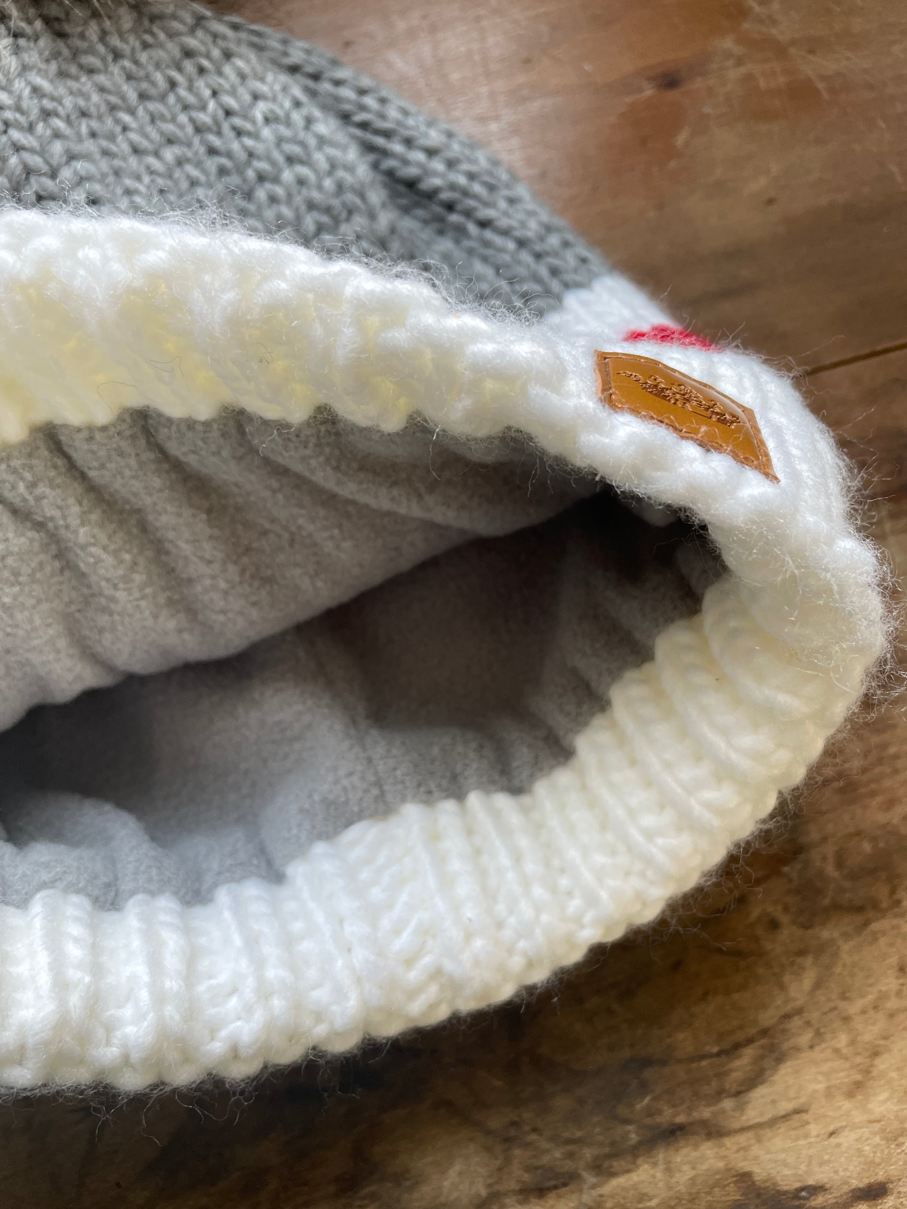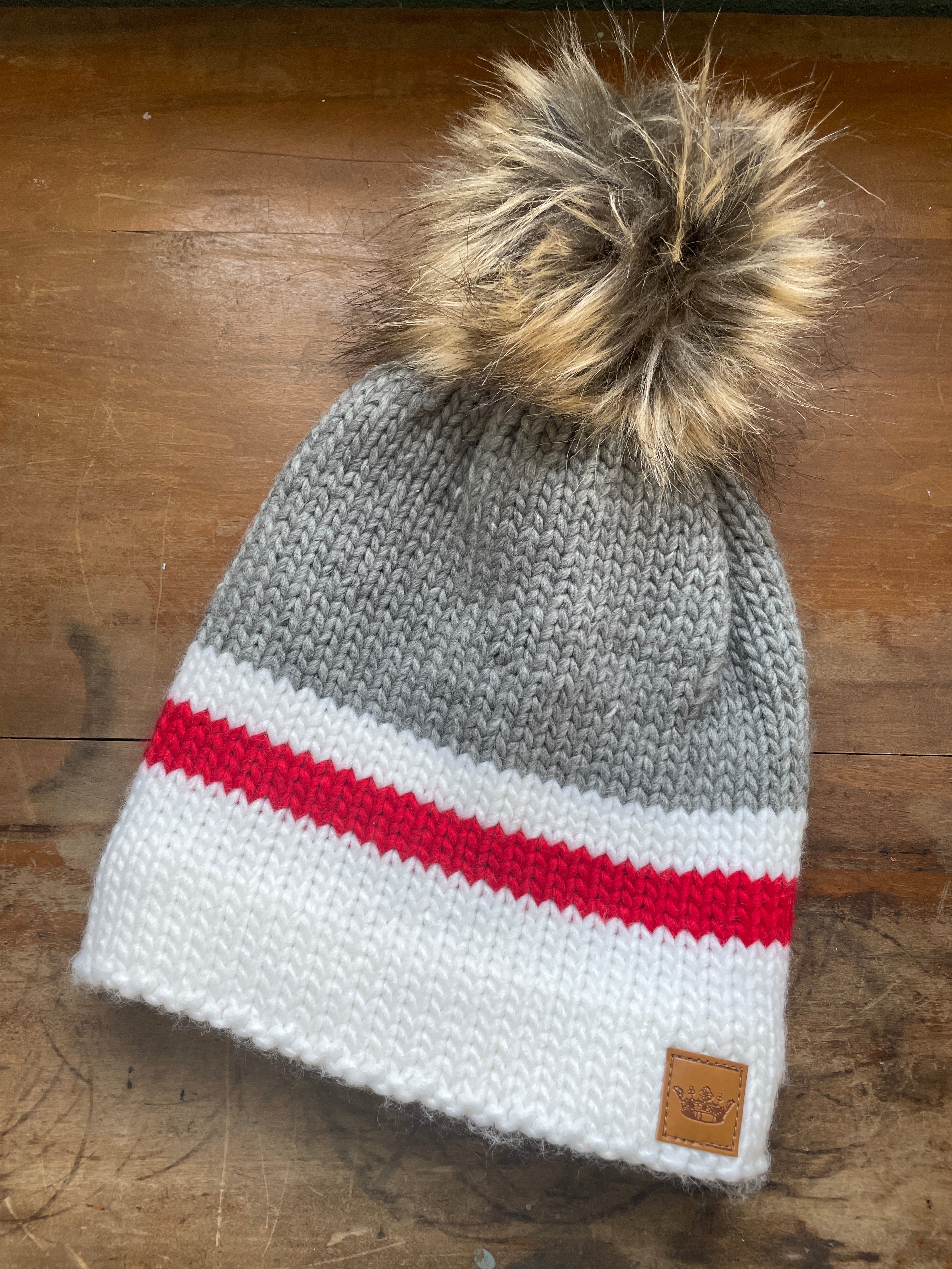 Gray, Red, & White Pom Hat
