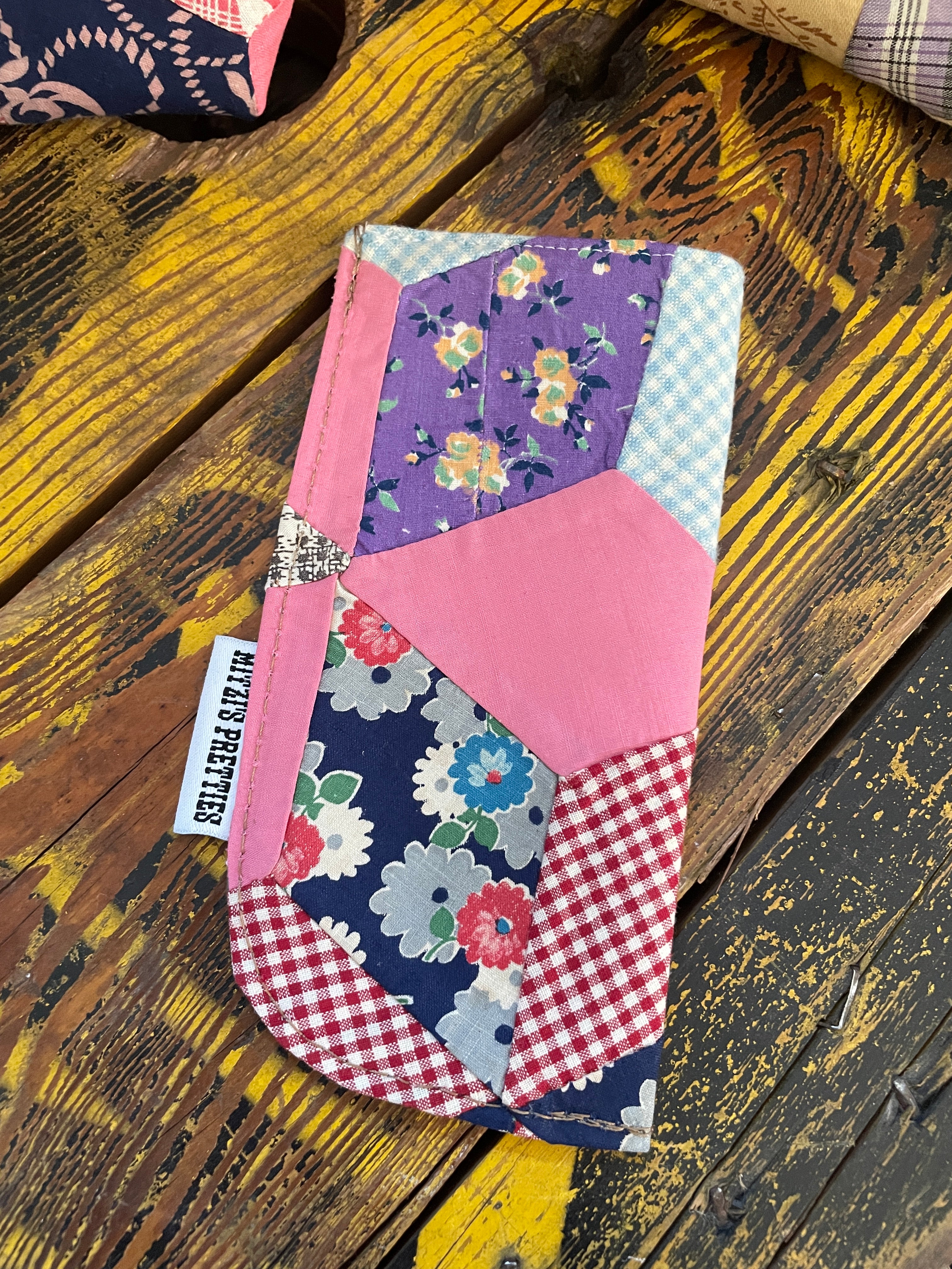 This little gem is perfect for storing your sunglasses. The quilt is hand stitched with love!
