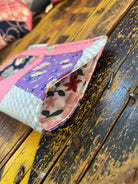 Each bag is individually cut, sewn, designed, and photographed by me in my home studio, located in lovely South Dakota! I do have the occasional little helper tho, my 16 and 13 year old! Also my hubs!! Thanks Fam!