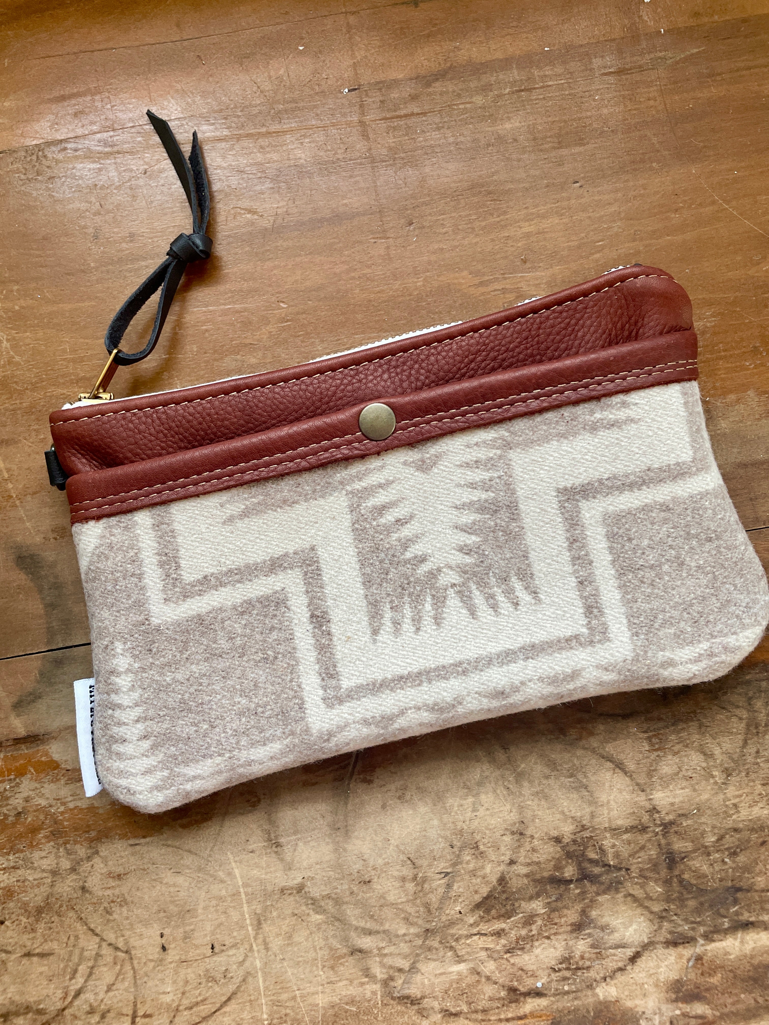 This is the perfect carry all! Made in a genuine Pendleton® wool fabric. The back is made in Super soft genuine leather.