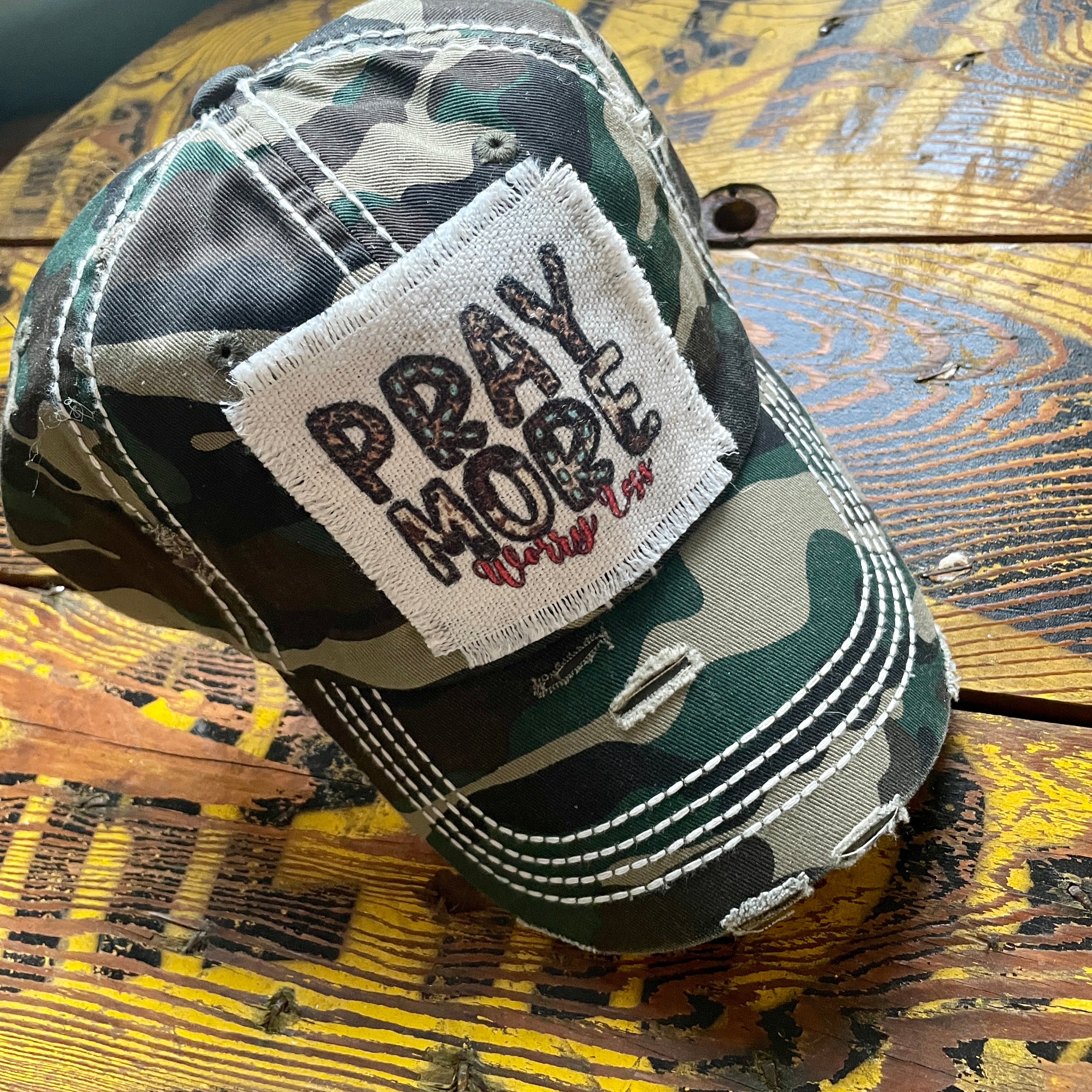 Pray More Worry Less Camo Patched Hat