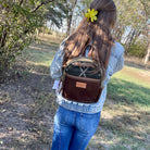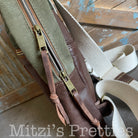 This bag!! Made with the prettiest Pendleton wool, military canvas and genuine leather. What also makes this bag 1 of a kind is that I upcycled a leather bomber jacket into the back of the bag and bottom! Love all of the little extra details the original seams of the jacket add!