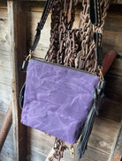 Features zip close, front snap pocket with water proof lining, two interior pockets, fringe and feather tassel!