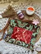 SHIPS TODAY Vintage Velvet Wristlet w/ Embossed Leather