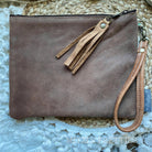 Discover the unparalleled quality and versatility of our Vintage Velvet Wristlet. Handcrafted and fully lined, this sophisticated 9"x7" wristlet showcases a vintage velvet front adorned with genuine embossed leather and hand embroidery detail. The detachable leather strap and fringe tassel bring a hint of boho charm to this accessory.